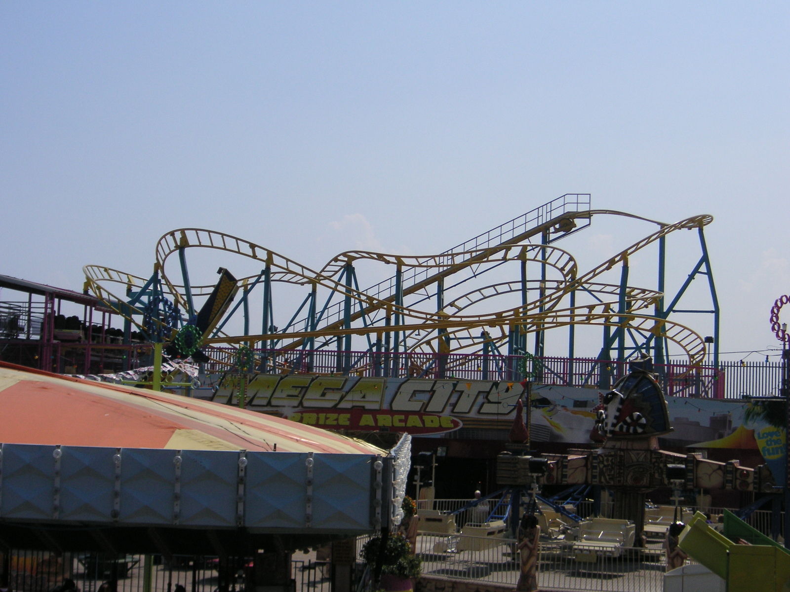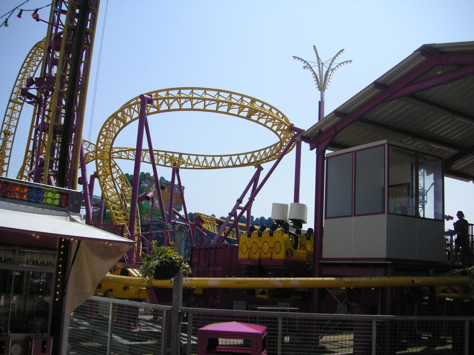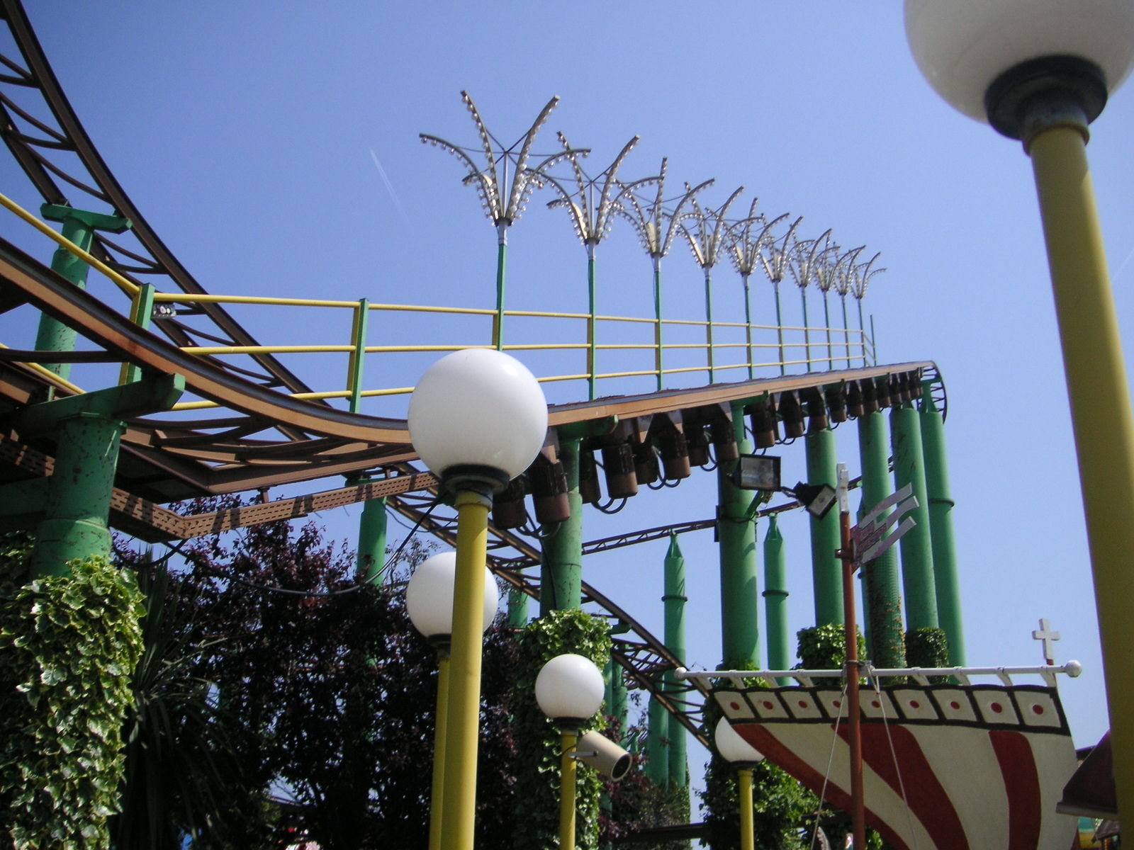 Keine Ahnung ob da Zamperla am Werk war, das Layout war jedoch nix besonderes. Der Zug braucht außerdem ewig um von der Schlussbremse in die Station zu kommen. Einziger Pluspunkt der Bahn war, dass sie auf dem Dach einer Spielehalle stand und man somit eine nette Aussicht auf das Meer, bzw. den Park hatte.