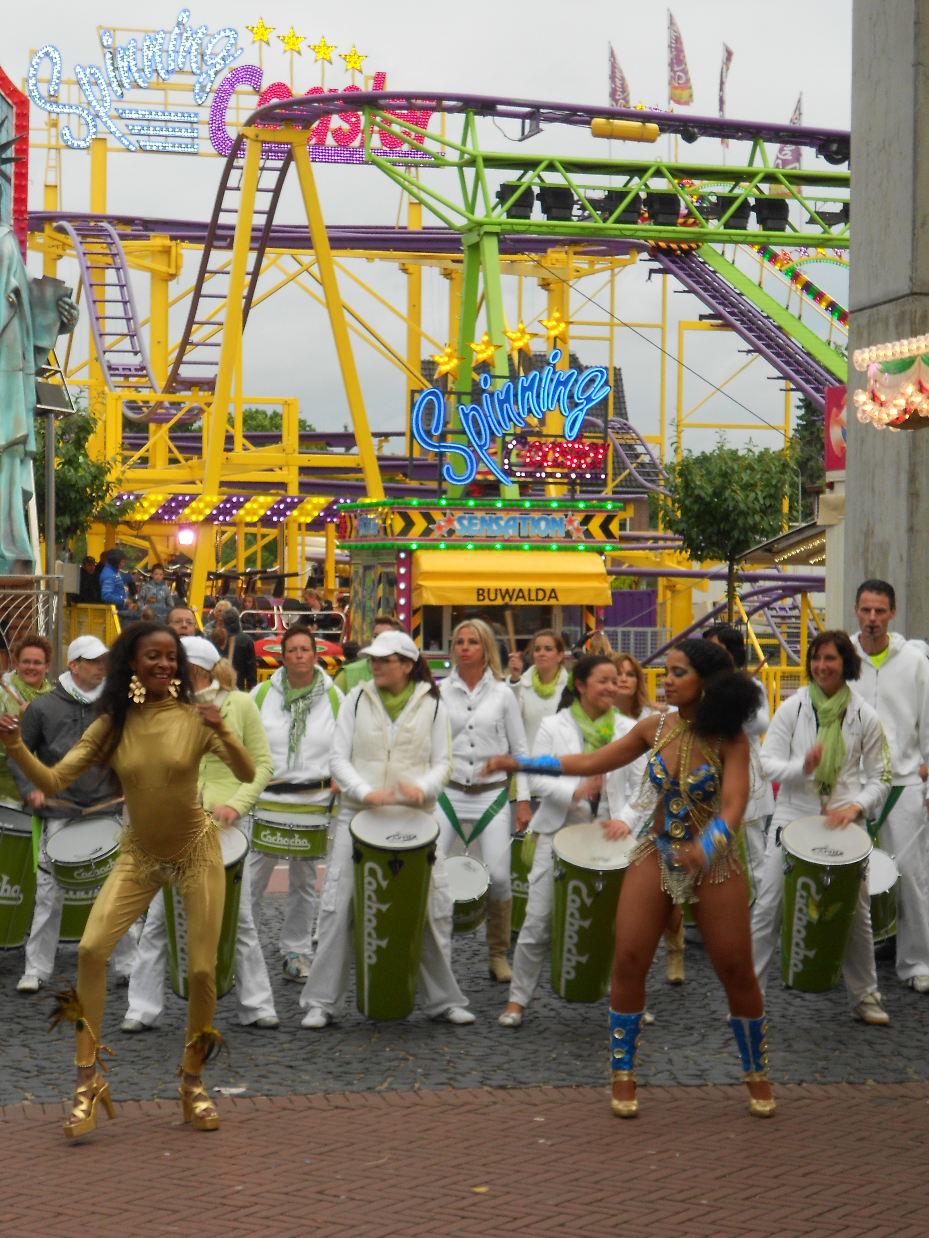 Aber schon auf dem ersten Platz setzten uns die holländischen Schausteller unter ein Dauerfeuer brasilianischer Klänge.