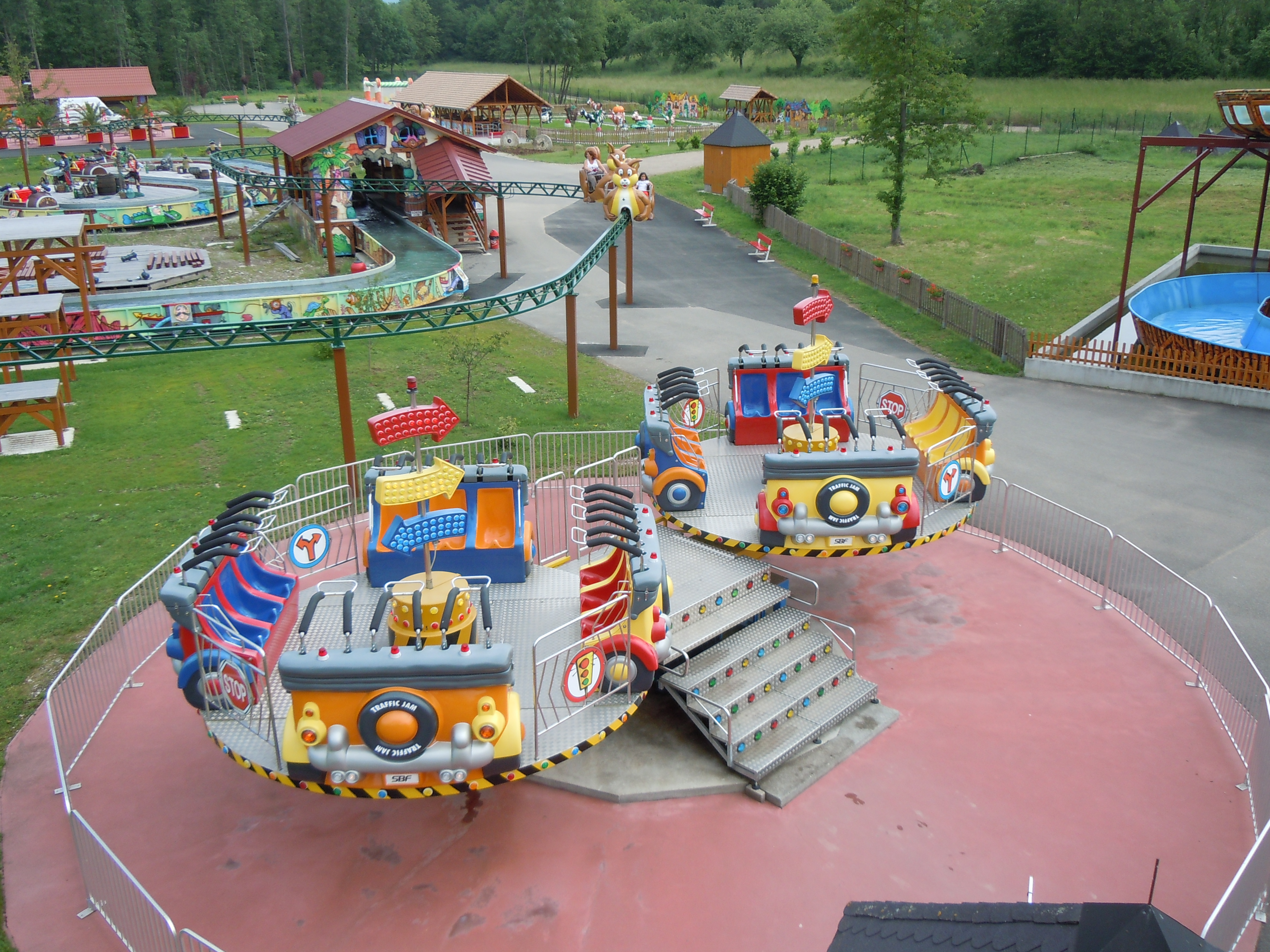 Nachdem man den Eingang betreten hat, gelangt man auf diesen Platz mit einem Autoscooter, dem Rafting und weiteren kleinen Attraktionen.