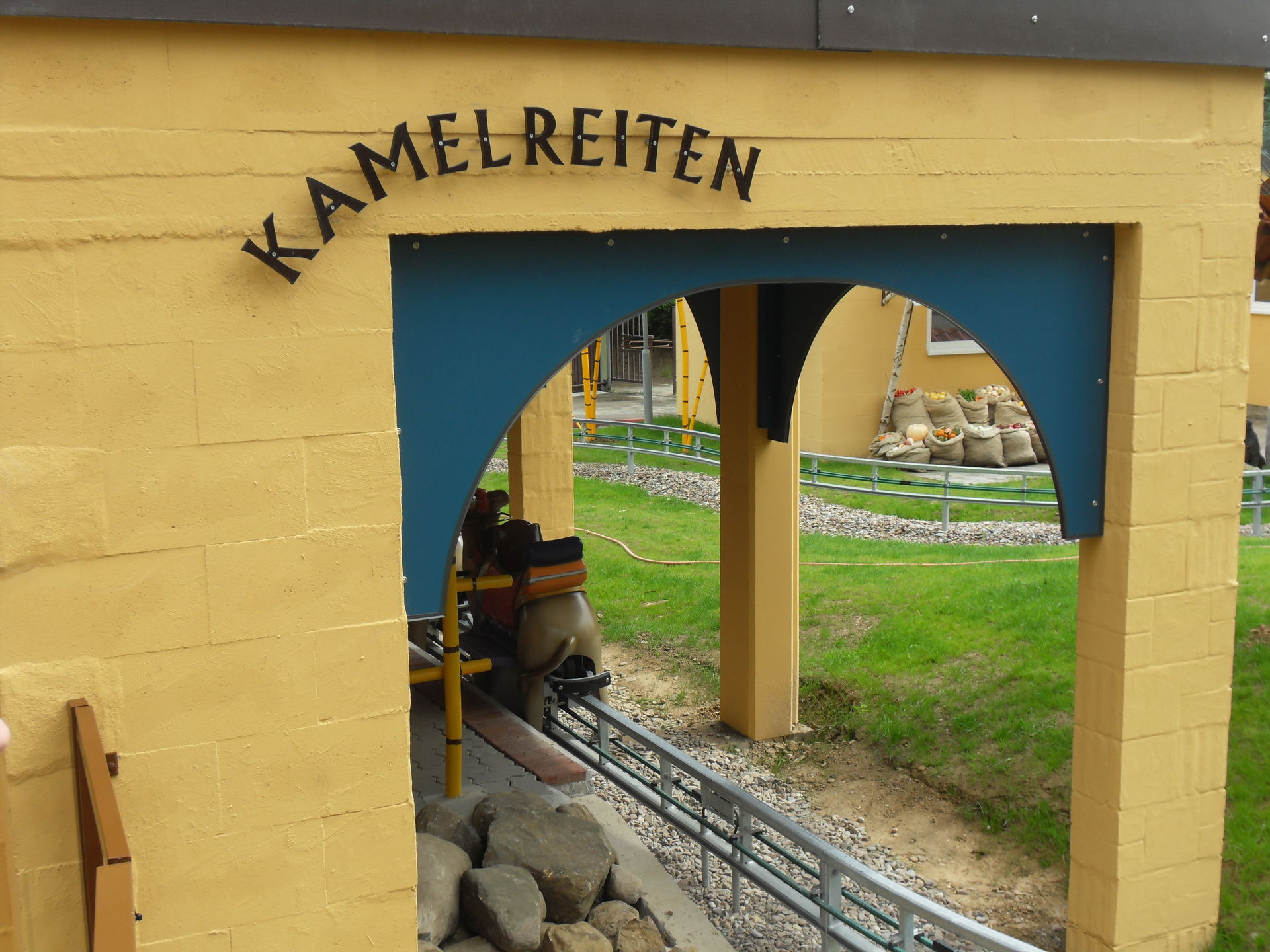 Unser nächstes Ziel war die neue Kamelreitbahn. Nette kleine Attraktion aus der man aber durchaus hätte mehr machen können, vielleicht ist das Ende der Thematisierung da aber auch noch nicht erreicht, das Ding sieht noch sehr frisch und neu aus, könnte also sein dass da vielleicht noch was passiert. So ist es im Moment nur eine elektronische Kamelreitbahn die auch nicht gerade spektakulär lang ist.