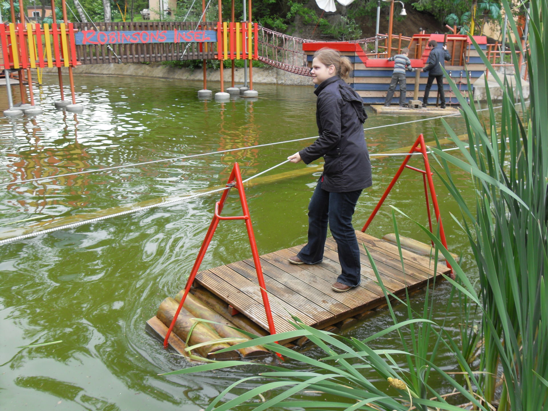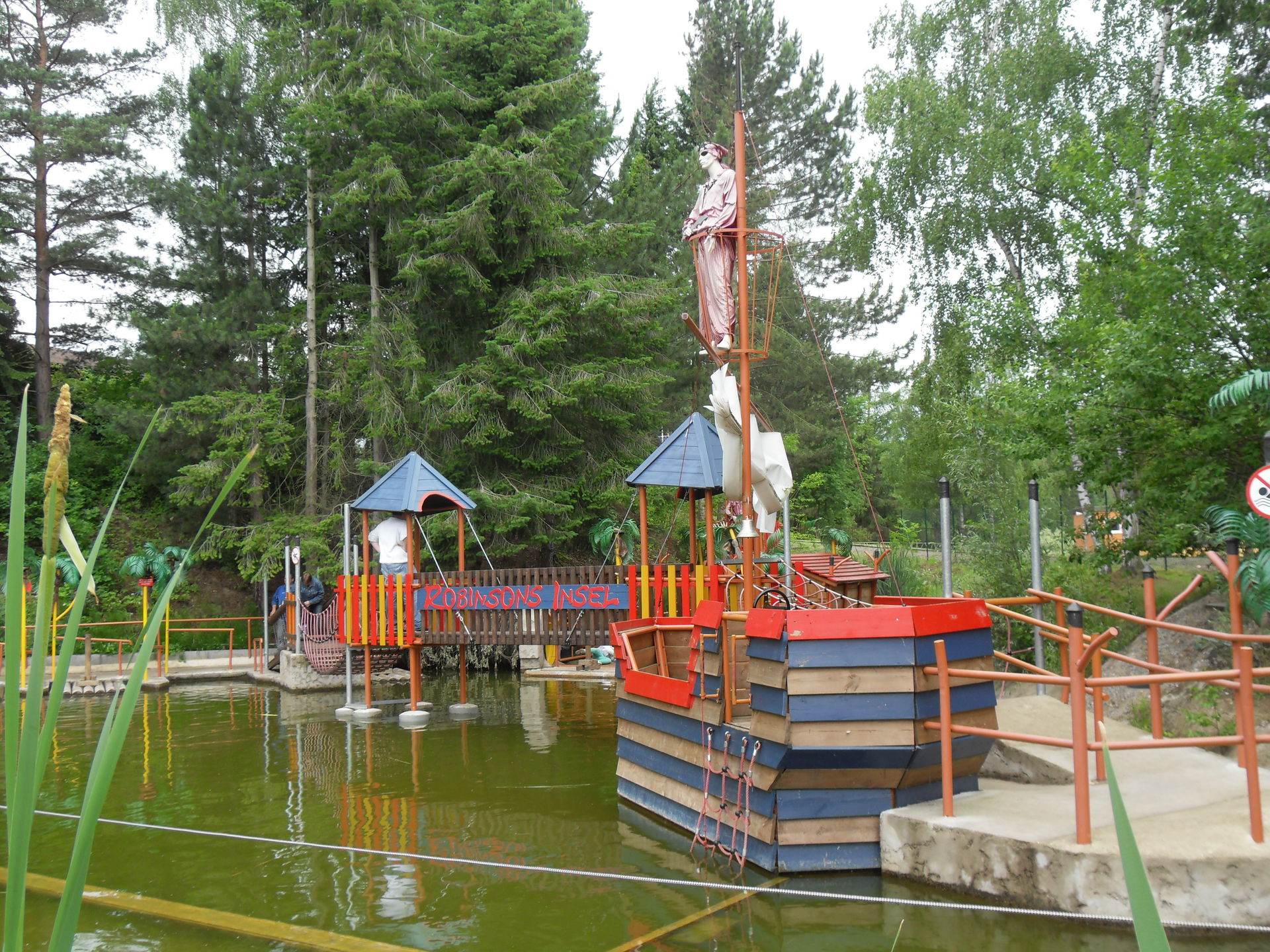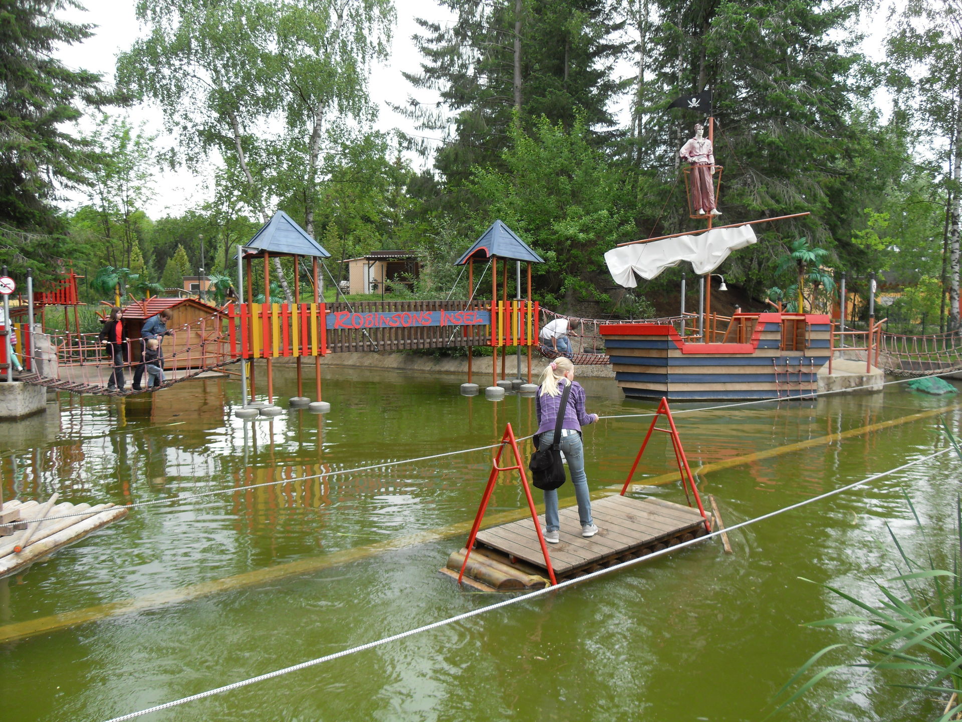 Eine weitere Neuheit im Park ist Robinsons Insel, ein lustiger Wasserabenteuerspielplatz mit Hindernissparcour für Groß und Klein. Thematisch schön gemacht und ein großer Spaß für aktive und Zuschauer.