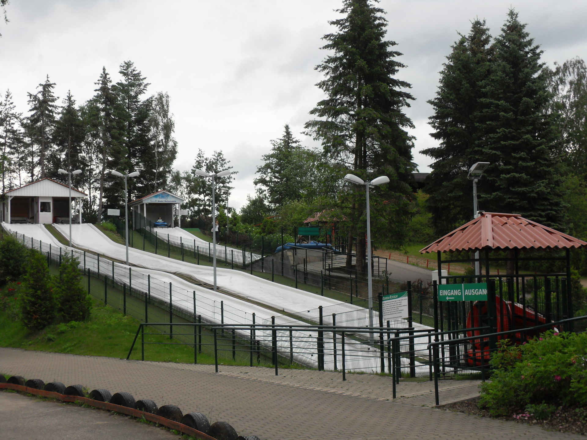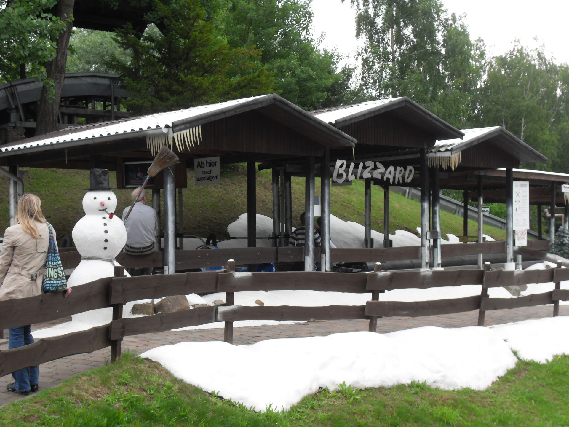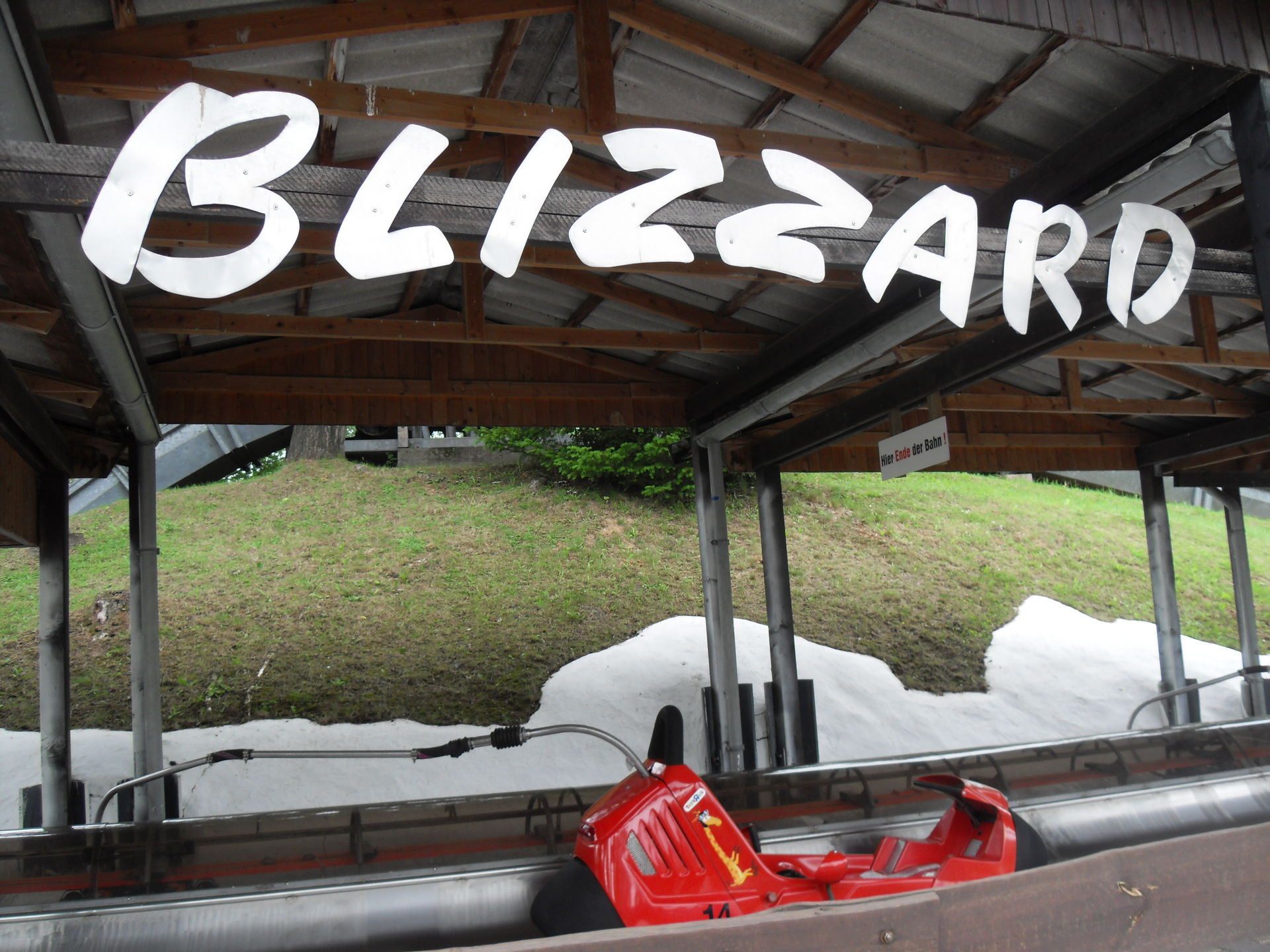 Nächstes Ziel unserer Reise war der "Blizzard". Hier gab es mit 10 Minuten Wartezeit auch die längste Anstellzeit des Tages. Gut dass es nicht mehr waren, denn dann wäre die Enttäuschung noch größer gewesen. Ich weiss nicht ob es am Wetter lag oder ob das Teil dem Familienpublikum angepasst wurde, jedenfalls fuhr die Bobkartbahn extrem gedrosselt und machte nicht wirklich Spaß.