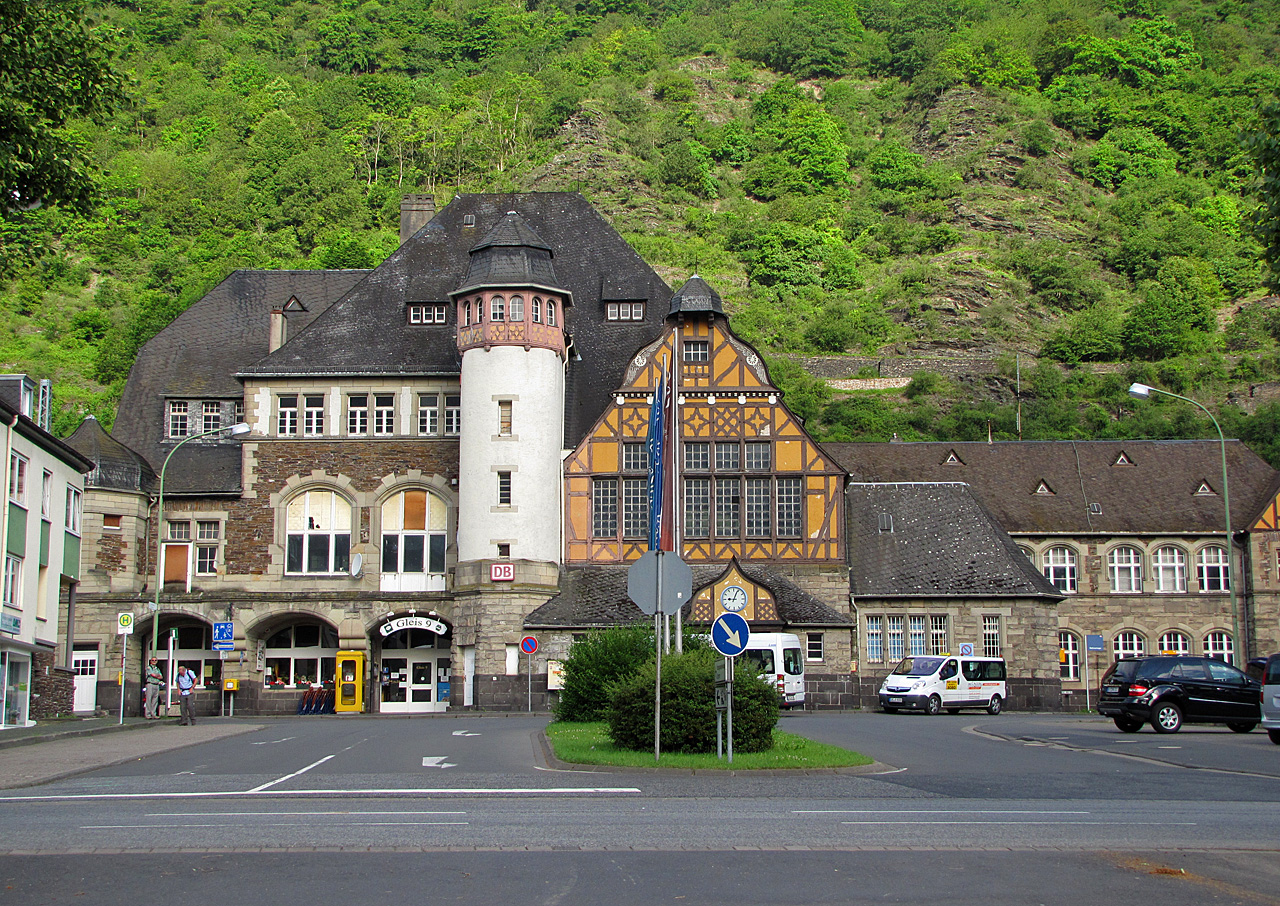 Schöne Architektur, der Bahnhof in Cochem. Schon relativ früh waren wir bereits am Bahnhof.