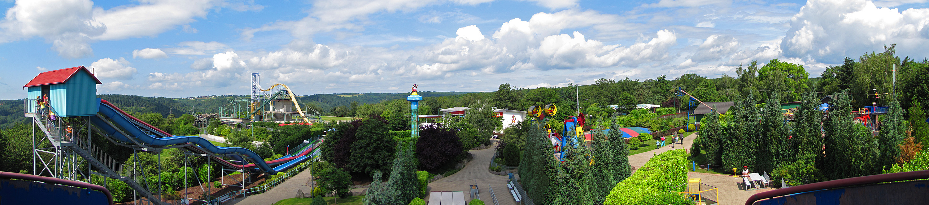 Panorama vom Rutschenturm: Blick auf den Freizeitpark.