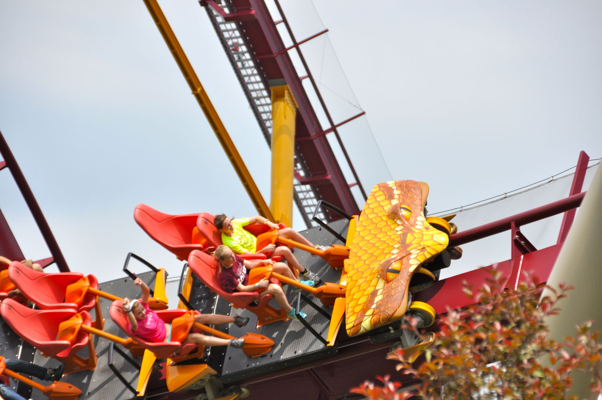 First Drop liegenden Smoking Area verbracht haben, wurden Testfahrten ohne Ende durchgeführt. Dabei fiel uns ein merkwürdiges Geräusch auf, welches fast so klang, dass irgend etwas auf die Schienen knallt. Nachdem es wieder trocken war, wurde die Schlange für den Rest des Tages in ihre Höhle verbannt. Wir haben mal auf recht abgefahrene Räder getippt.