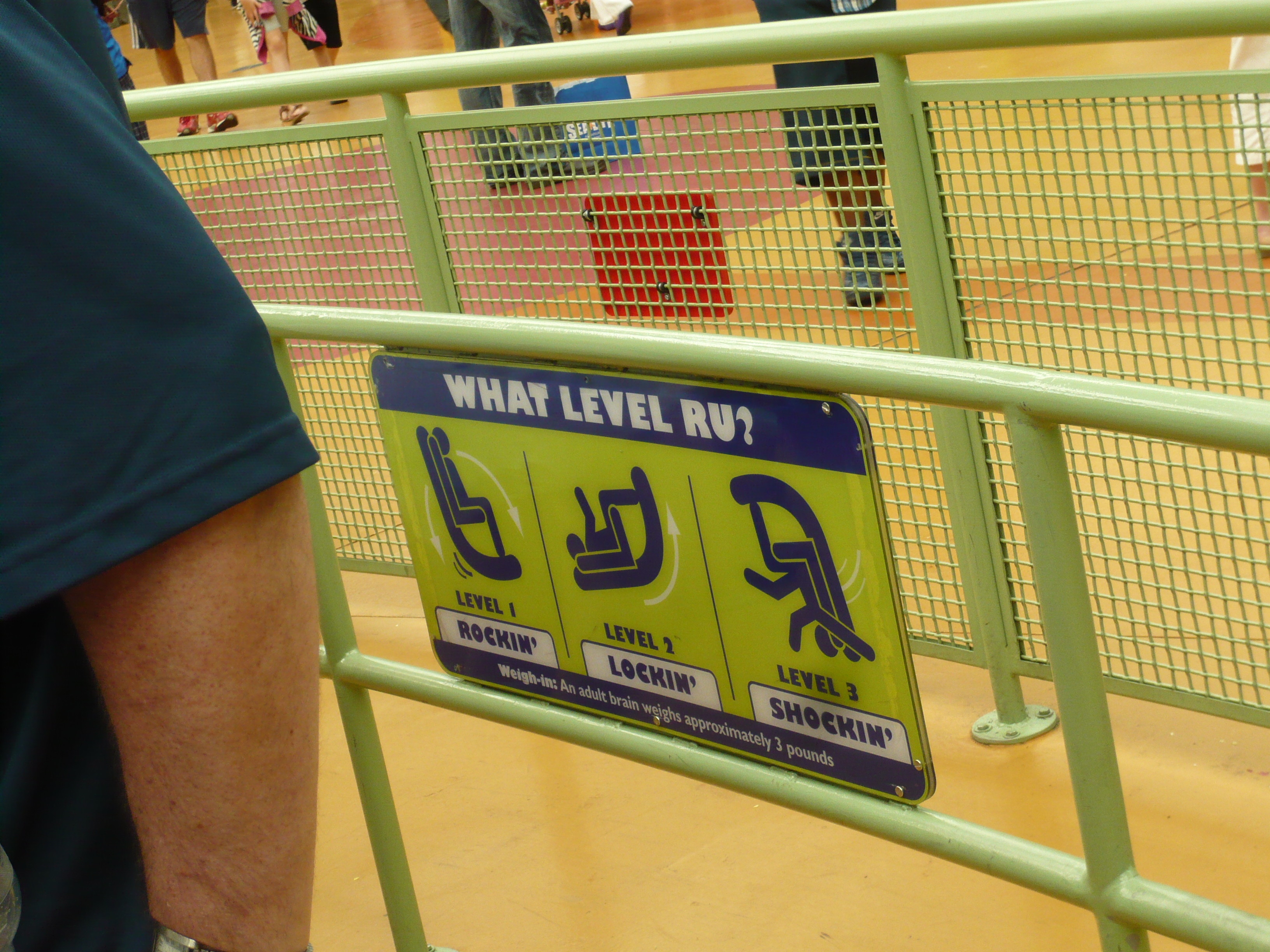 Total abgefahren! Ein extrem geniales und einzigartiges Ding! Während meiner gut 35-minütigen Anstehzeit zog draussen ein recht heftiges Gewitter auf, was die ganze Halle gleich enorm verdunkelte. Da schaltete man kurzerhand überall auf Abendbeleuchtung um - und so fing dann auch das grüne Hirn in der Mitte des Fahrgeschäfts an zu leuchten und zu blinken.