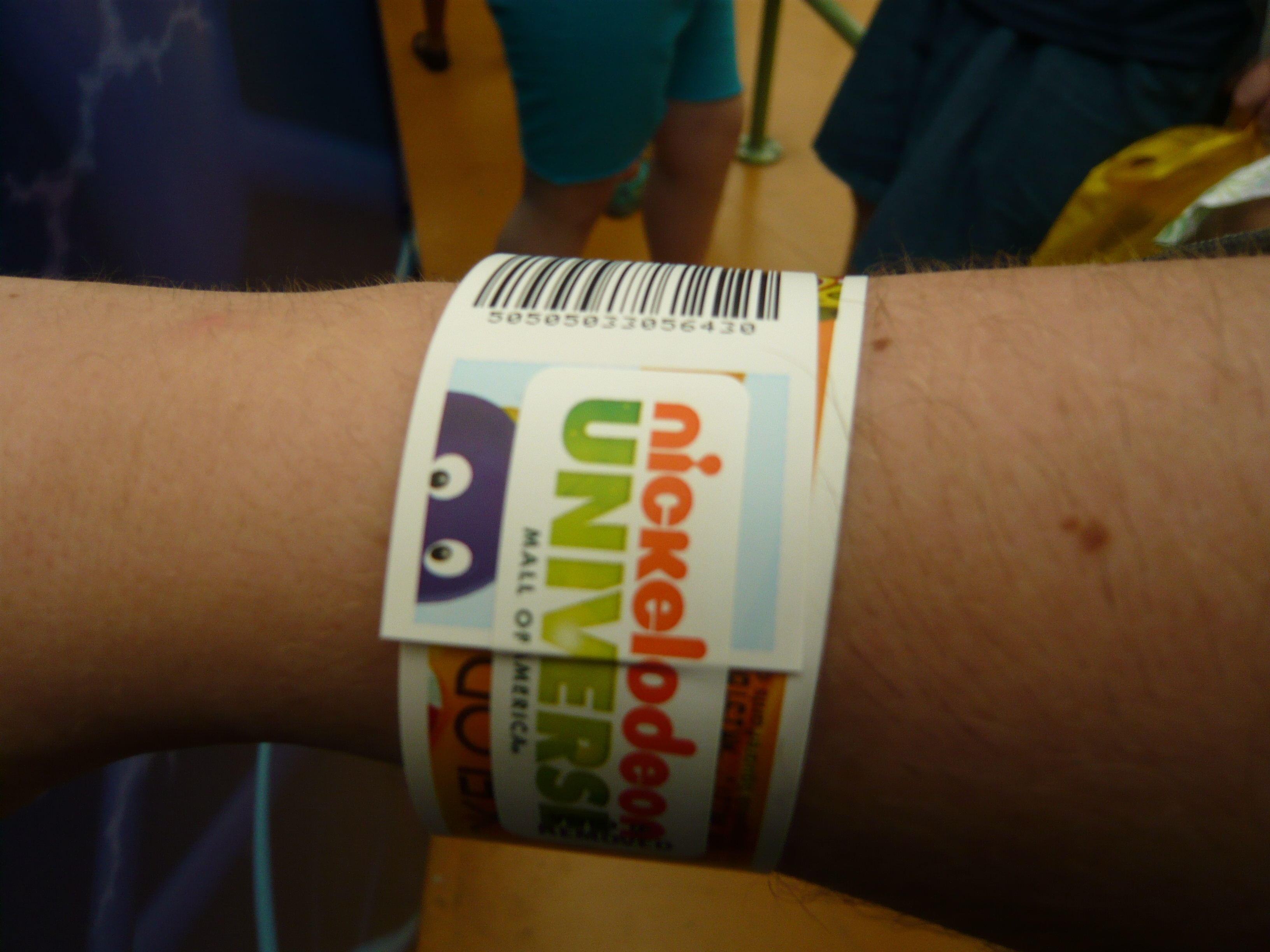 Das Wristband aus dem Automaten, das vor jeder Station kurz per Barcode-Leser eingelesen werden muss. Bei positivem Bescheid hört man Spongebob kichern, bei negativem ein cartoon-typisches "Wua-wua-wuaaa".
