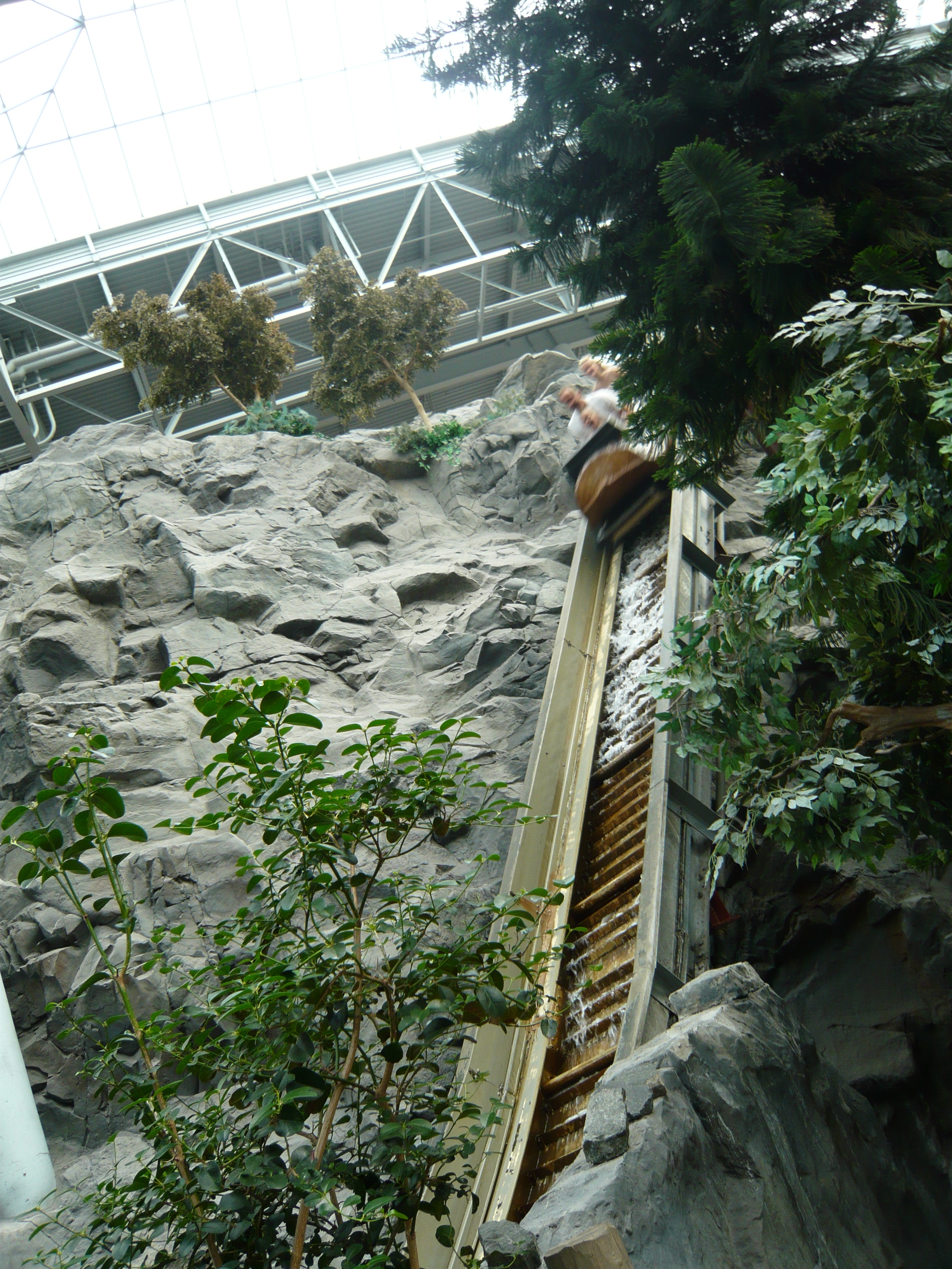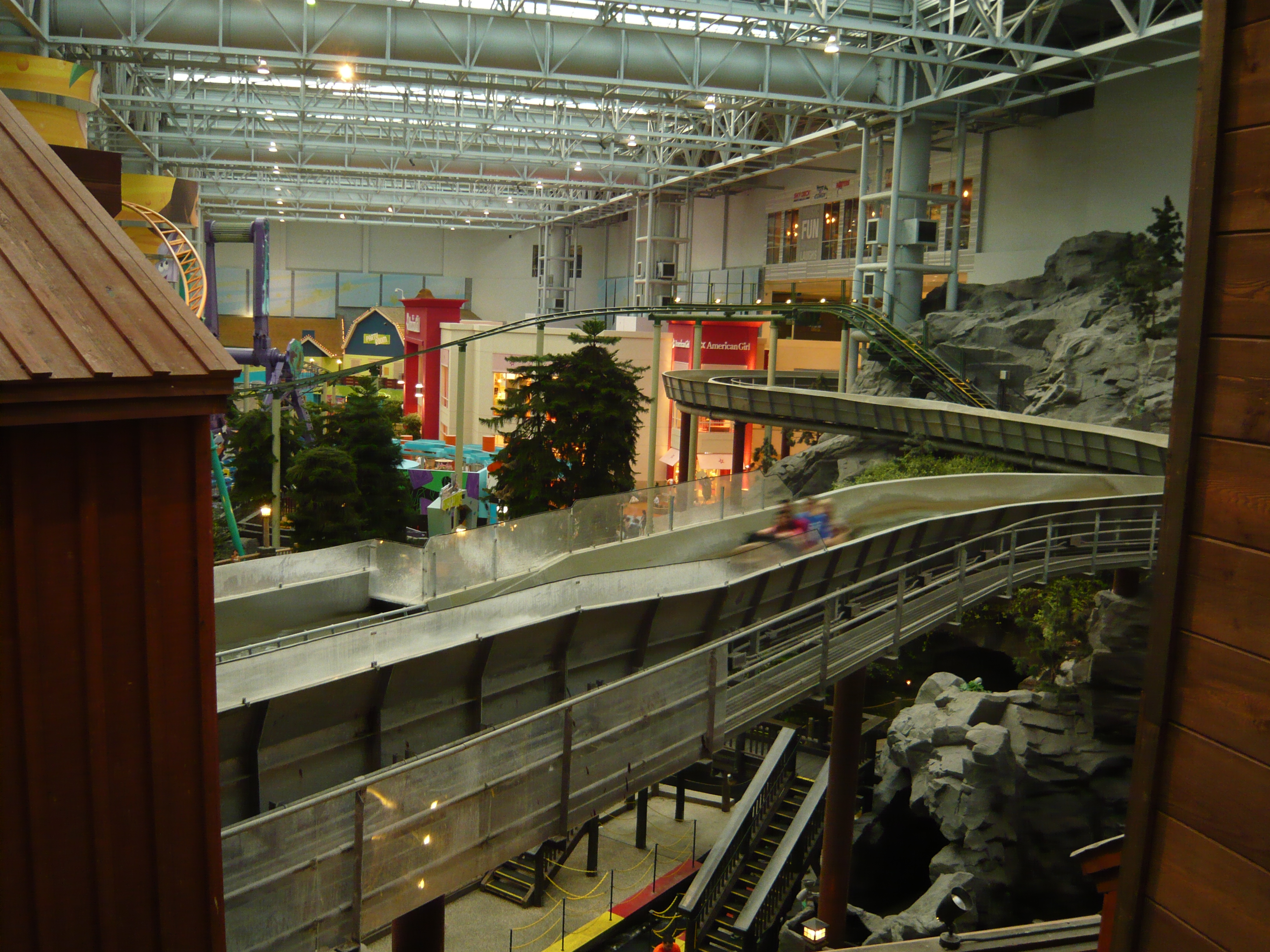Die unter anderem auf geniale Weise am einen Food Court vorbeischlängelnde Log Flume.