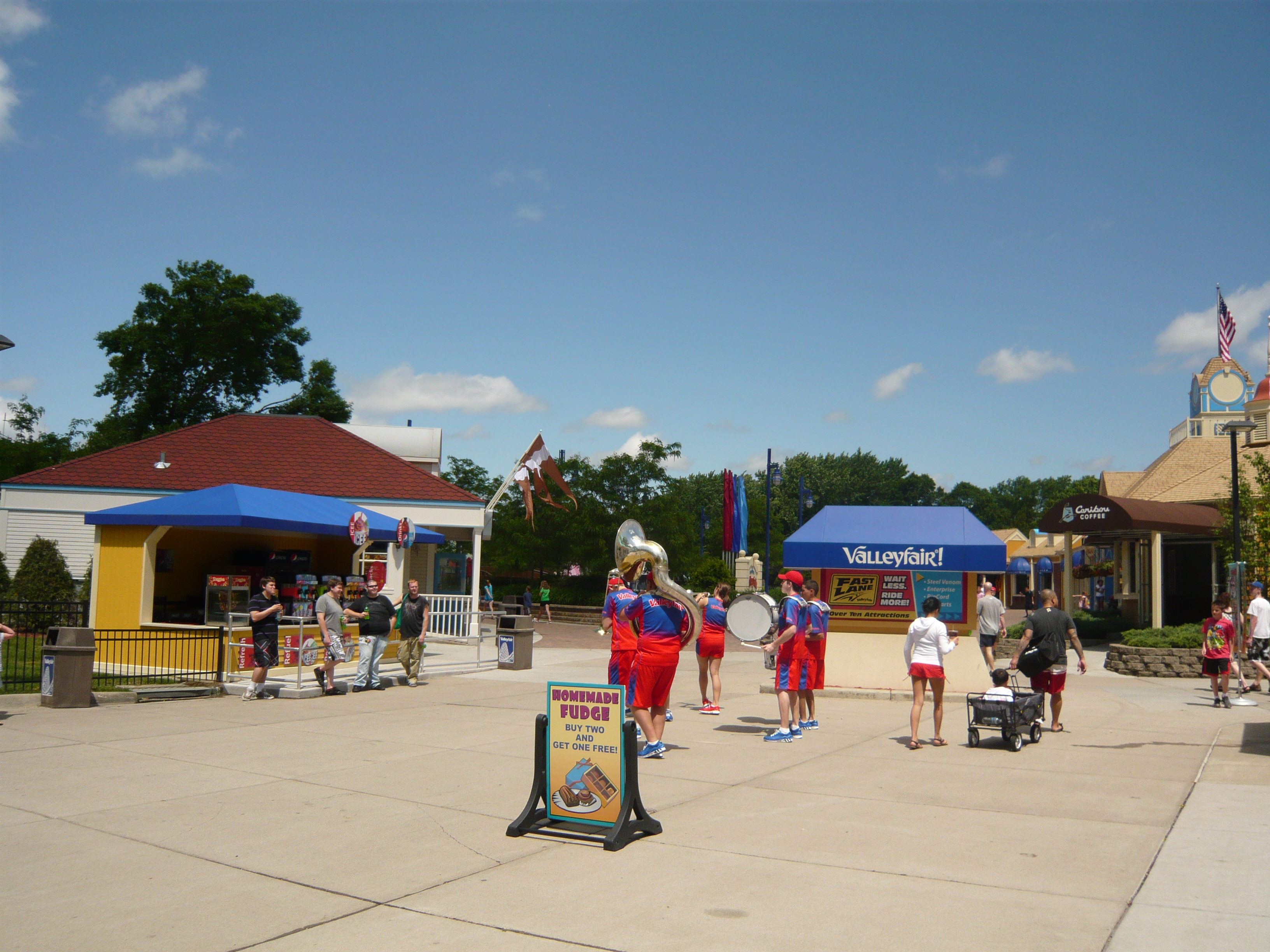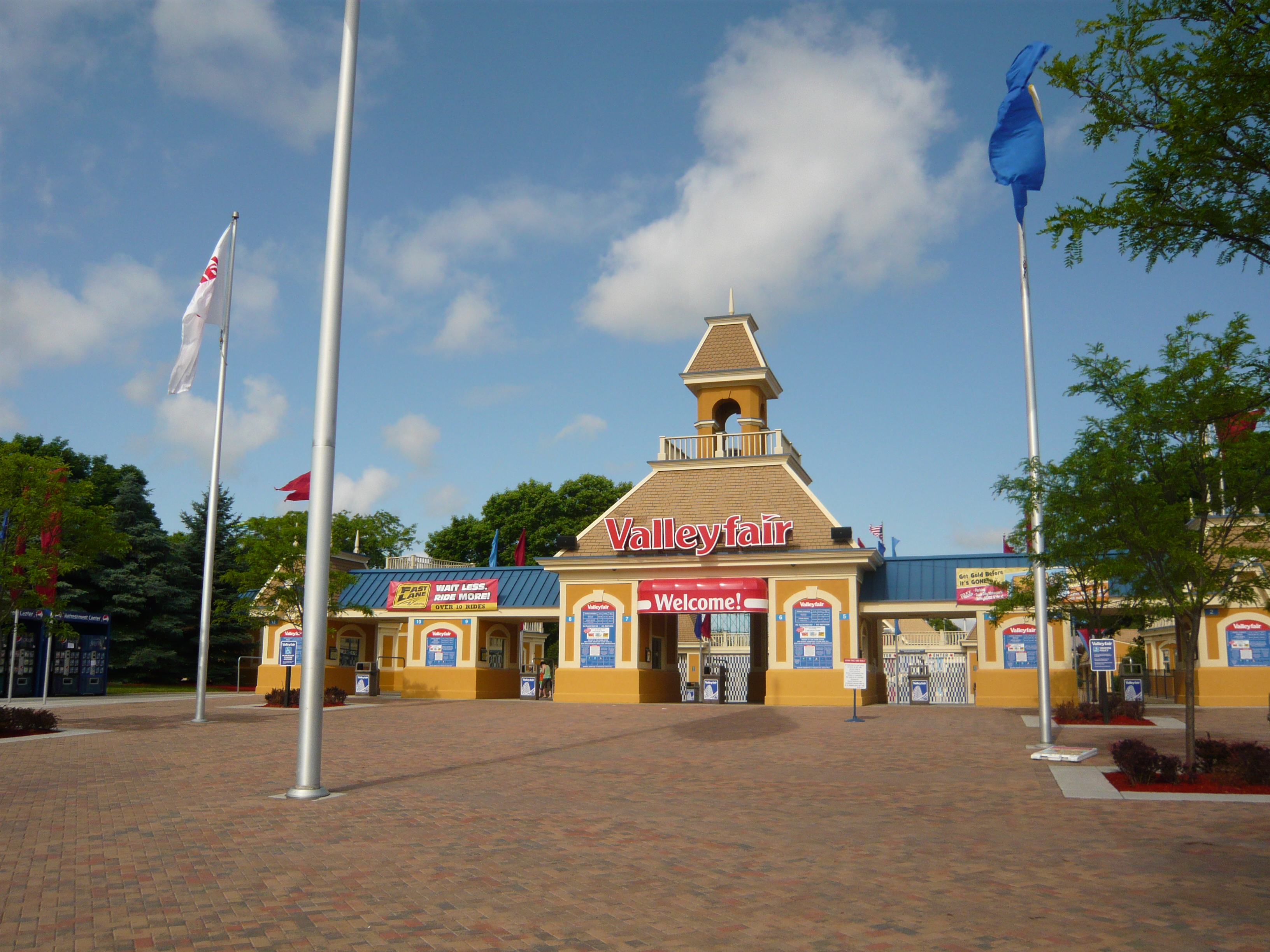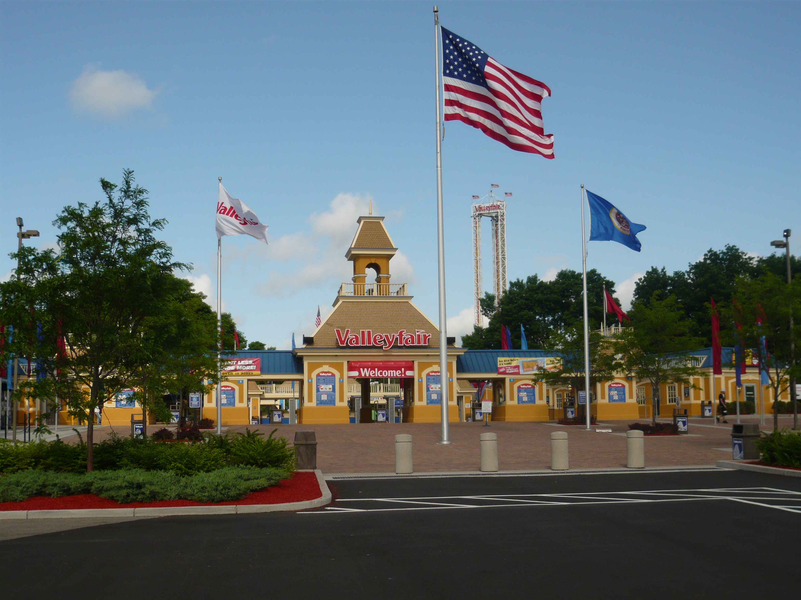 Pünktlich um 10.00 Uhr wurden die Tore zum Park nach obligatorischem Einspielen der Nationalhymne dann aufgesperrt. Da auf diesem Trip für mich nur zwei Cedar Fair-Parks auf dem Plan standen - für die später dazustossenden Kollegen gar nur einer -, lohnte sich nach genauem Durchrechnen der Cedar Fair Plantinum Pass dieses Jahr nicht. Daher habe ich mein Ticket für Valleyfair vergünstigt online gekauft und dann in der Lobby meines Hotels ausgedruckt.
