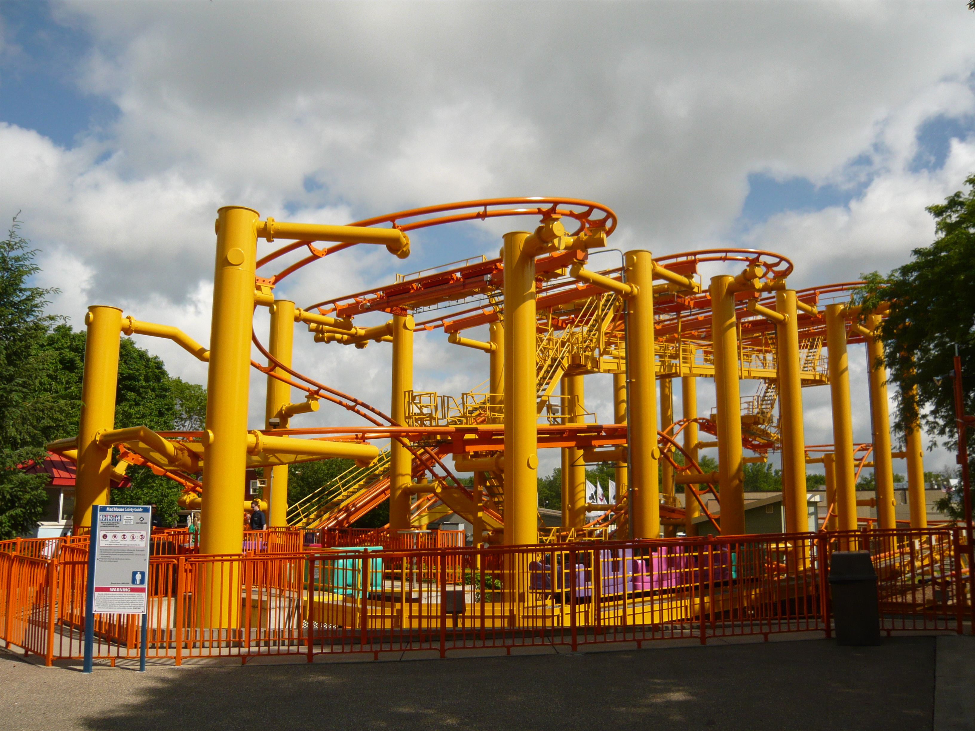 Der erfahrene Coasterfreak weiss: zuerst Kapazitätsgurken abspulen. Daher ging es als erstes zur Arrow-Maus Mad Mouse!