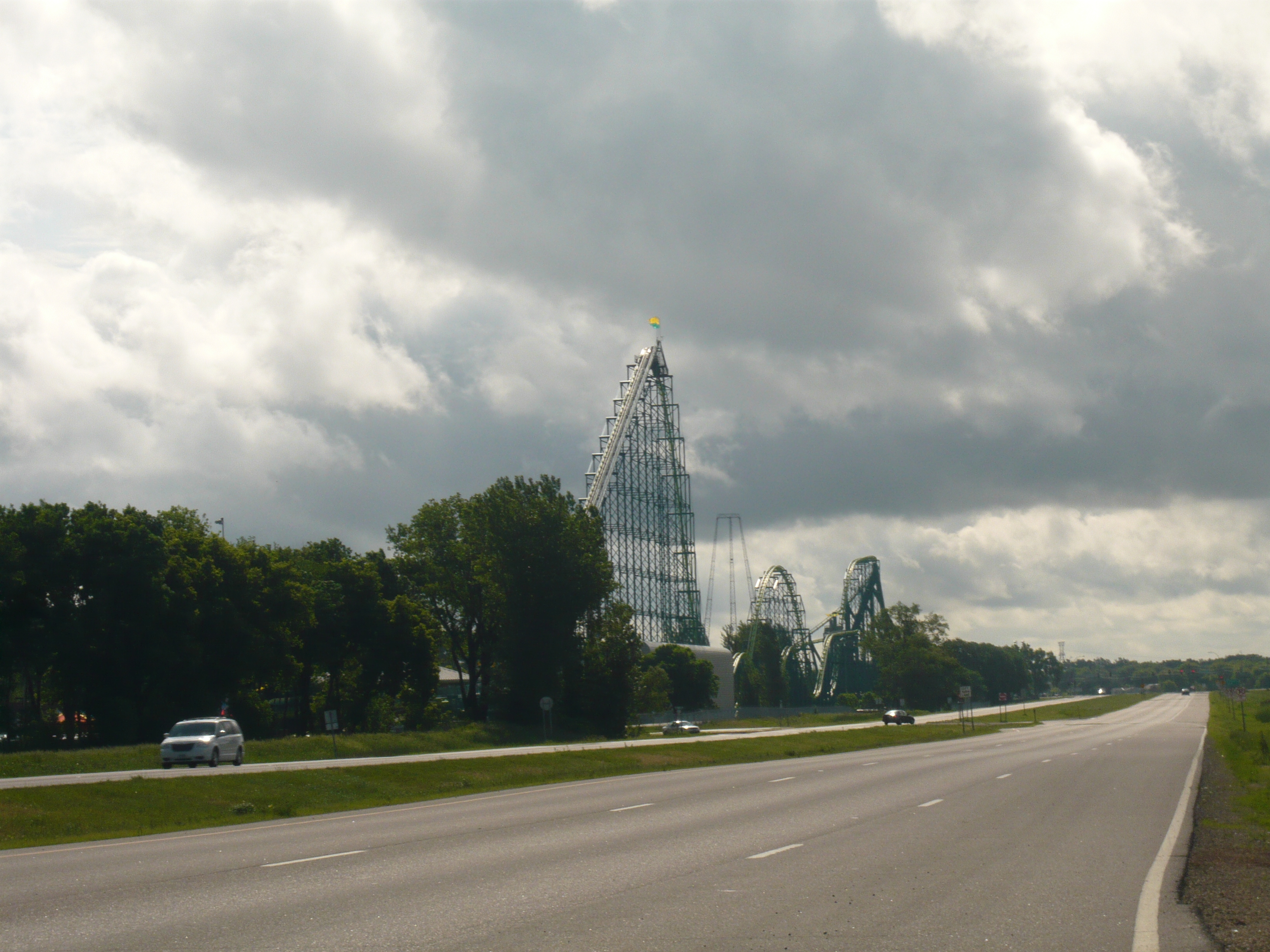 Nach meiner Besichtigung von Minneapolis und dem Abstecher in die Mall of America samt Nickelodeon Universe ging es am zweiten Reisetag, dem Memorial Day, dann ein gutes Stück südwestlich nach Shakopee MN, wo Valleyfair liegt. Ich war erstaunt darüber, wie plötzlich man hier von städtischem Gebiet zu SFGAdv-mässiger Pampaszenerie gewechselt hat.