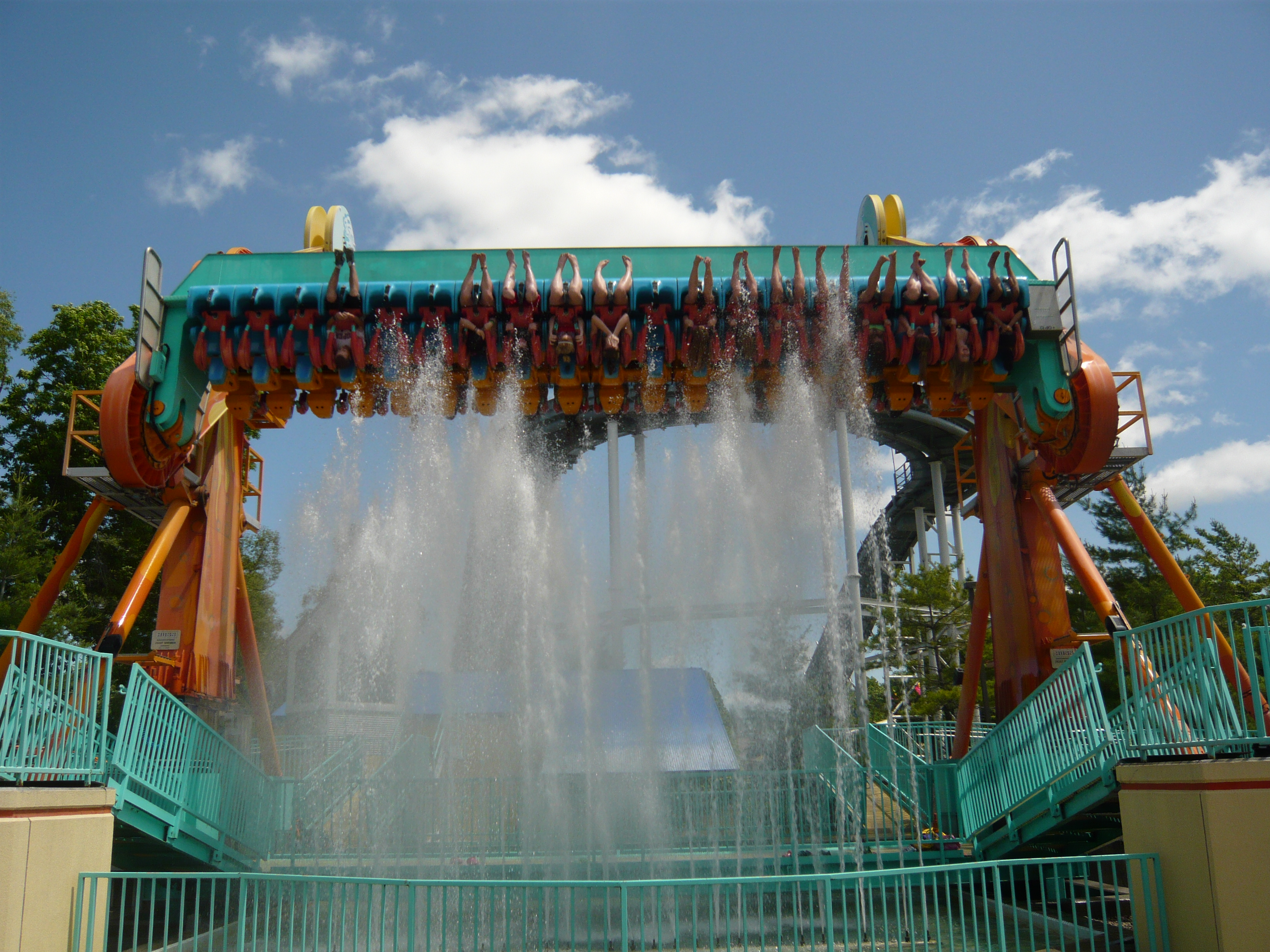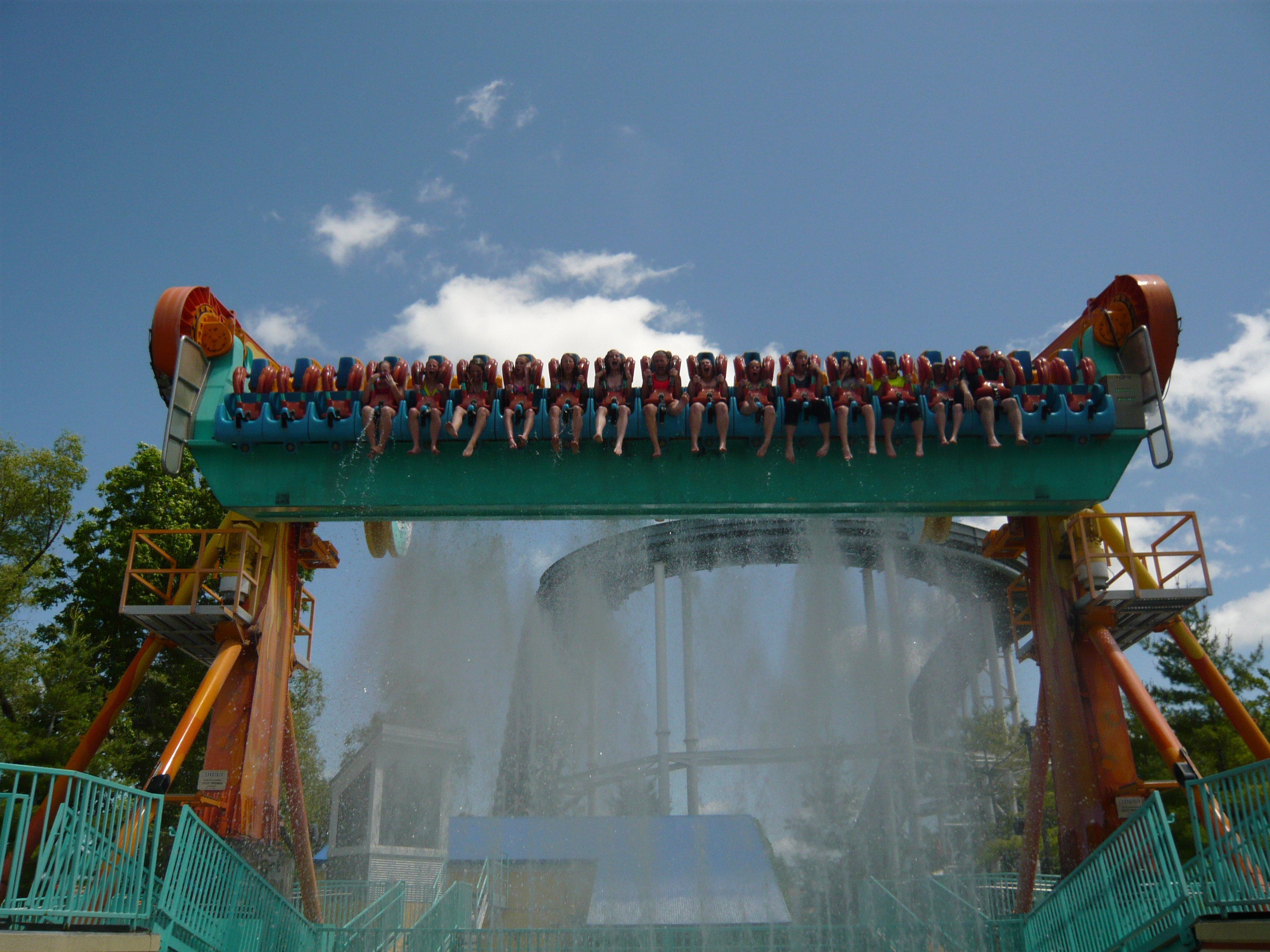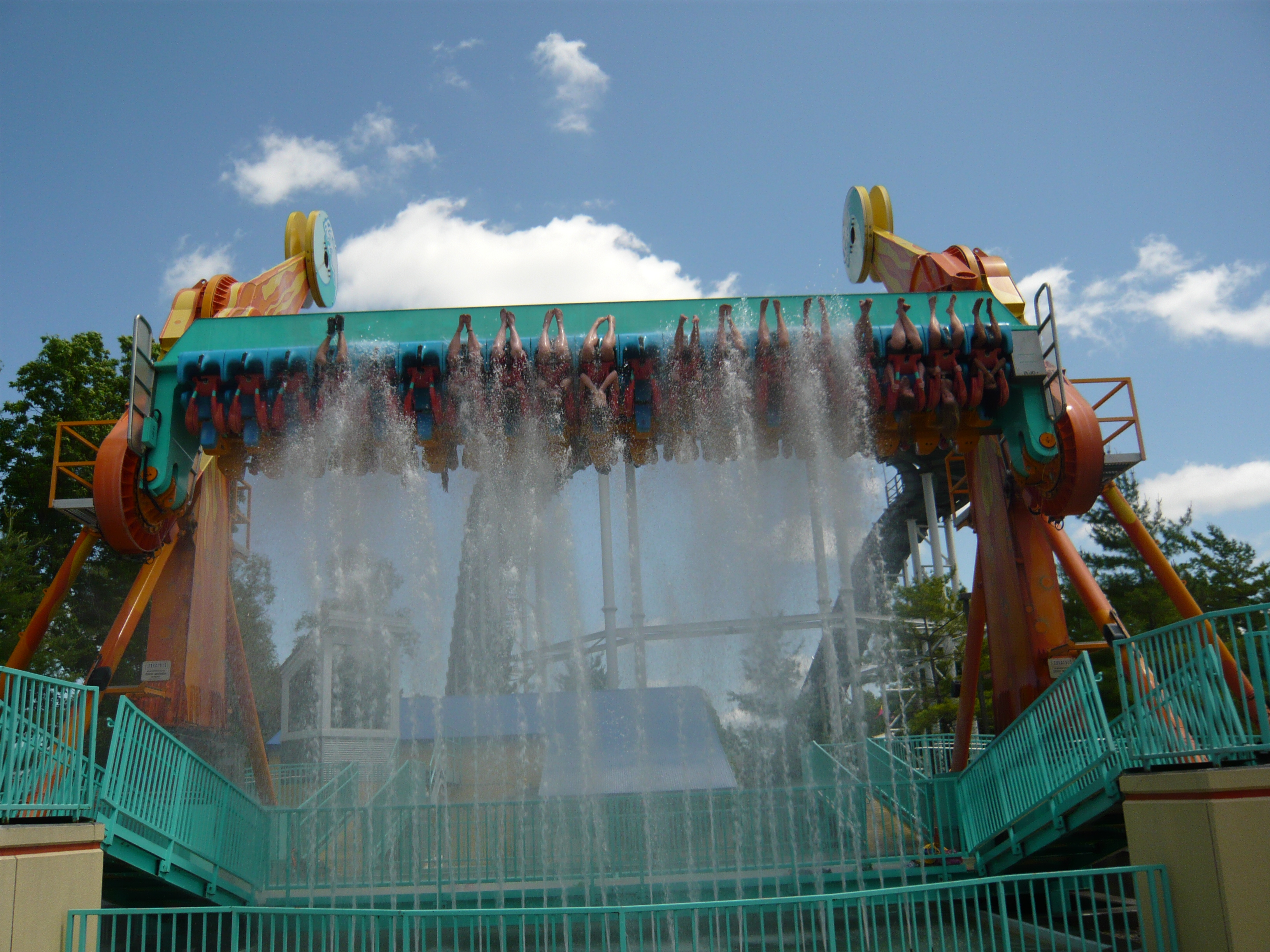 Eigentlich war mir schon bekannt, dass Amis beim Betreiben ihrer Top Spins generell nicht wasserscheu sind, aber ein derartiges Drenching-Ausmass wie beim hiesigen Exemplar Riptide habe ich trotzdem noch nie gesehen! Alle Passagiere sind hier aus unübersehbar guten Beweggründen nur in Badekleidung mitgefahren.