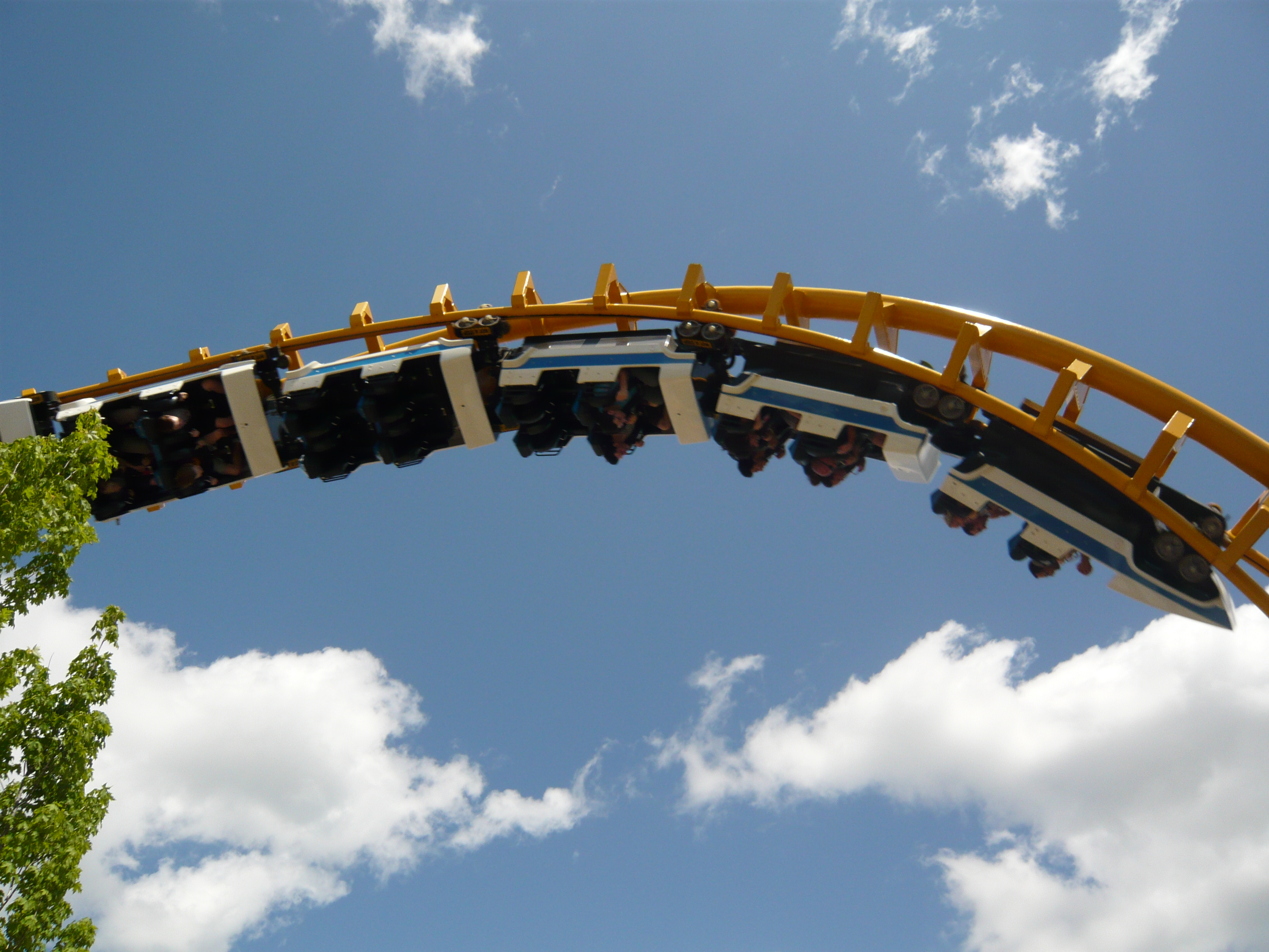 Banking einiger Kurven. Die Hügelstrecke im unteren Teil kam mir überraschend wild vor, ausserdem bin ich dieses Mal in der vorderen Reihe gesessen, wo Personen mit langen Beinen erschreckende Near-Misses mit scheinbar in die Strecke reinragenden Bremsgeländern im oberen Zickzack-Kurs erleben können!