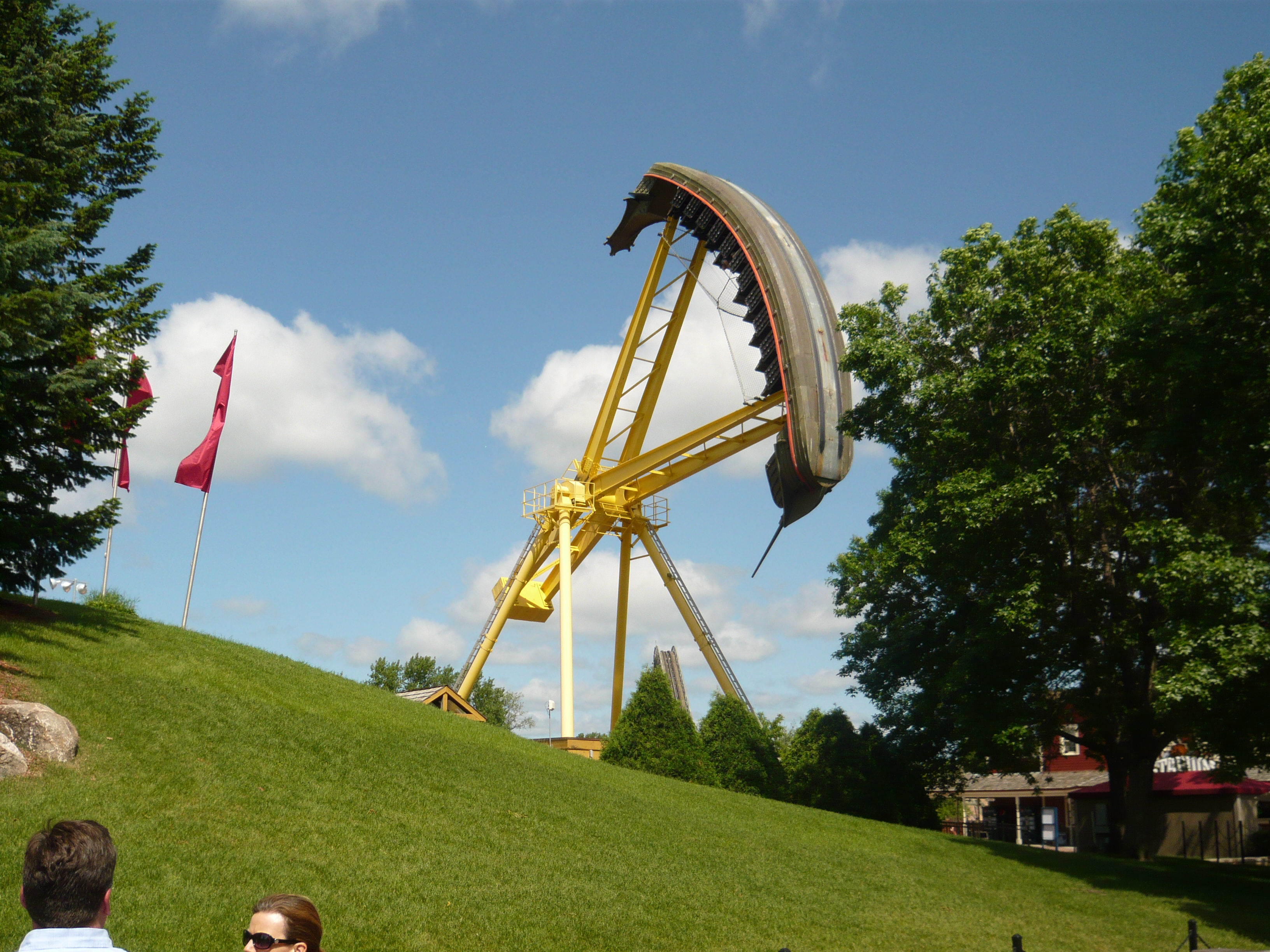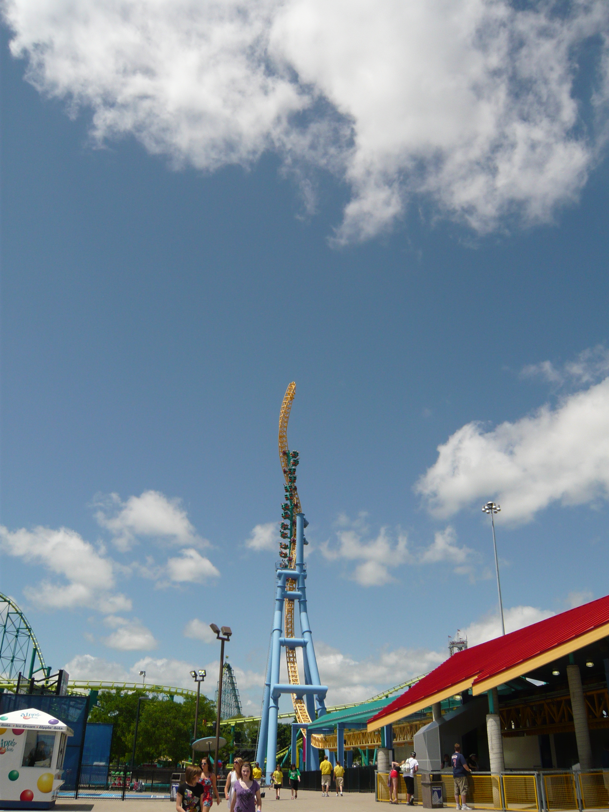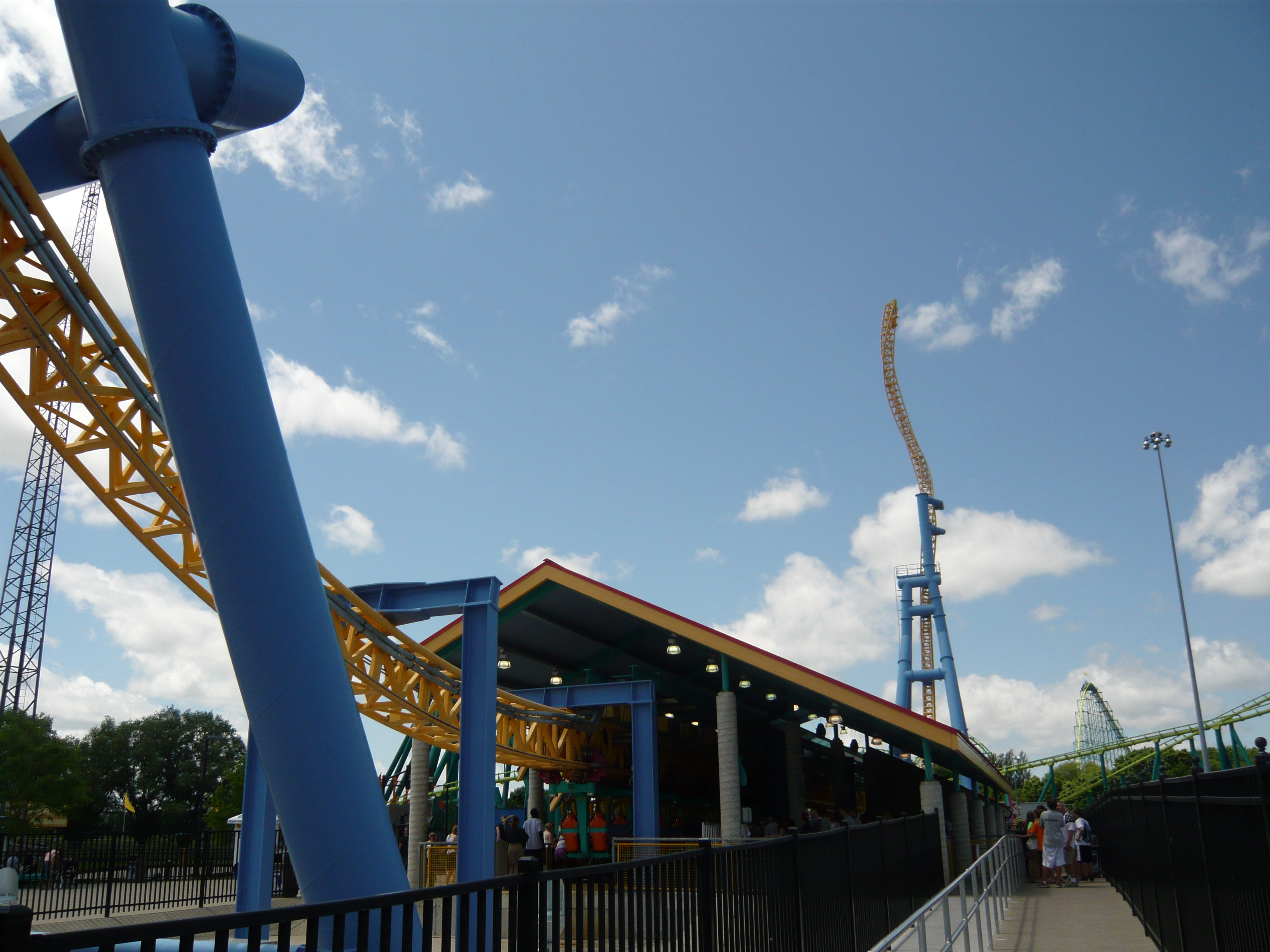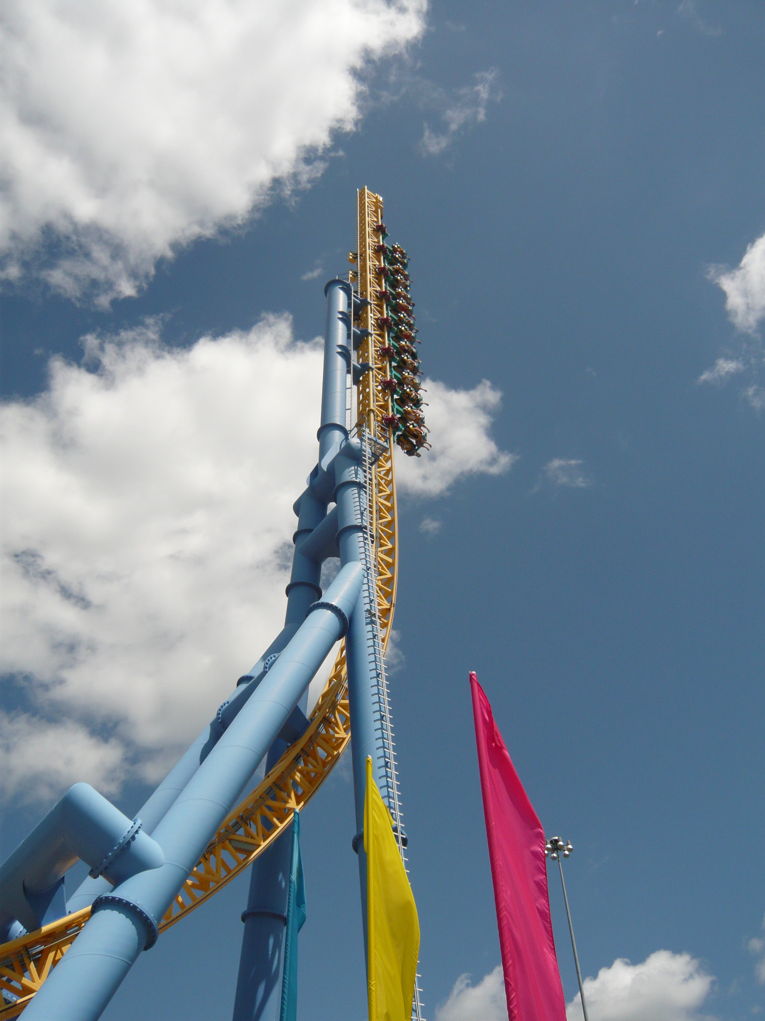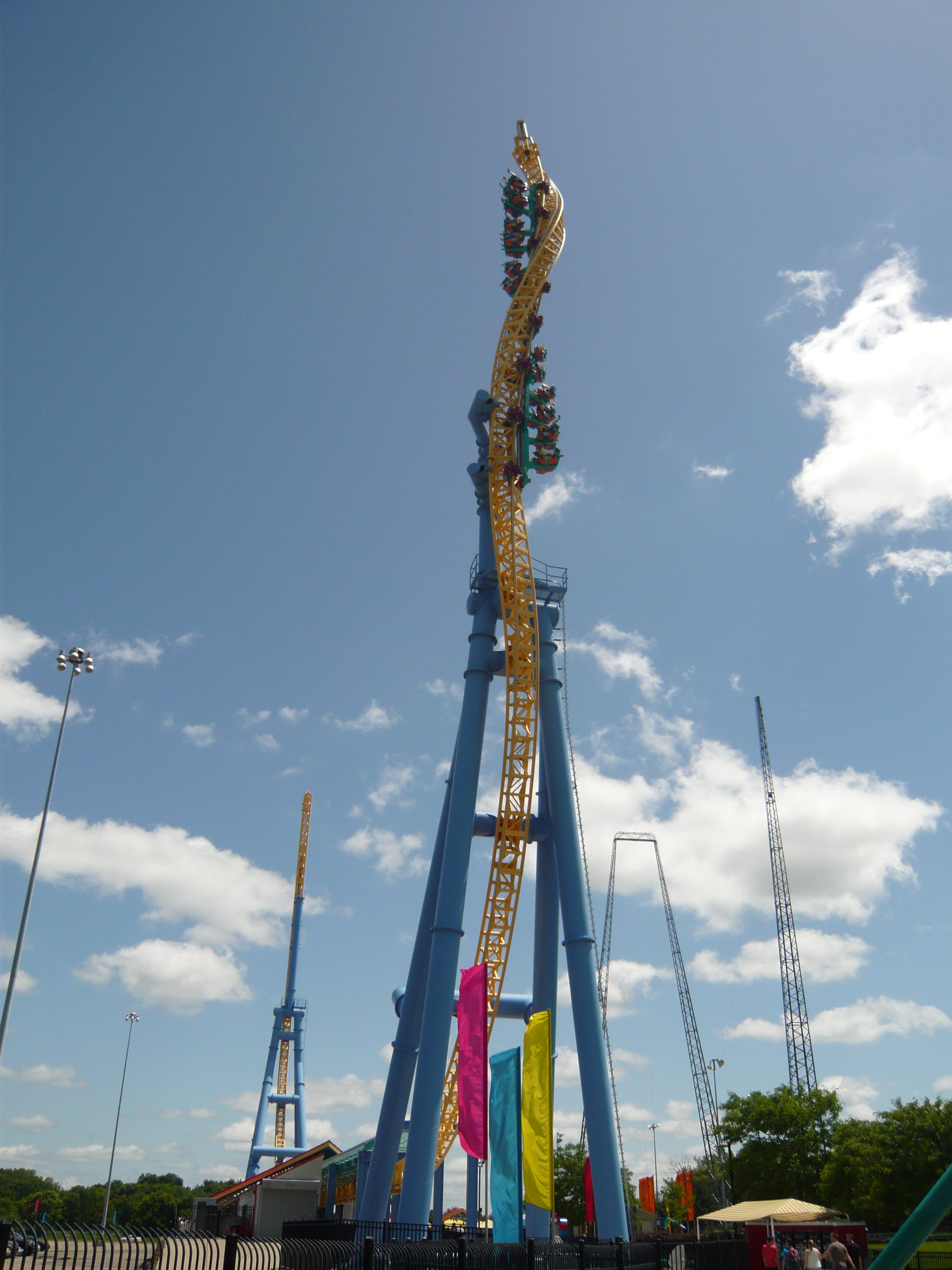 Was mir hier noch speziell aufgefallen ist: Irgendwie wirken kurz vor dem Erklimmen des hinteren Turms extrem starke positive Gs - so stark habe ich die auf meinen anderen gefahrenen Exemplaren definitiv nicht wahrgenommen. Kann es sein, dass die einzelnen Anlagen verschieden grosse "Radien" in die Senkrechtstrecke haben? Auf jeden Fall mit Abstand die heftigste Bahn im Park und ein extrem geniales Teil!