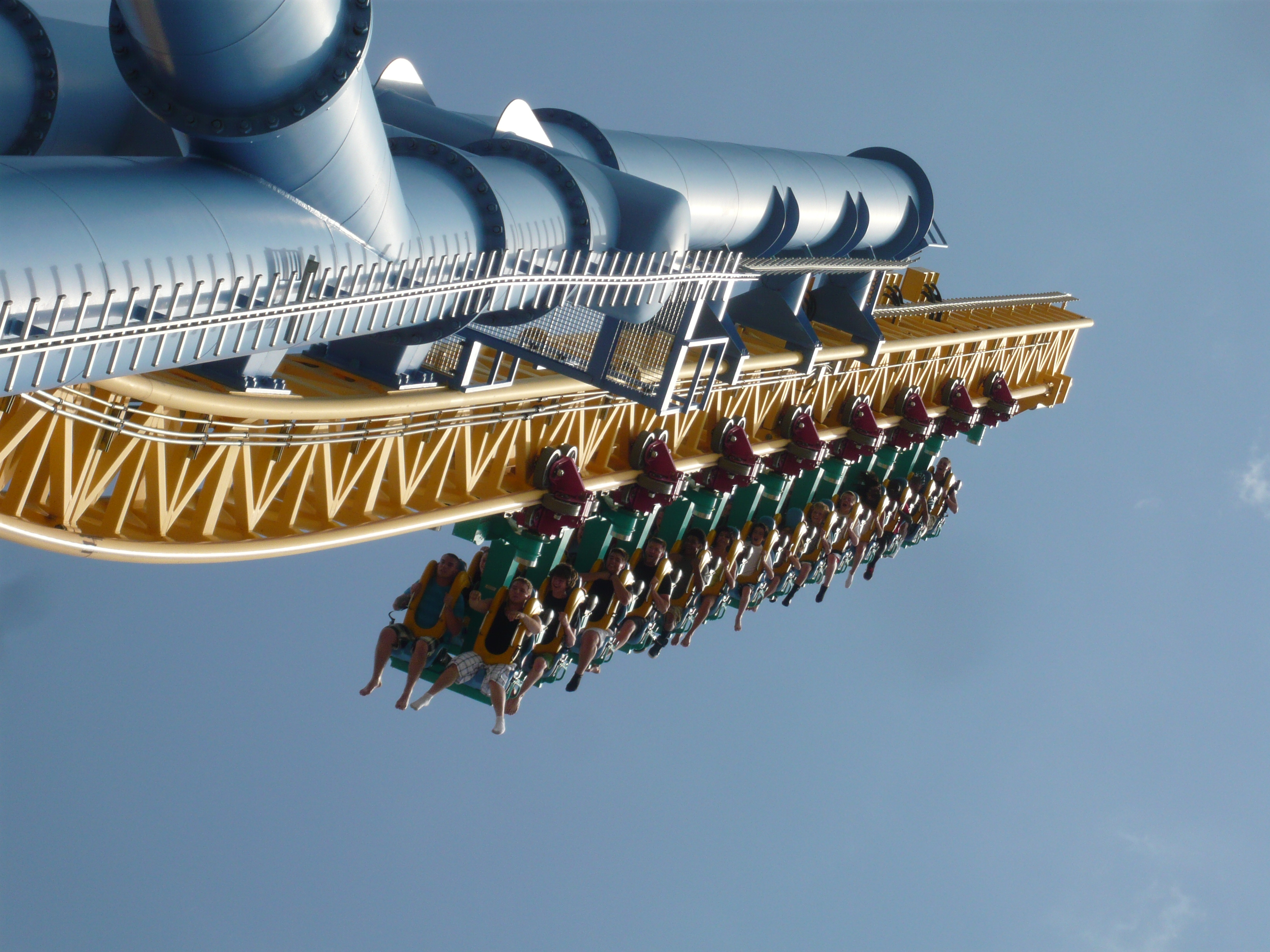 Die Launches auf diesen Dingern sind einfach nach wie vor allererste Sahne, mit unbeschreiblichem Druck wird man fest in den Sitz gepusht und das Blut schiesst nur so in die Beine! Die Senkrechtspiralen sind ebenfalls ein sehr geniales Erlebnis und dieses Exemplar lässt die Passagiere auf dem hinteren Turm auch wieder kurz hängen, so dass man volle Kanne in die Schulterbügel runtersinkt - obwohl es nur ein paar Zentimeter sind, durch die man den Kontakt zur Rückenlehne zu verlieren scheint, reicht es in dieser Höhe völlig aus, einen komplett aus dem Häuschen zu bringen!