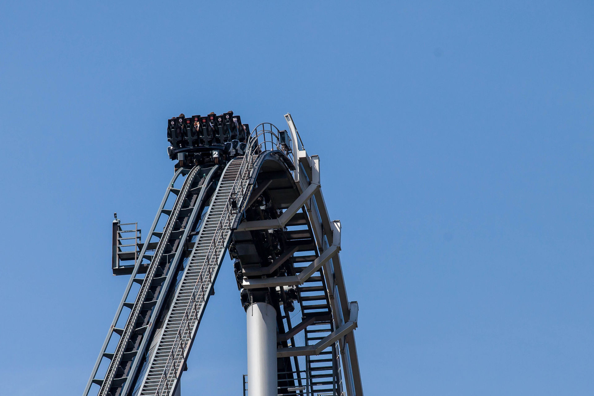 Der kurze Rückwärtsdrop bietet bei der ersten Fahrt eine gehörige Portion Bauchkribbeln, bevor es über den kleinen