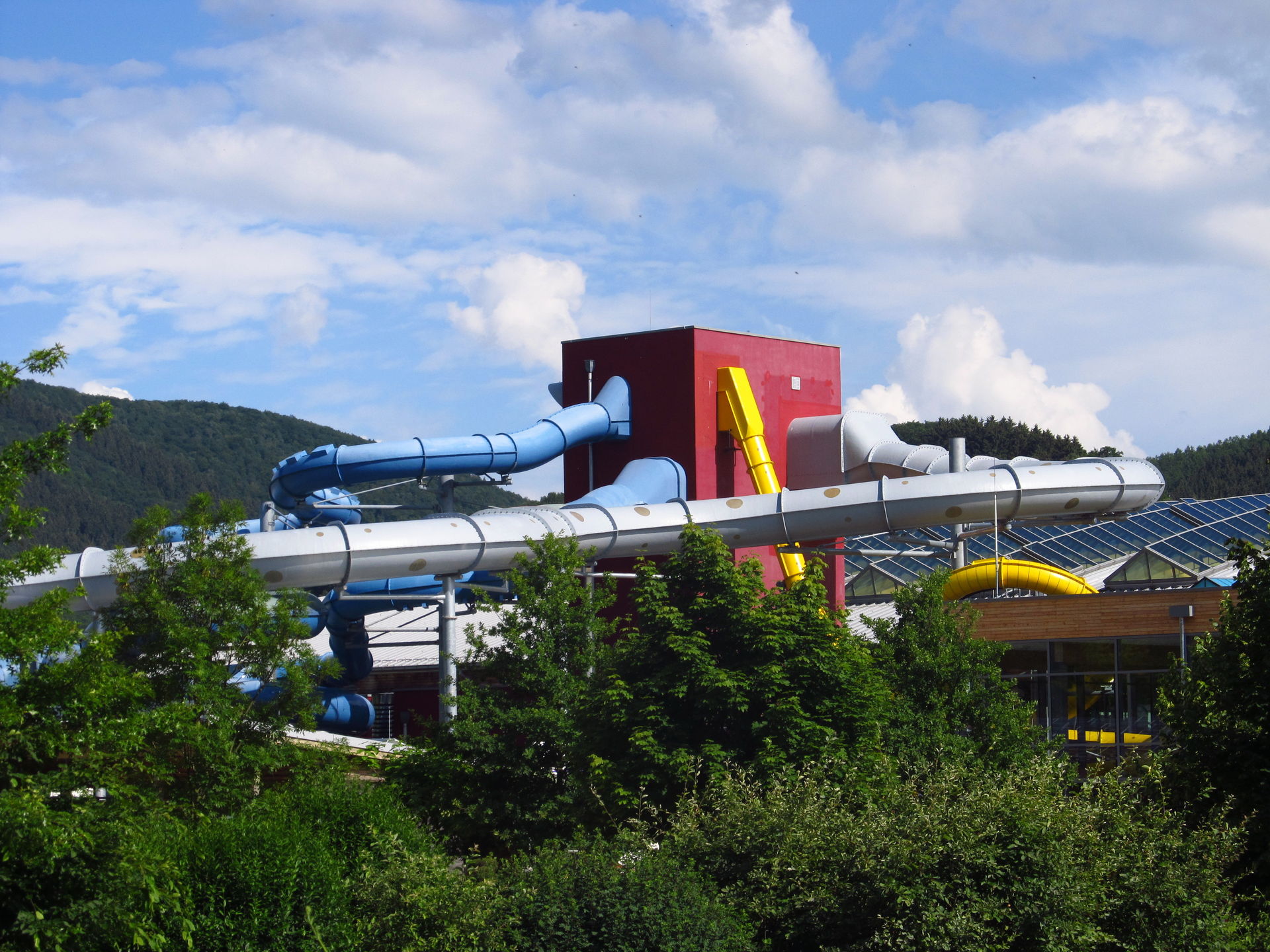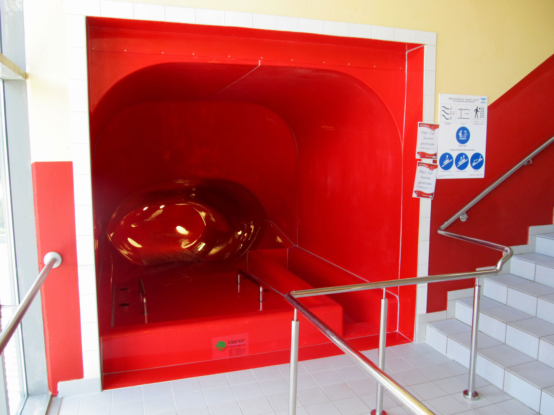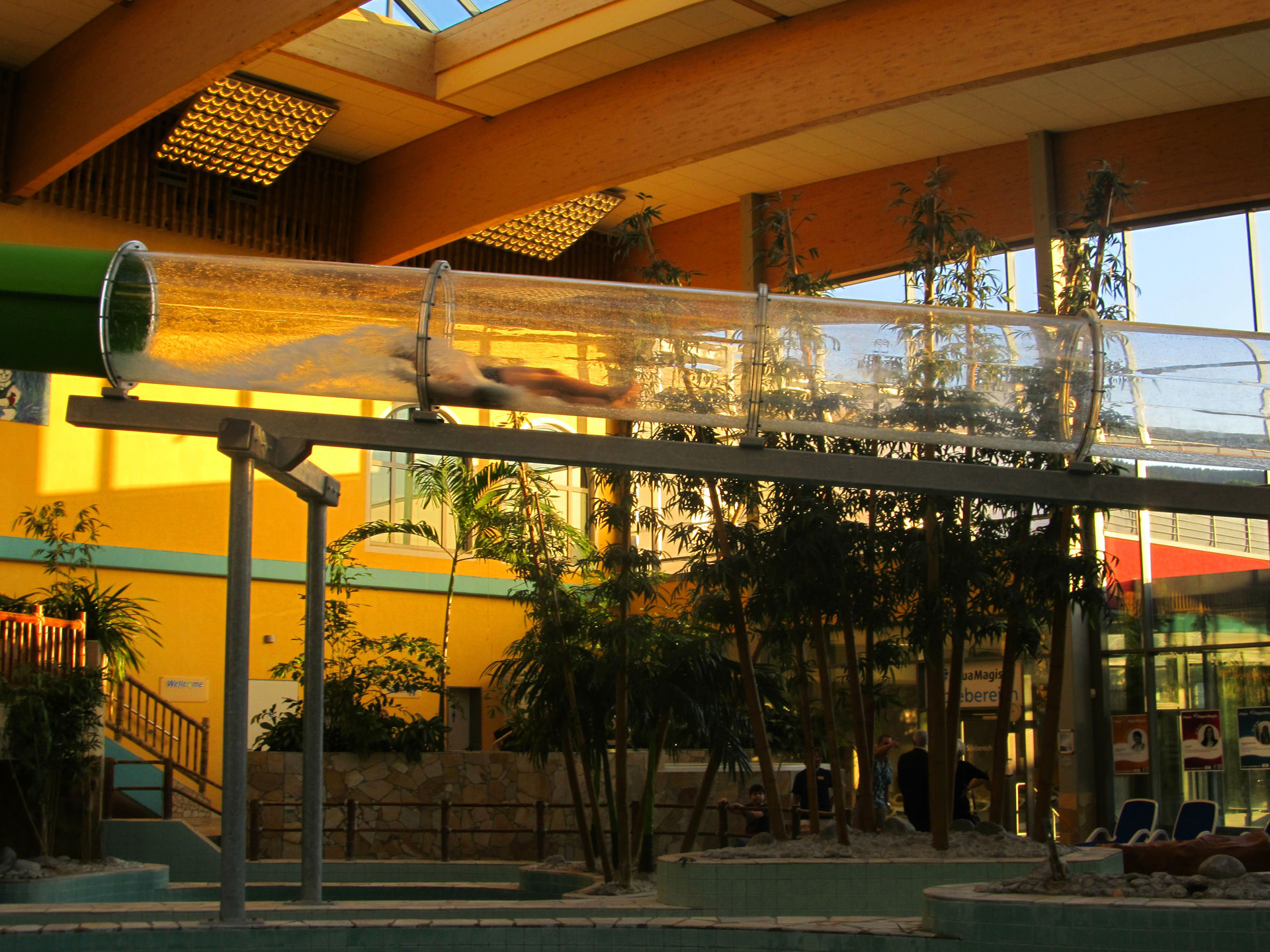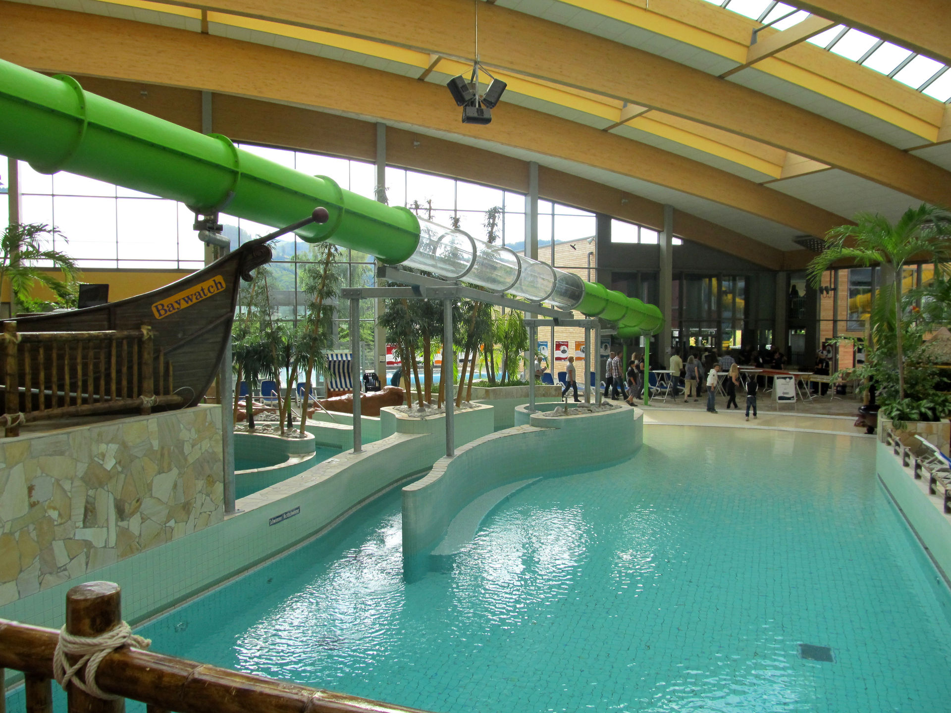 Schon beim Betreten der Schwimmhalle fällt die Turborutsche