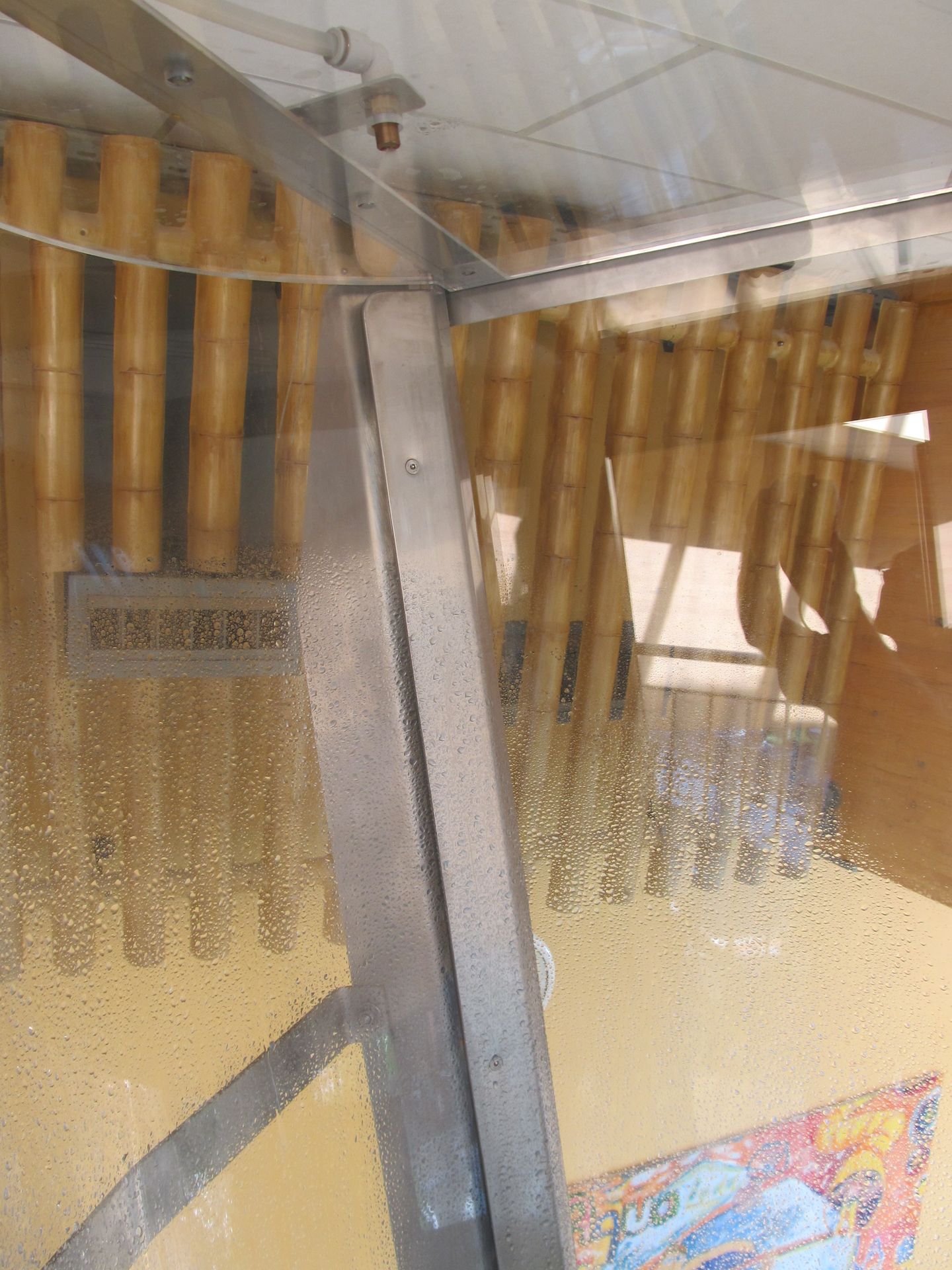 ...die von innen durch einen Wassersprüher benetzt wird und...