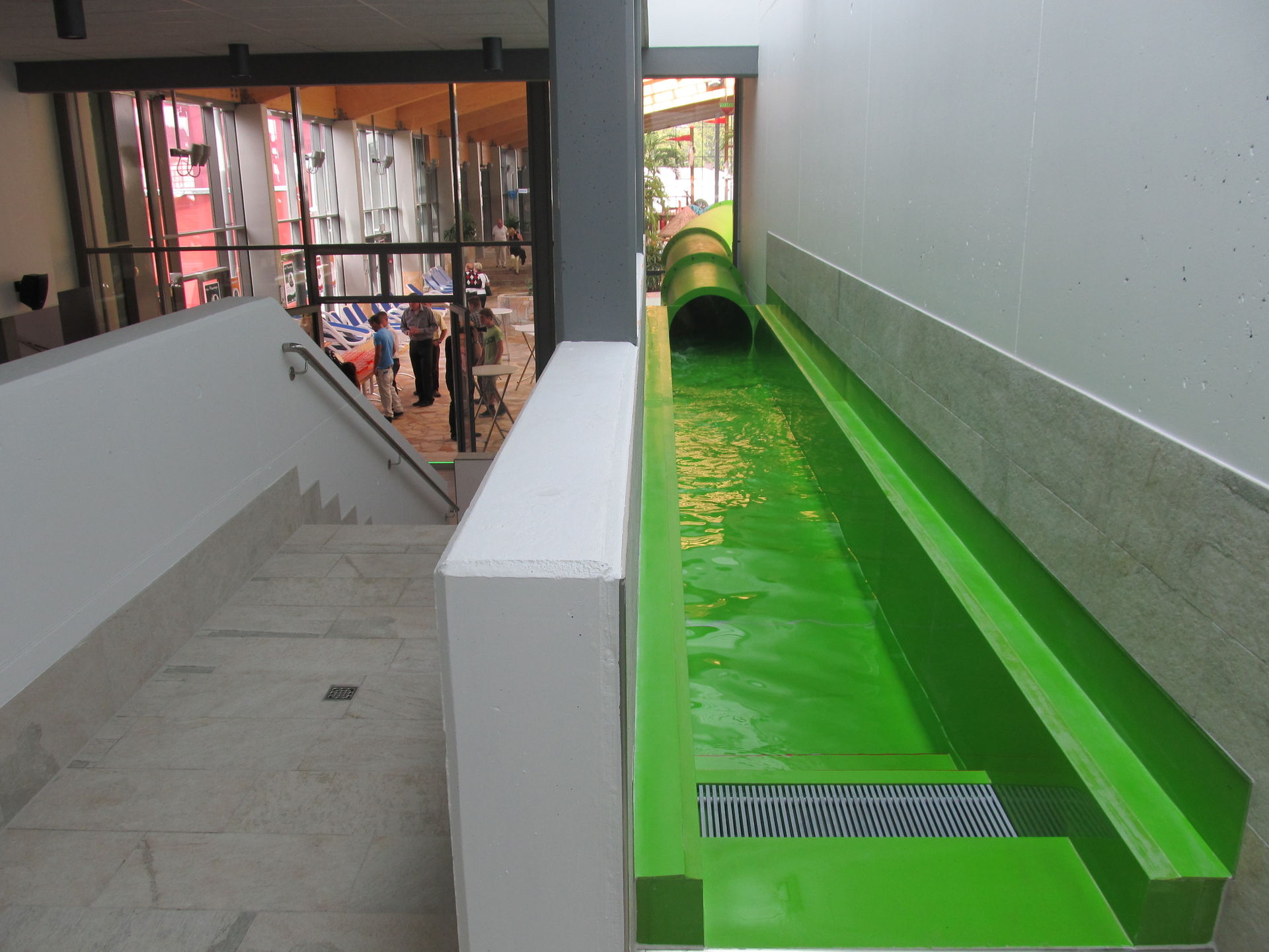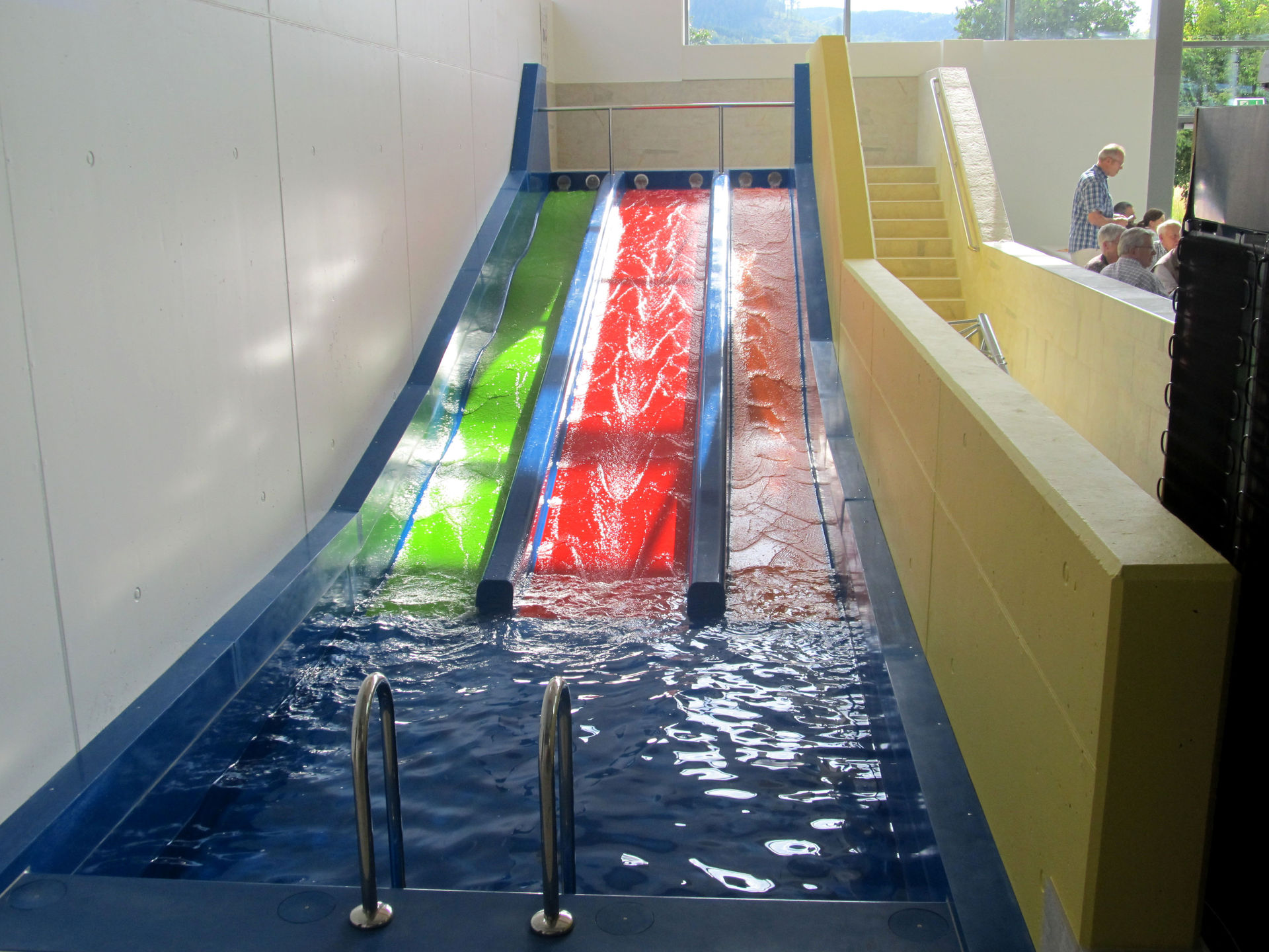 Die Rutsche führt über Wellenbecken und Strömungskanal