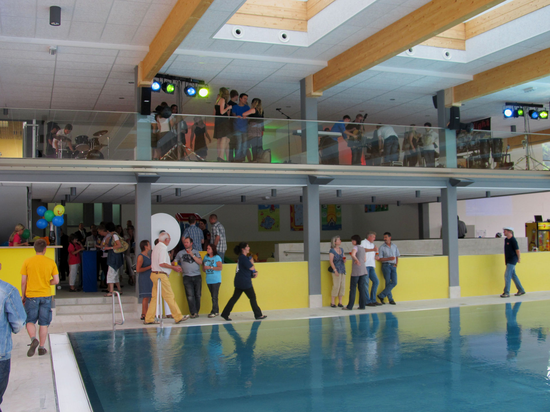 Panoramabad umgebaut. Das 25m-Becken ist damit jetzt ganzjährig überdacht nutzbar. Dieser neue Bereich ist mit großen Glasfronten ausgestattet, was ihm den Namen Panoramabad einbrachte. Das zunächst angedachte Cabrio-Dach ist zwar nicht verwirklicht worden, aber an zwei Seiten lassen sich die Glaswände fast vollständig zum Außenbereich öffnen.