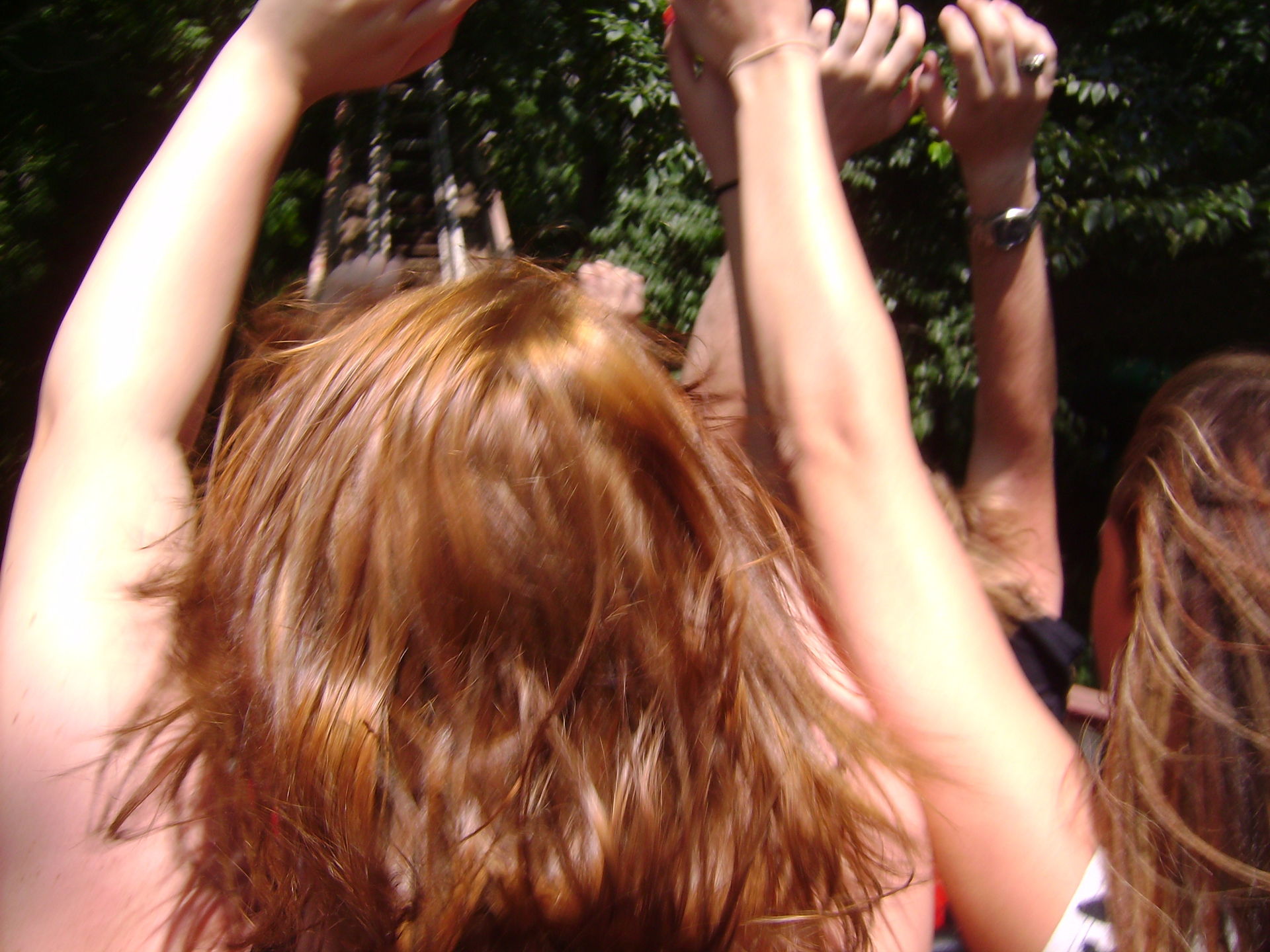 Man sieht zwar auch ein paar Blätter, aber in erster Linie sieht man die langen glatten Haare der vorausfahrenden und schreienden Teenagerinnen