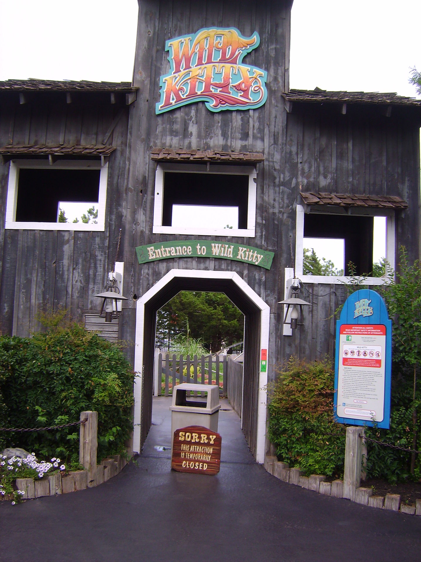In dem großen Holzgebäude stand mal eine Achterbahn, jetzt ist es leider leer. Bitte wieder auffüllen!