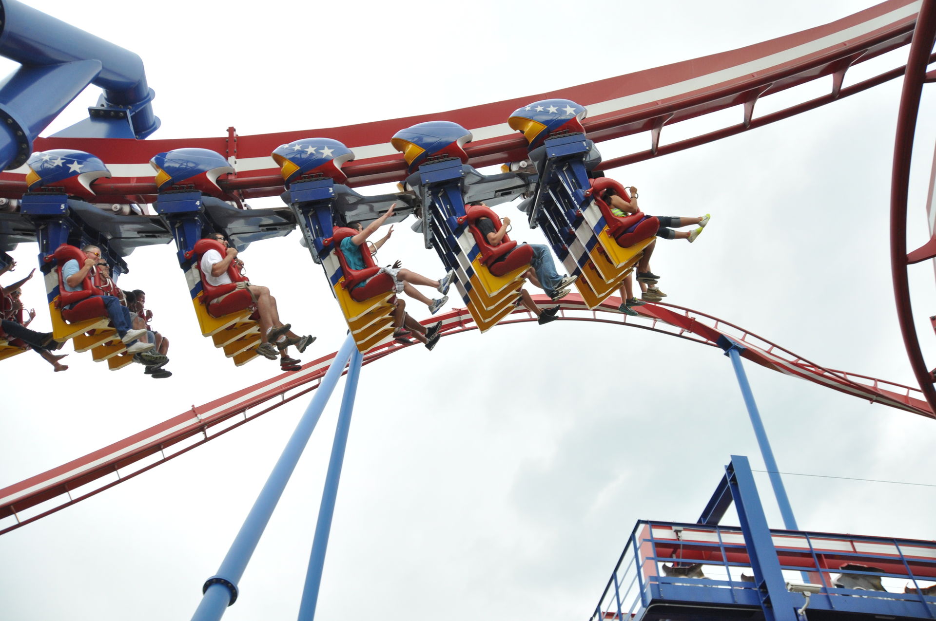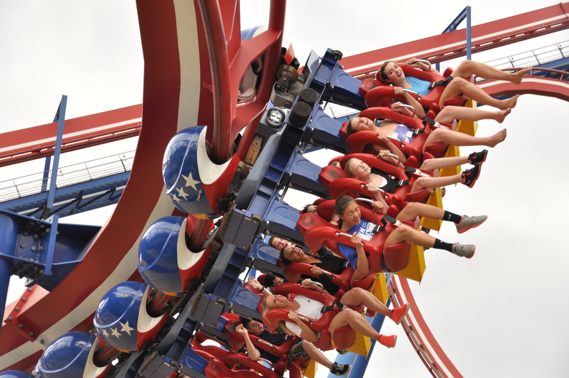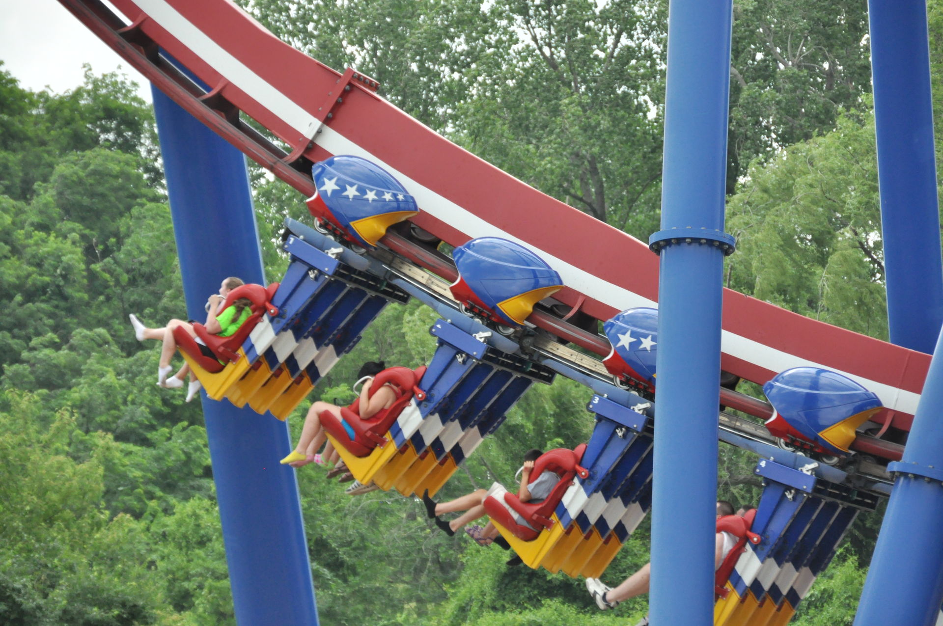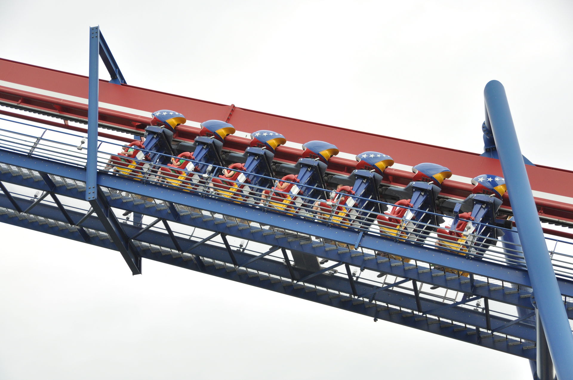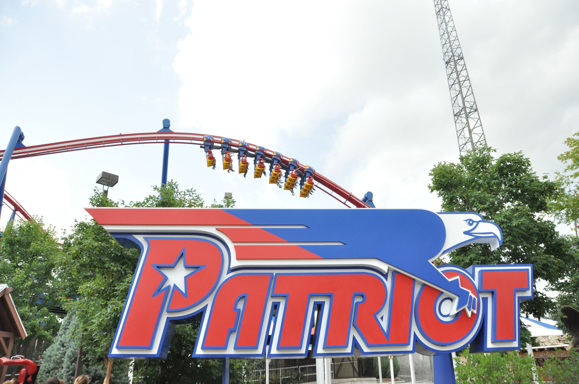 Patriot ist zwar nicht die neueste Bahn im Park, aber sicherlich noch die populärste, und der in den Farben der amerikanischen Stars & Stripes gestrichenen Bahn ist noch immer der Hauptanziehungspunkt im Park.