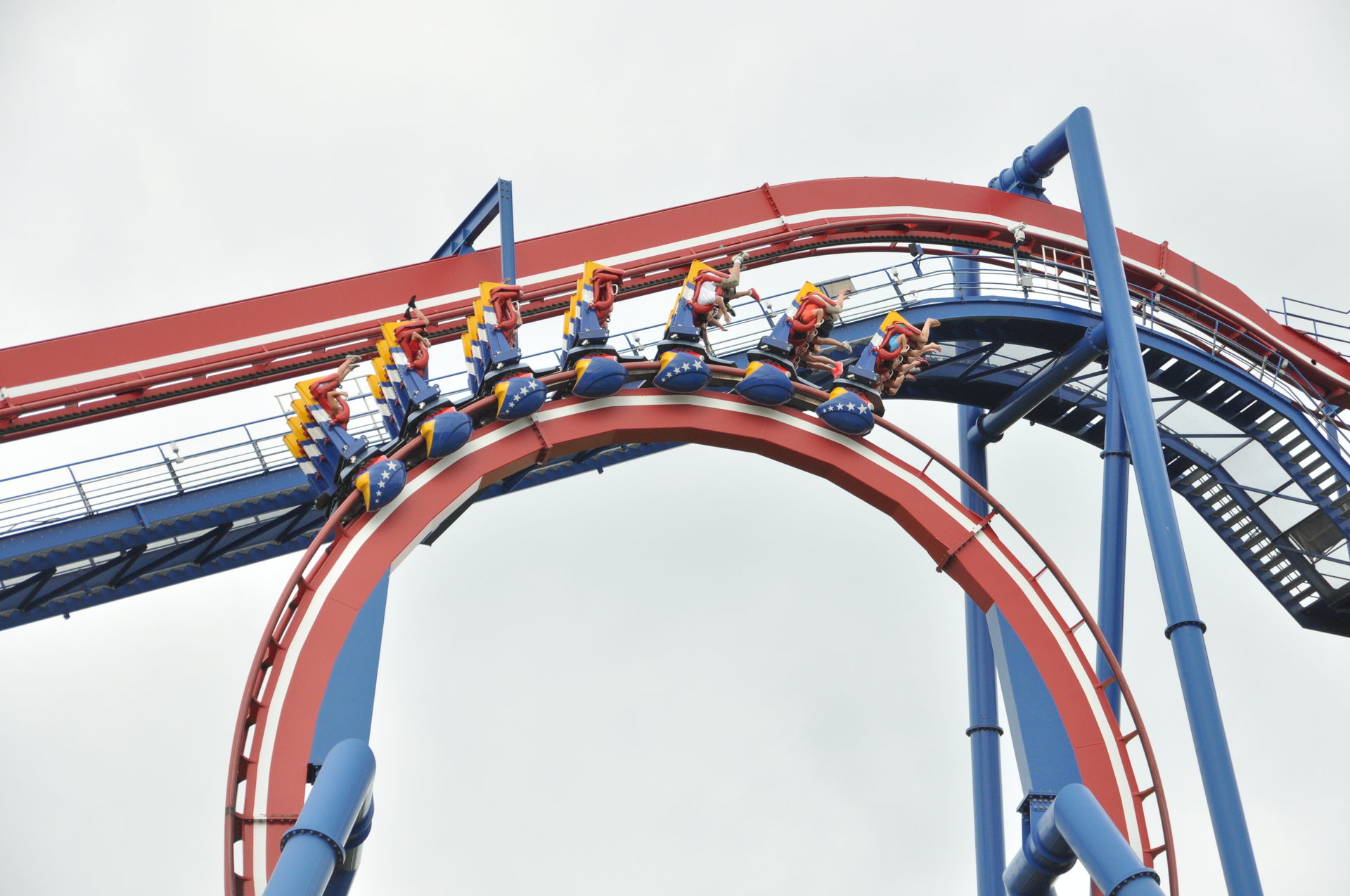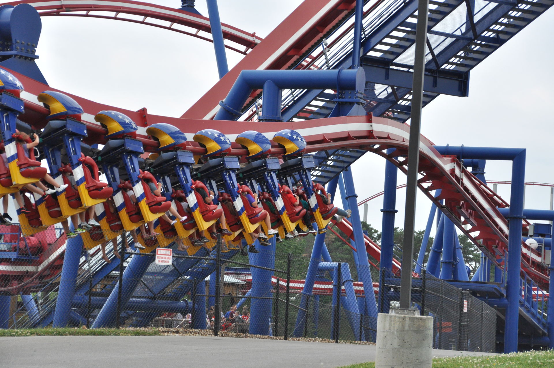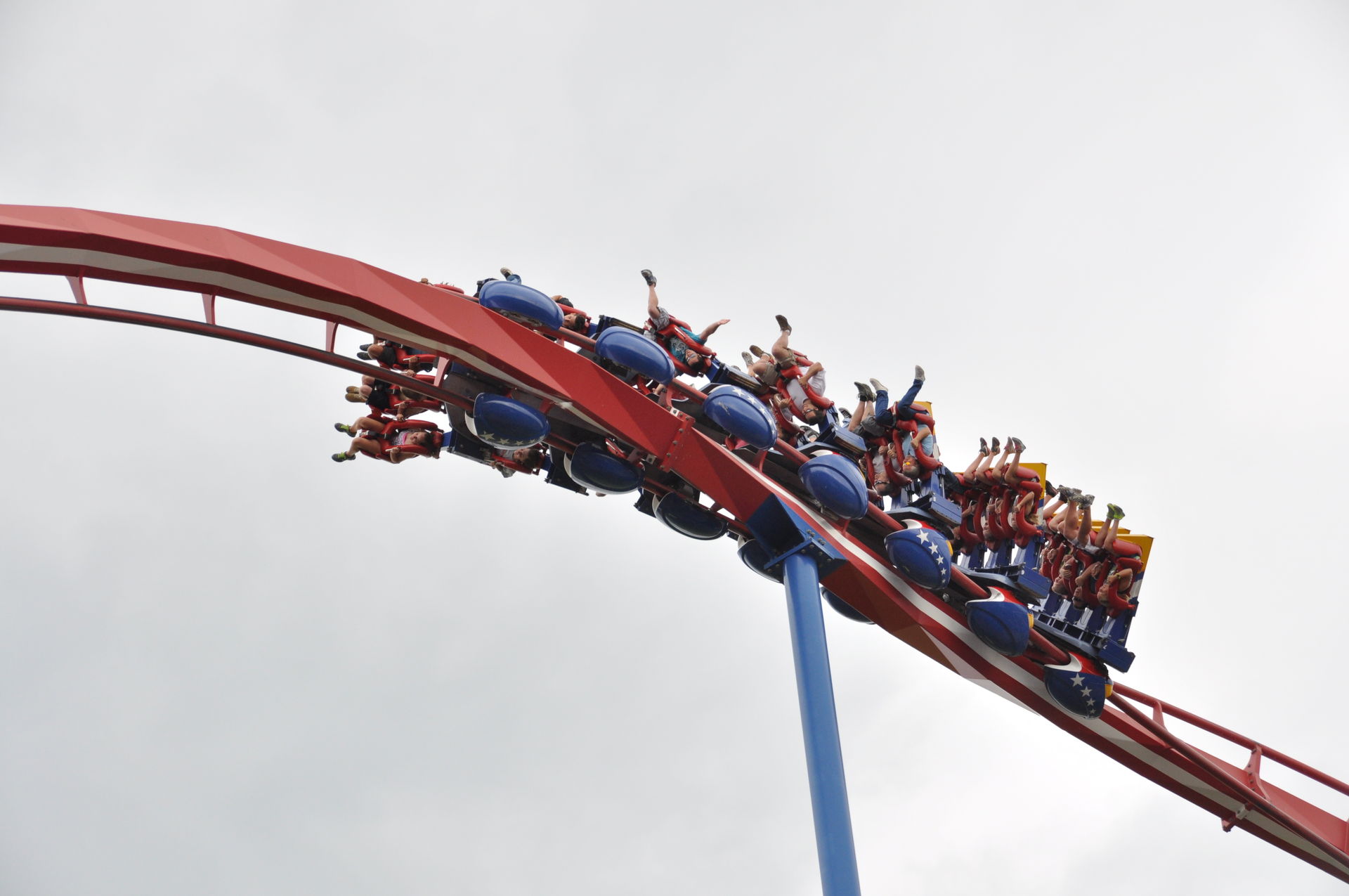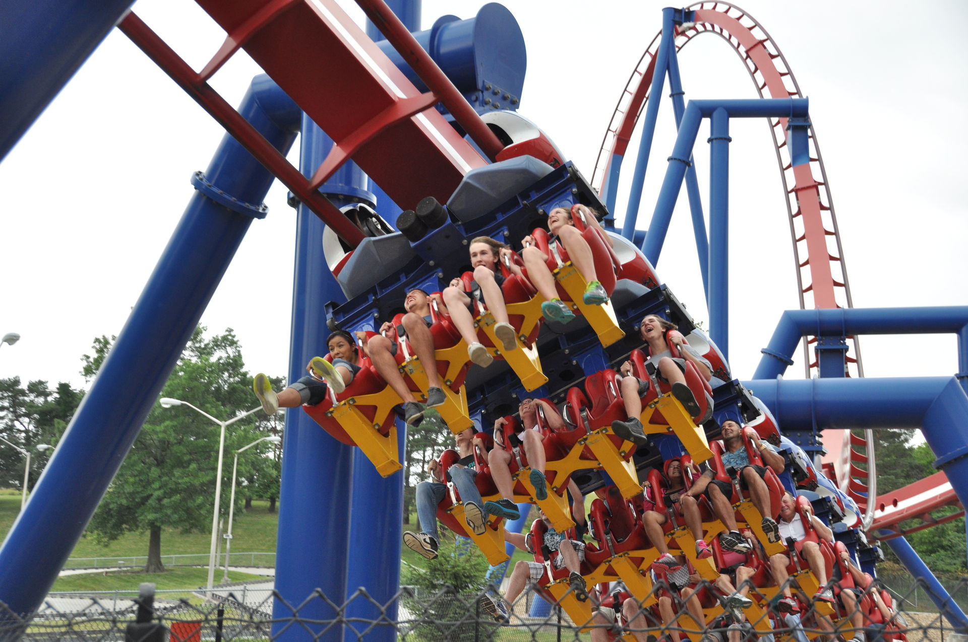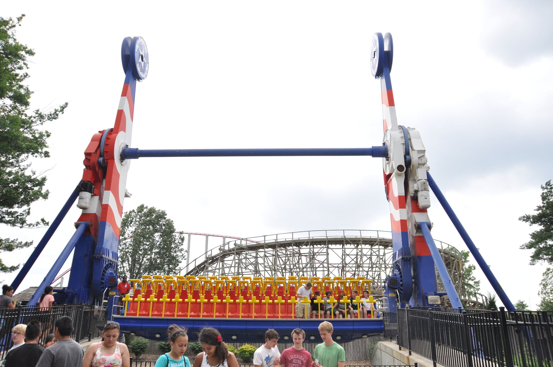 Patriot ist zwar nicht die neueste Bahn im Park, aber sicherlich noch die populärste, und der in den Farben der amerikanischen Stars & Stripes gestrichenen Bahn ist noch immer der Hauptanziehungspunkt im Park.