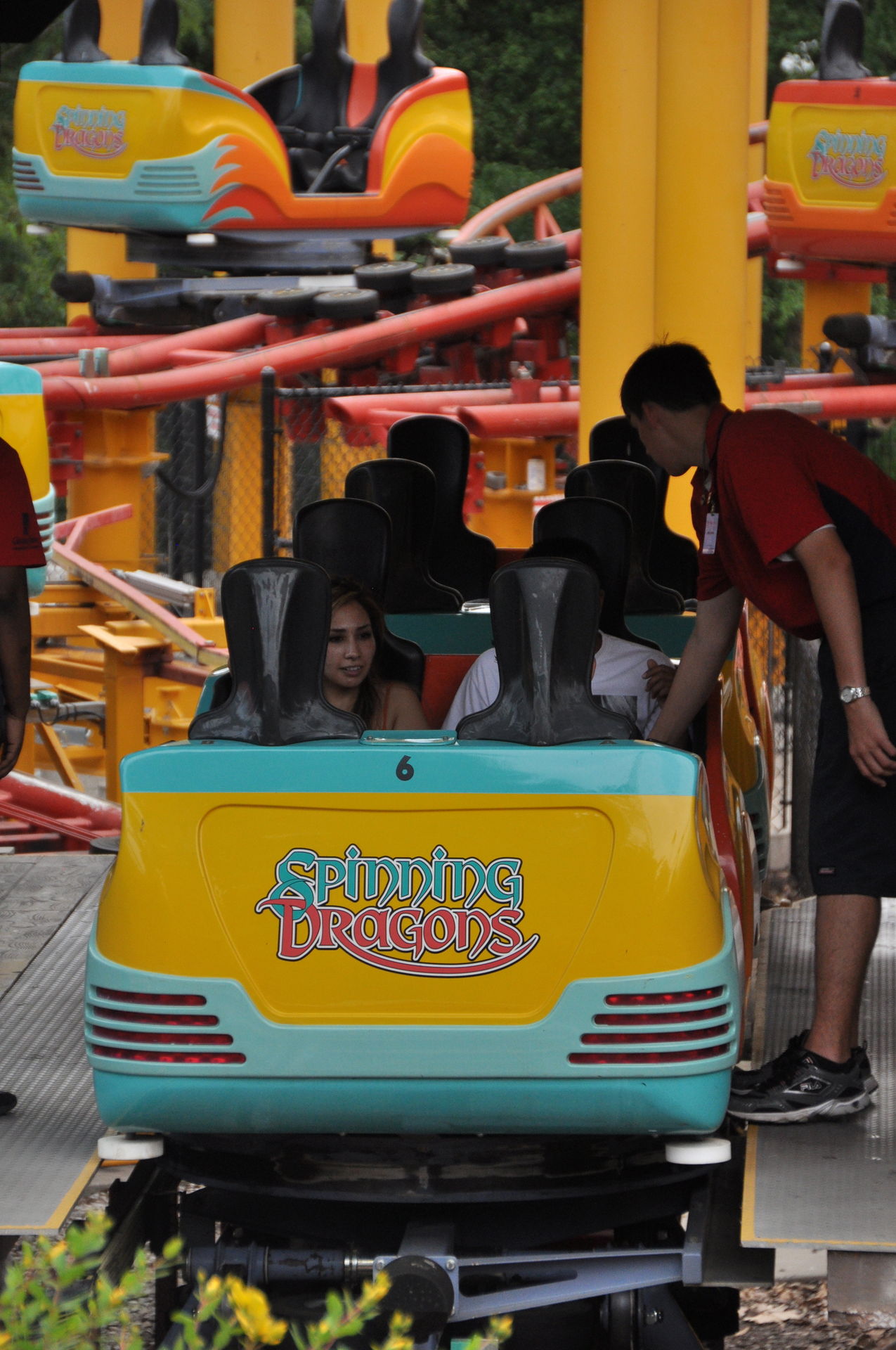 Die Spinning Dragons bieten einen ähnliches Layout wie die gesammelten Pandemoniums in diversen Six Flags-Parks. Die Fahrt selber bietet daher wenige überraschende Momente für uns. Allerdings war die Spinning-Intensität schon erwähnenswert.