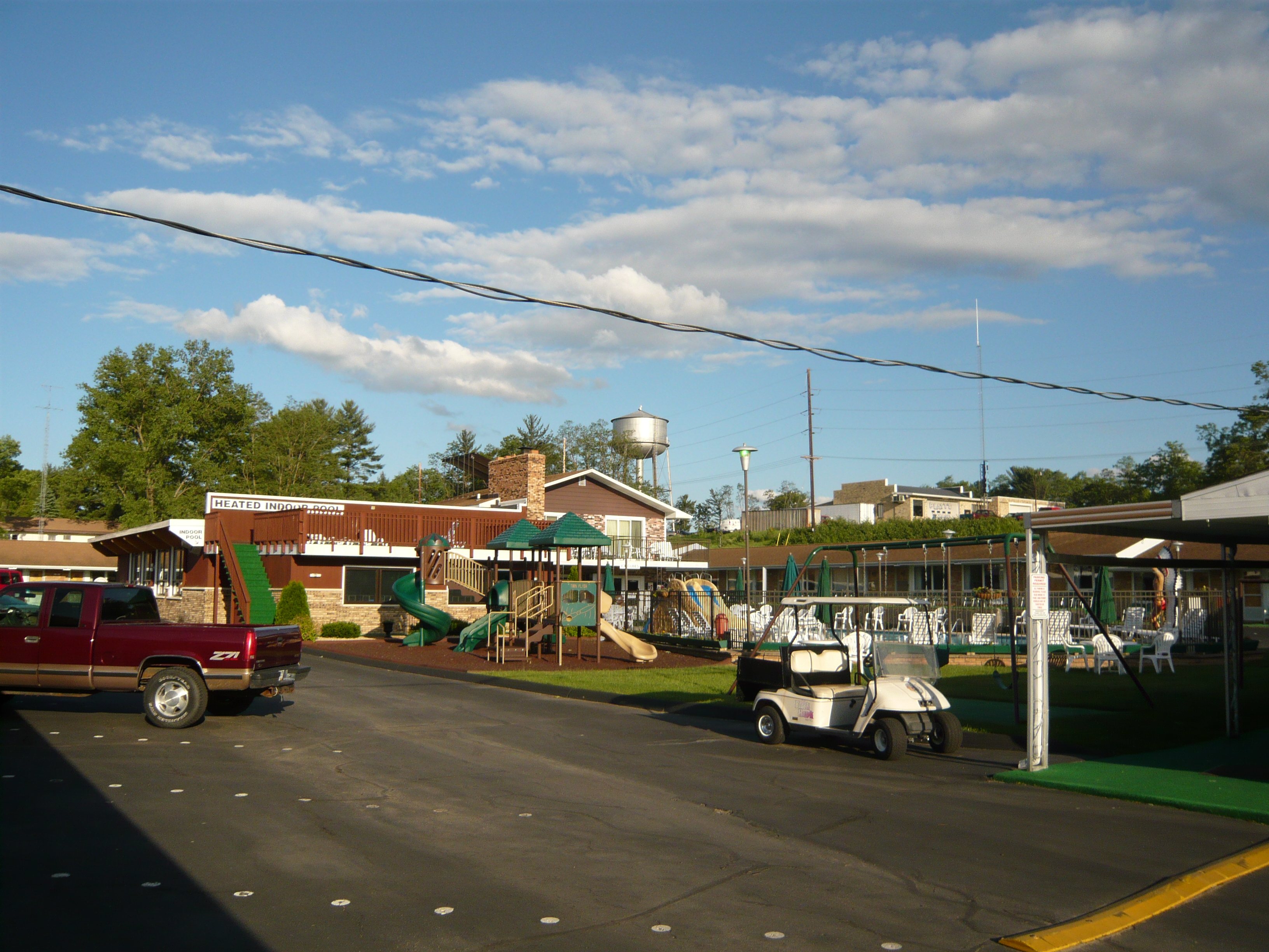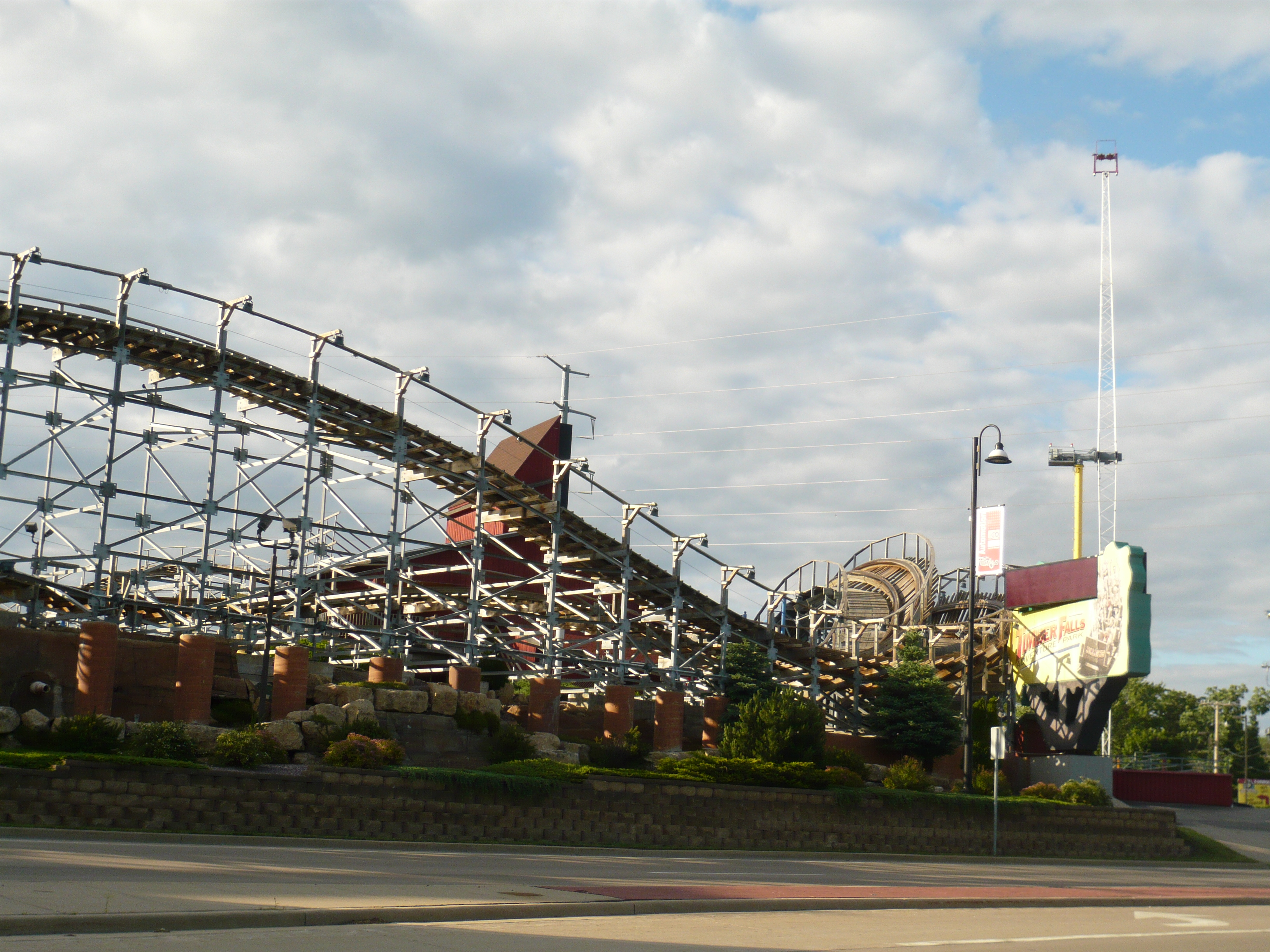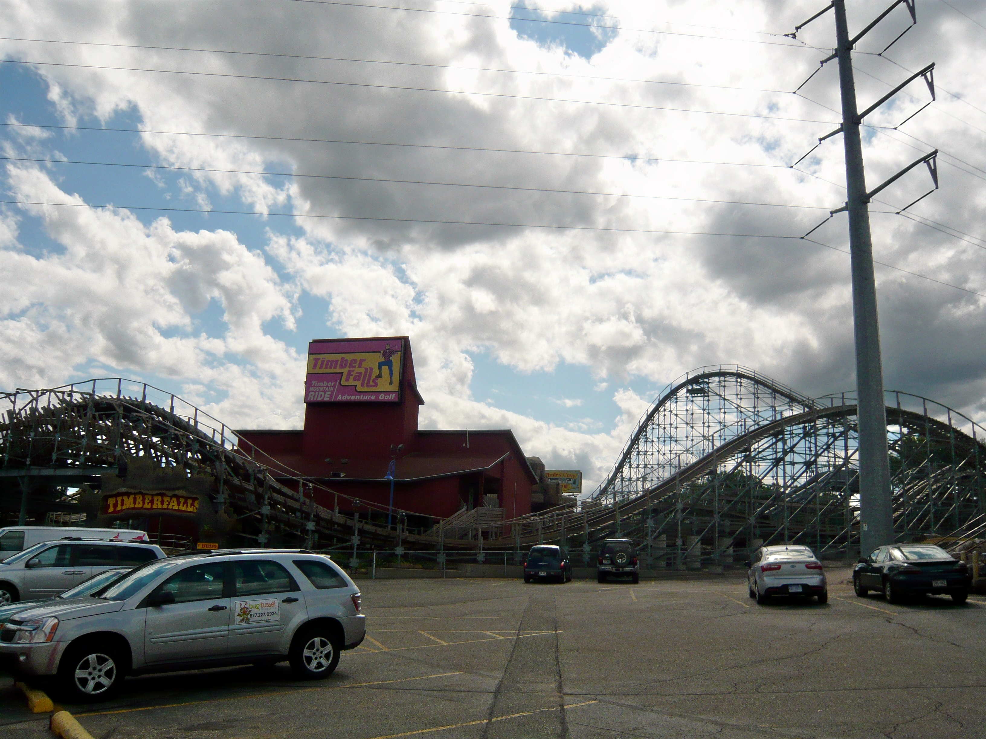 Nach meinem kundenservicemässig lieb ausgedrückt ernüchternden, coastertechnisch aber fantastischen Besuch in Mt. Olympus begab ich mich ans Nordende des Wisconsin Dells Parkways und bog Richtung Downtown ab. Dort checkte ich in das tolle Black Hawk Motel ein, schnappte mir einen Coupon aus der Begrüssungsbroschüre und fuhr dann sogleich wieder zurück in die Richtung, aus der ich eben hergekommen bin - dort thront nämlich der Timber Falls Adventure Park samt Geheimtipp-Woodie auf einem Hügel!