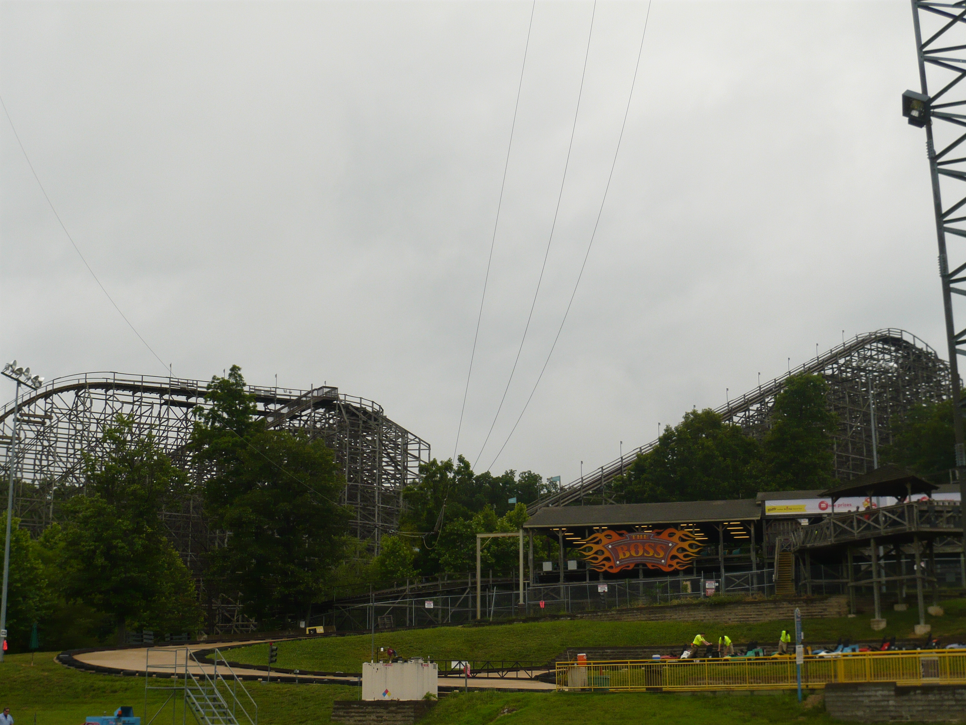 Danach wollten wir eigentlich zu Pandemonium, dieses hatte aber noch geschlossen. So sind wir dann weiter zu einem von insgesamt drei Woodies im Park, zur Achterbahn mit der wohl längsten nicht abkürzbaren Warteschlange der Welt - The Boss!