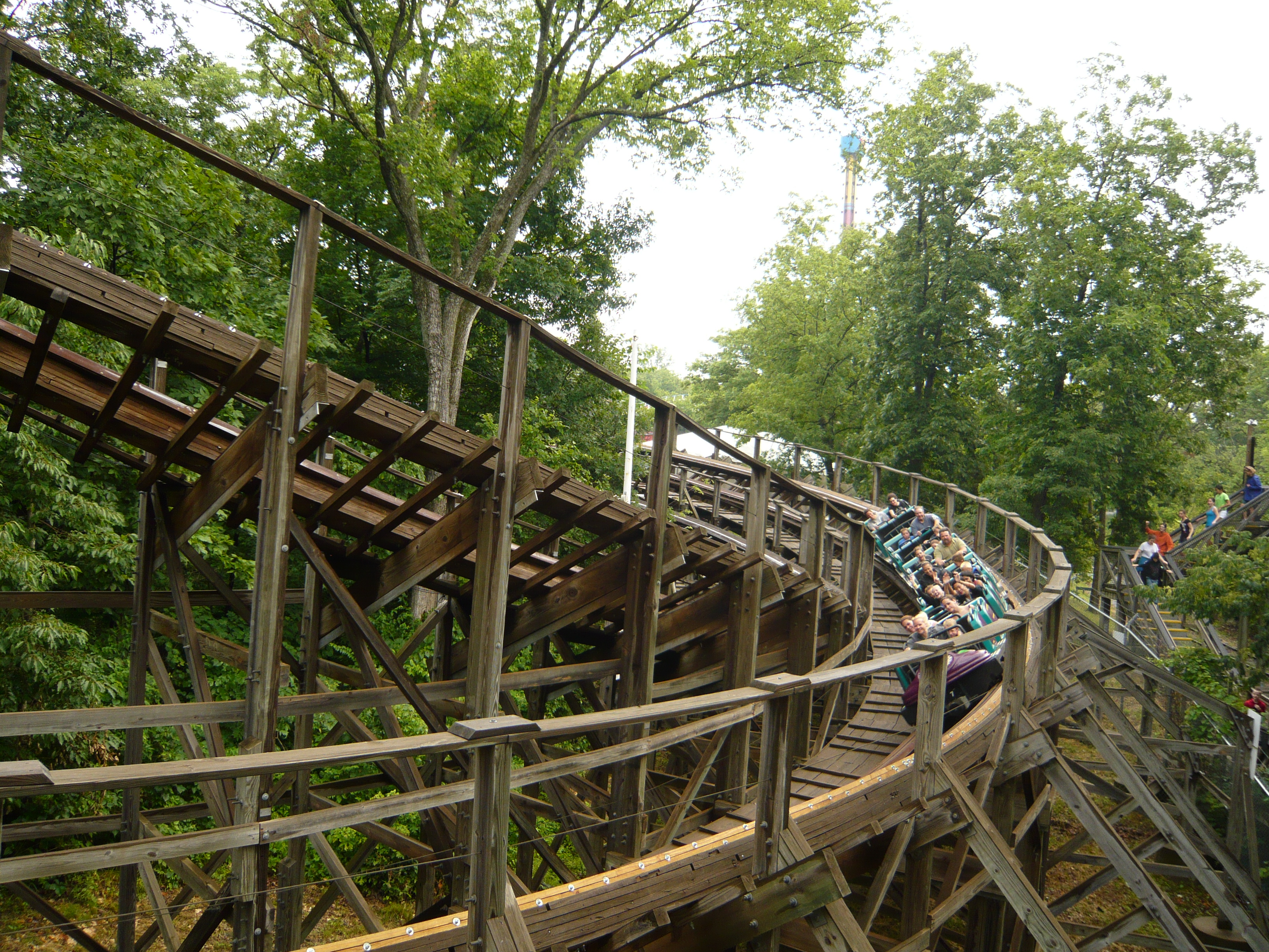 Airtime auf den genialen, unterschiedlich hohen Hügeln! Besonders die Abfahrt nach der Kehrtwende auf halber Strecke hat uns unglaublich schön aus den Sitzen gerissen! Ein absolut grandioser Klassiker mit genau richtigem Woodie-Fahrfeeling - für mich sogar die beste der drei Holzachterbahnen im Park!