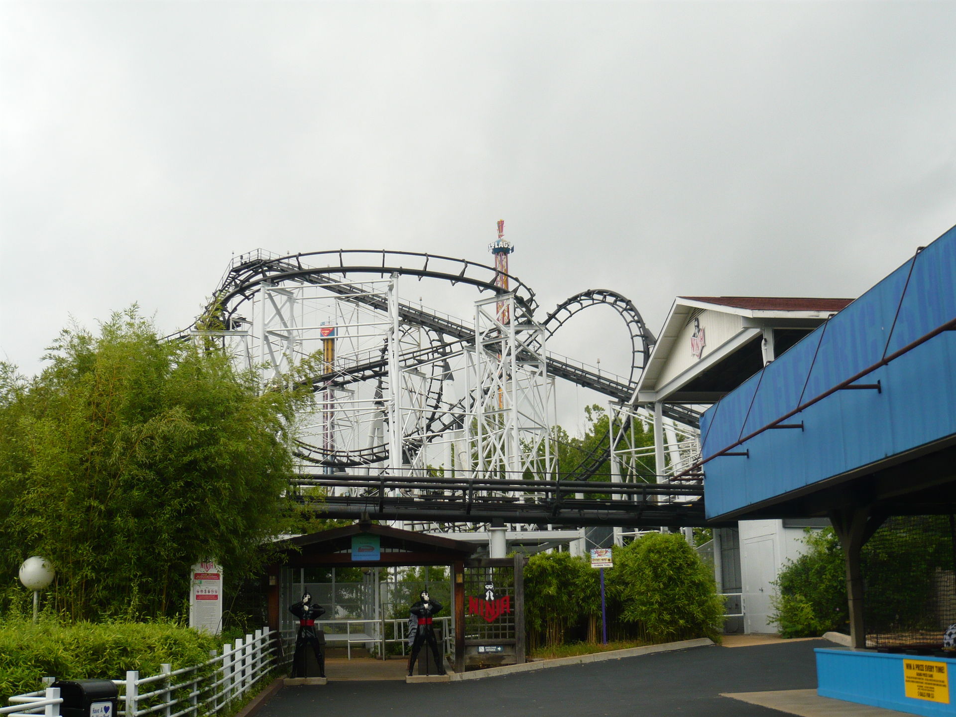 Weiter ging es zum etwas darunter liegenden Arrow Multilooper Ninja, der laut Wikipedia an der ehemaligen Stelle der zweiten Minetrain-Hälfte aufgebaut wurde.