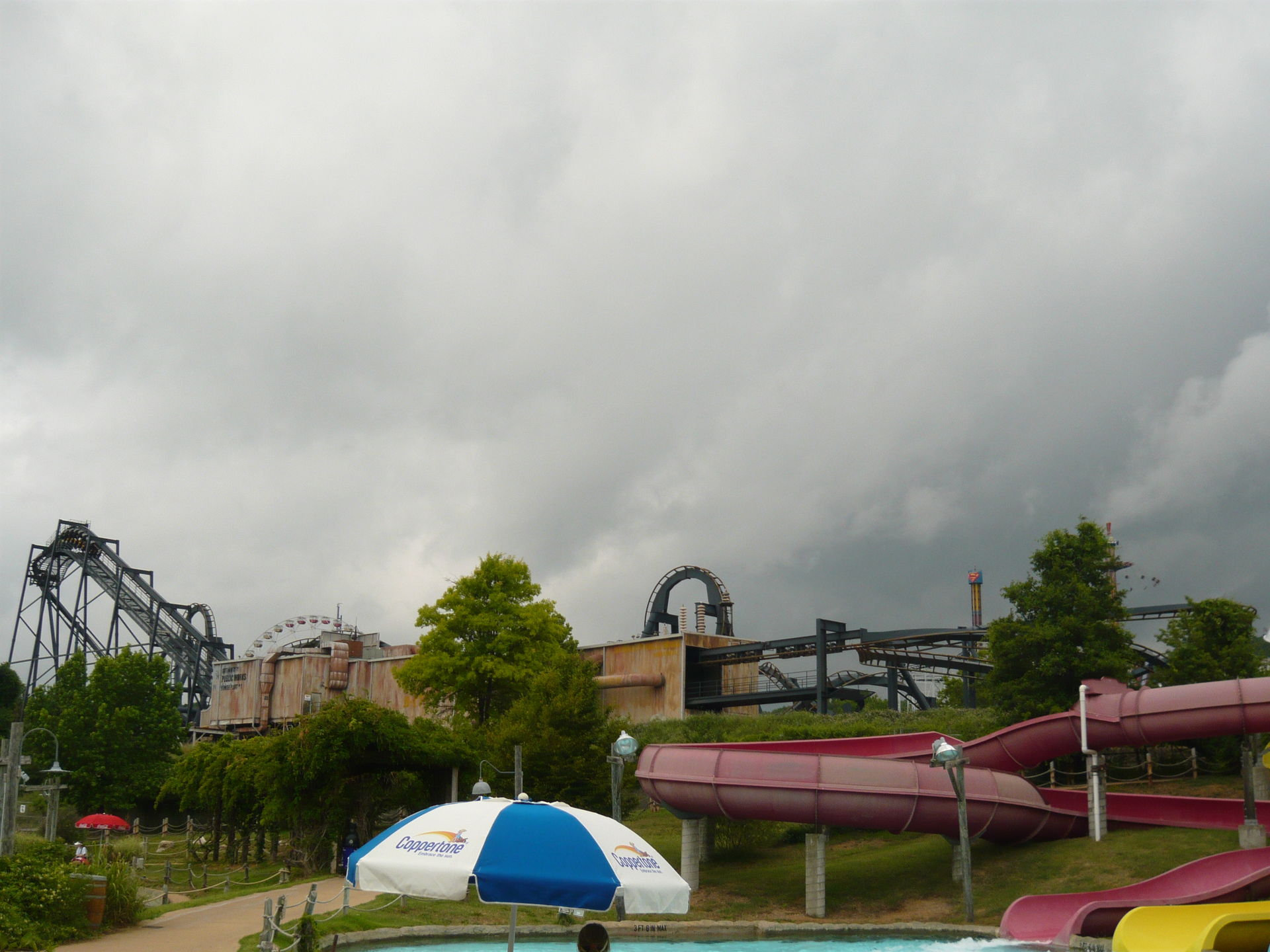 Durch den zugehörigen Wasserpark Hurricane Harbor, der selbst bei dem Wetter tatsächlich von 12.00 bis 15.00 Uhr auch noch aufgemacht hatte, bin ich ebenfalls noch rasch spaziert.