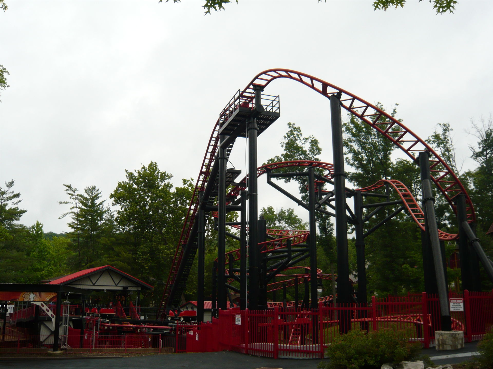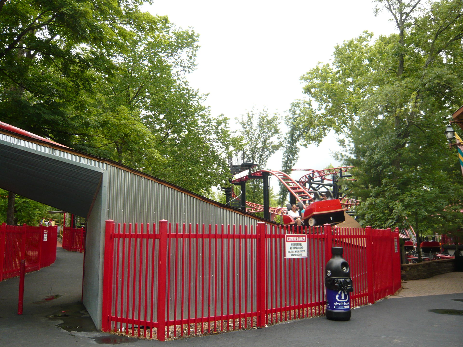 Man wird ohne zusätzlichen Gurt mit einem gemeinsamen Bügel für beide Passagiere gesichert, wodurch man sehr angenehm sitzt; wie bei vielen Minetrains müssen die Bügel an jedem Waggon jeweils manuell entriegelt werden. Die eigentliche Strecke ist dann überraschend lang, hat drei Lifthills und führt wunderschön verschlungen durch einen nicht einsehbaren Waldabschnitt mit vielen bodennahen Kurven und Kreiseln. Familienfreundlich und ein echter Plausch! Zum Abschluss gibt es ganz ähnlich wie beim Minetrain in Six Flags Over Georgia eine grössere Schussfahrt in einen Tunnel, worauf nach dem folgenden Anstieg dann gleich die Schlussbremse folgt. Offenbar war es günstigen Umständen zu verdanken, aber die Bahn war wirklich eine positive Überraschung! So haben wir dann gerne gleich noch eine zweite Fahrt gemacht.