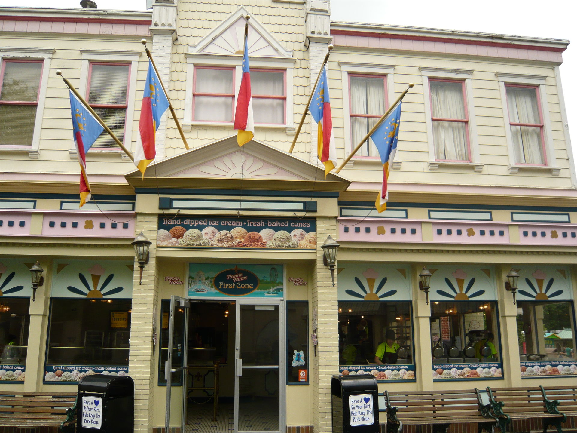 Diese Eisdiele ist ja mal fies! Durch den unglaublich verführerischen Duft der hier frisch aufgebackenen, handgemachten Hörnchen kann man gar nicht anders, als sich auch bei diesem miesen Wetter ein völlig überteuertes Glacé zu kaufen. Think: Waffelbäckerei im Europa-Park, beim Eingang zu Italien.