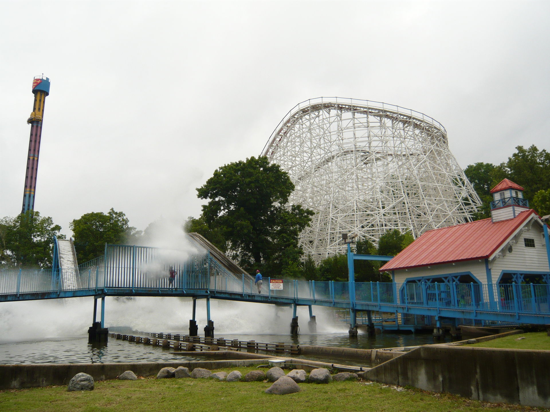 Spillwater Tidal Wave in der Nähe von Screamin' Eagle. Screamscape-Spekulationen zufolge wird die Bahn schon bald wegziehen und durch etwas anderes aus einem anderen Six Flags-Park ersetzt werden.