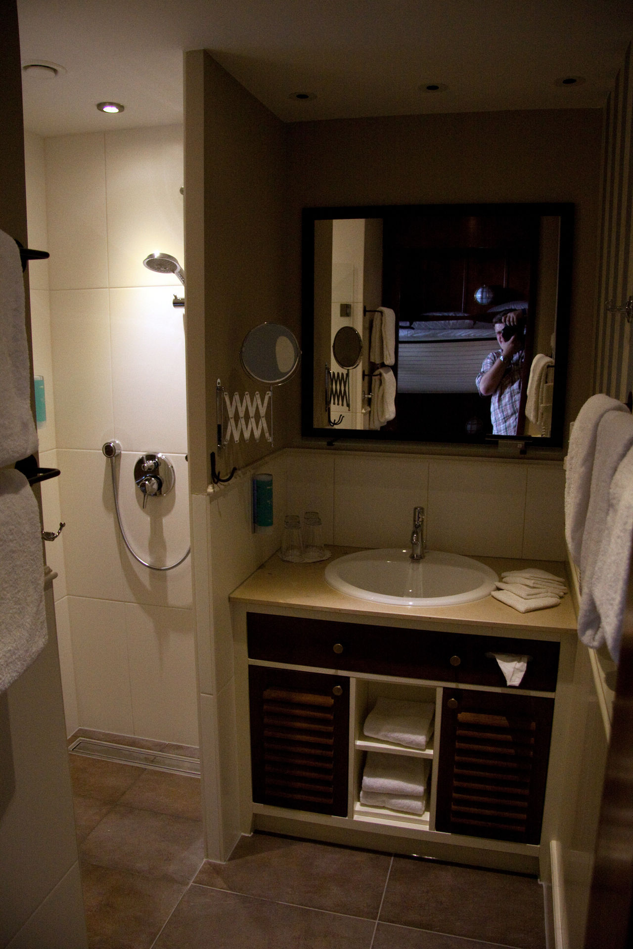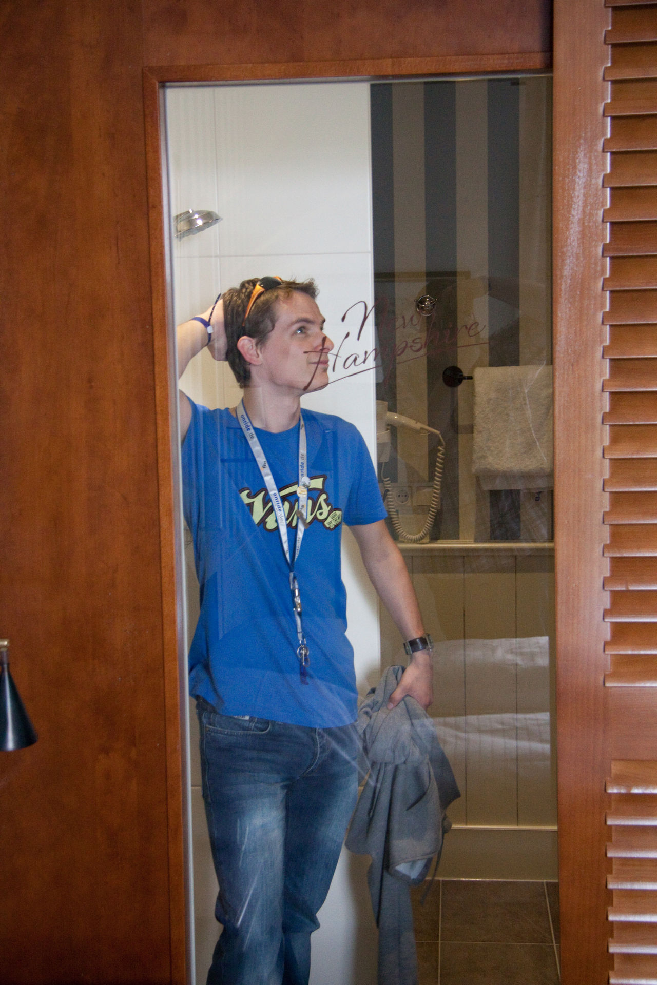 Burns in der Dusche. Ja man kann sie vom Doppelbett aus einsehen, wenn man nicht die Trennwand vor die Scheibe schiebt.