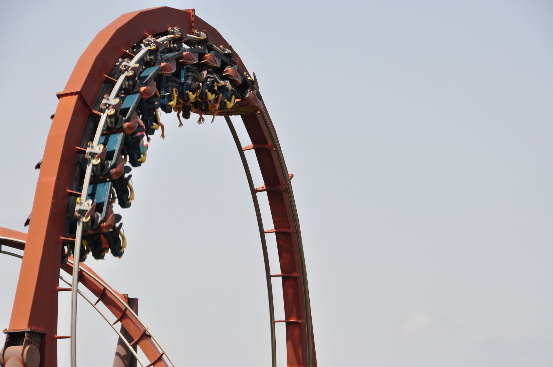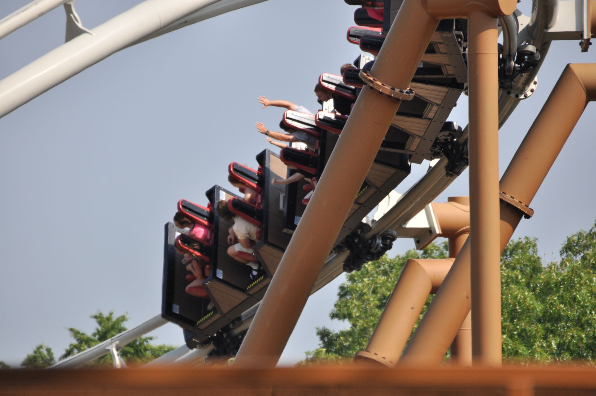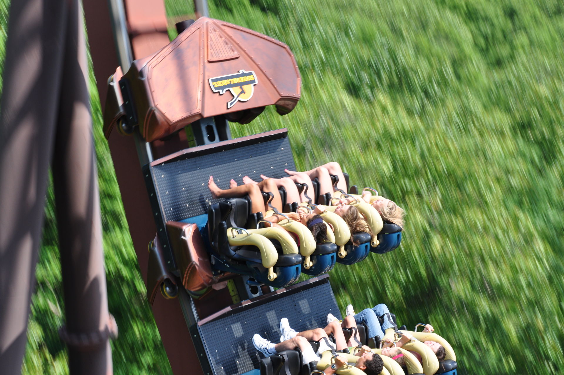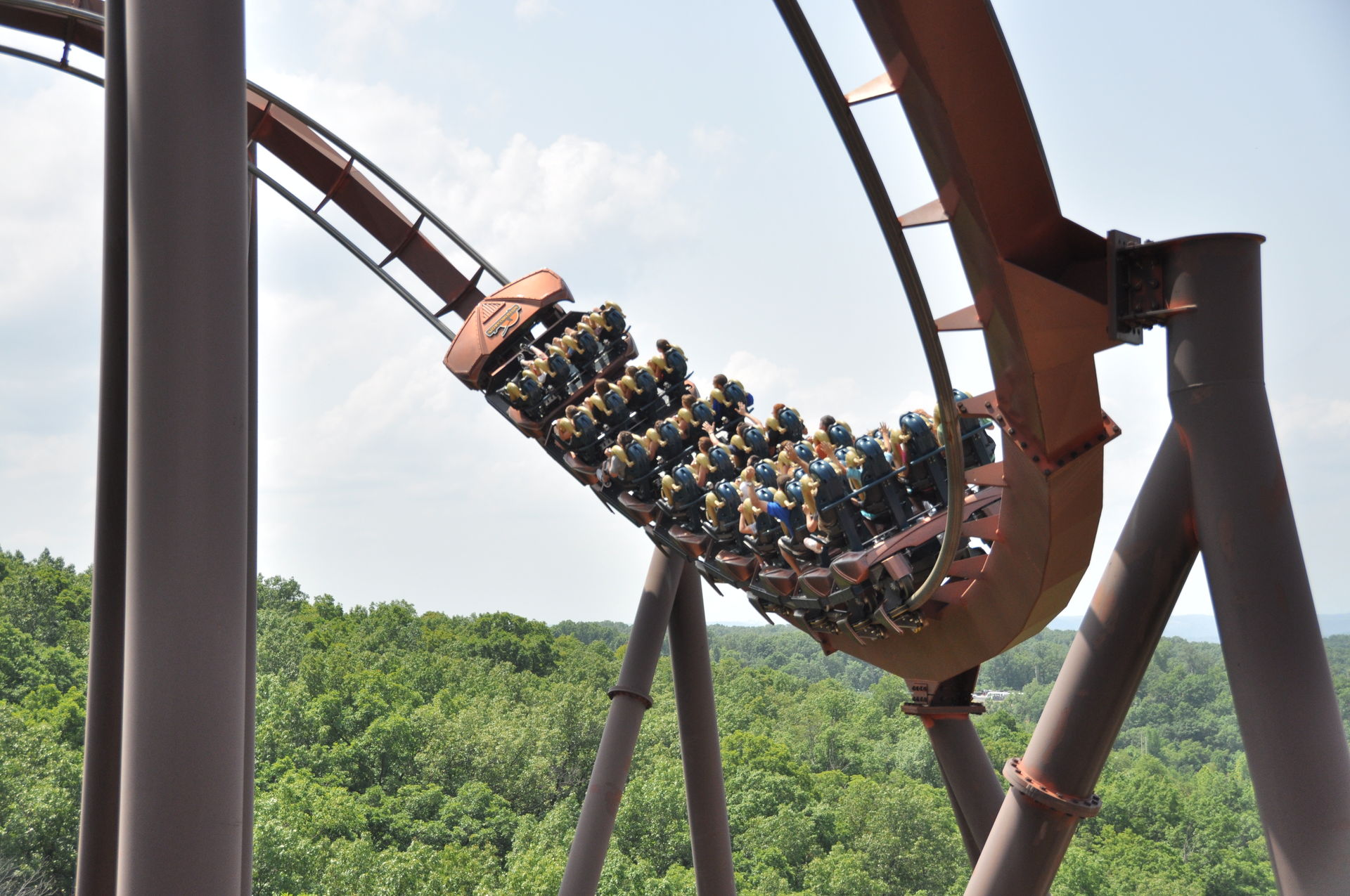 Cobra Roll. Letzteres befindet sich an der höchsten Stelle auf Augenhöhe mit der Aussichtsplattform, so dass auch die Chicken (diejenigen, die eine Fahrt nicht wagen) die Bahn genießen können.