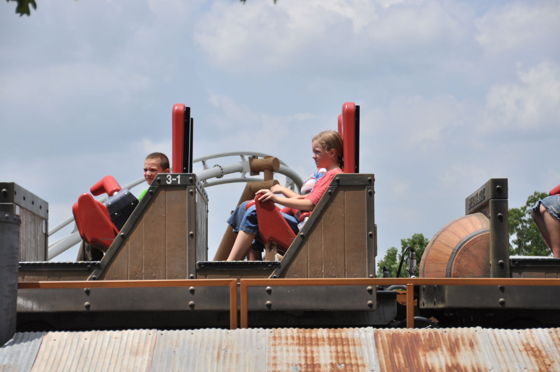 Eine Zeit lang waren die letzten 3 Wagen umgedreht worden, so dass man den abenteuerlichen Ritt auch rückwärts genießen konnte. Dies wurde leider wieder geändert.