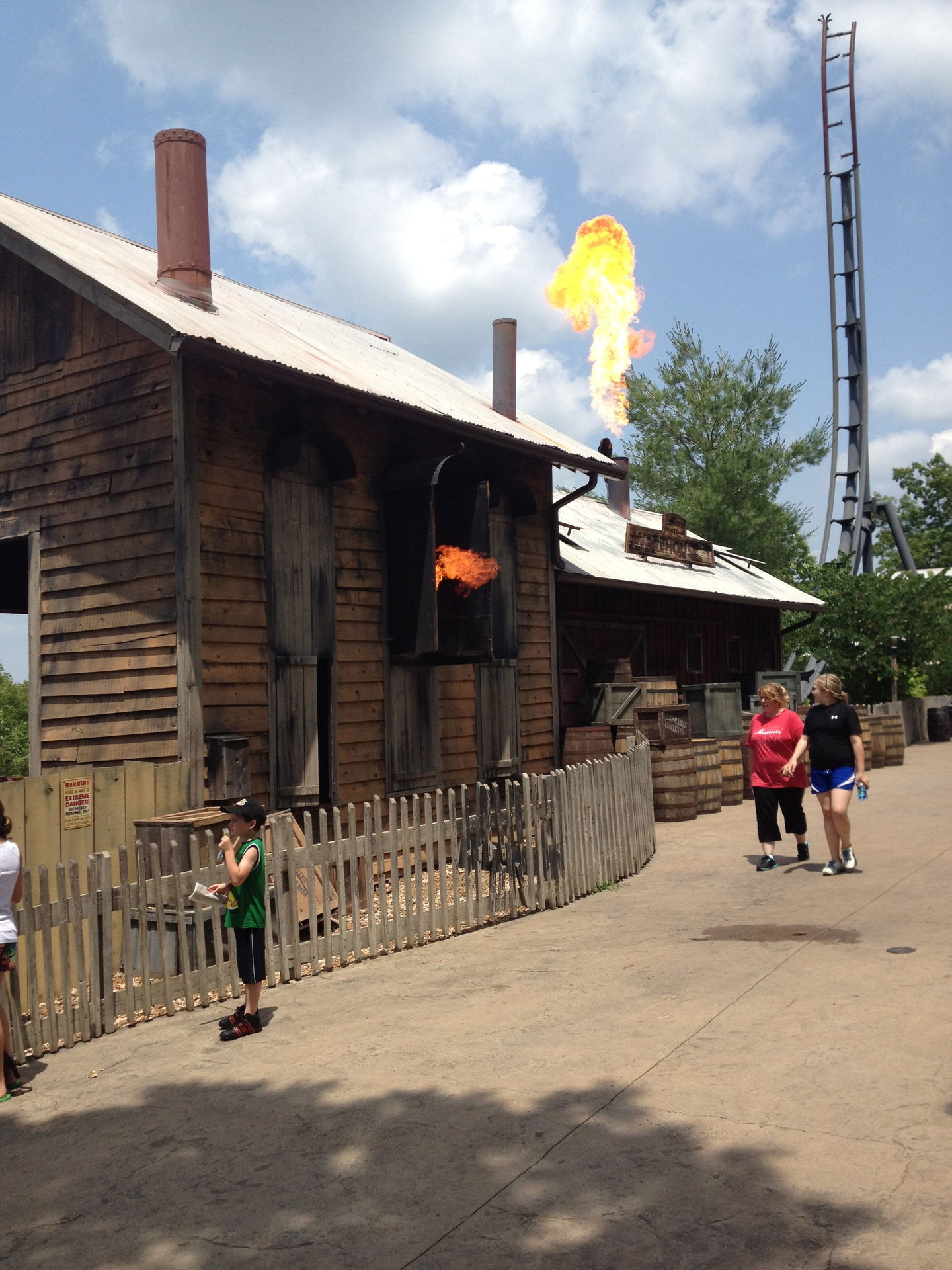 Wahrend des Launches steigen Feuersäulen aus dem Dach, die Fensterläden klappen unkontrolliert auf und zu, und auch die ein oder andere Wasserleitung innerhalb des Hauses übersteht die gewaltige Zerstörungskraft nicht und entladen sich aus den Fenstern genau in Richtung der Aussichtsplattform.