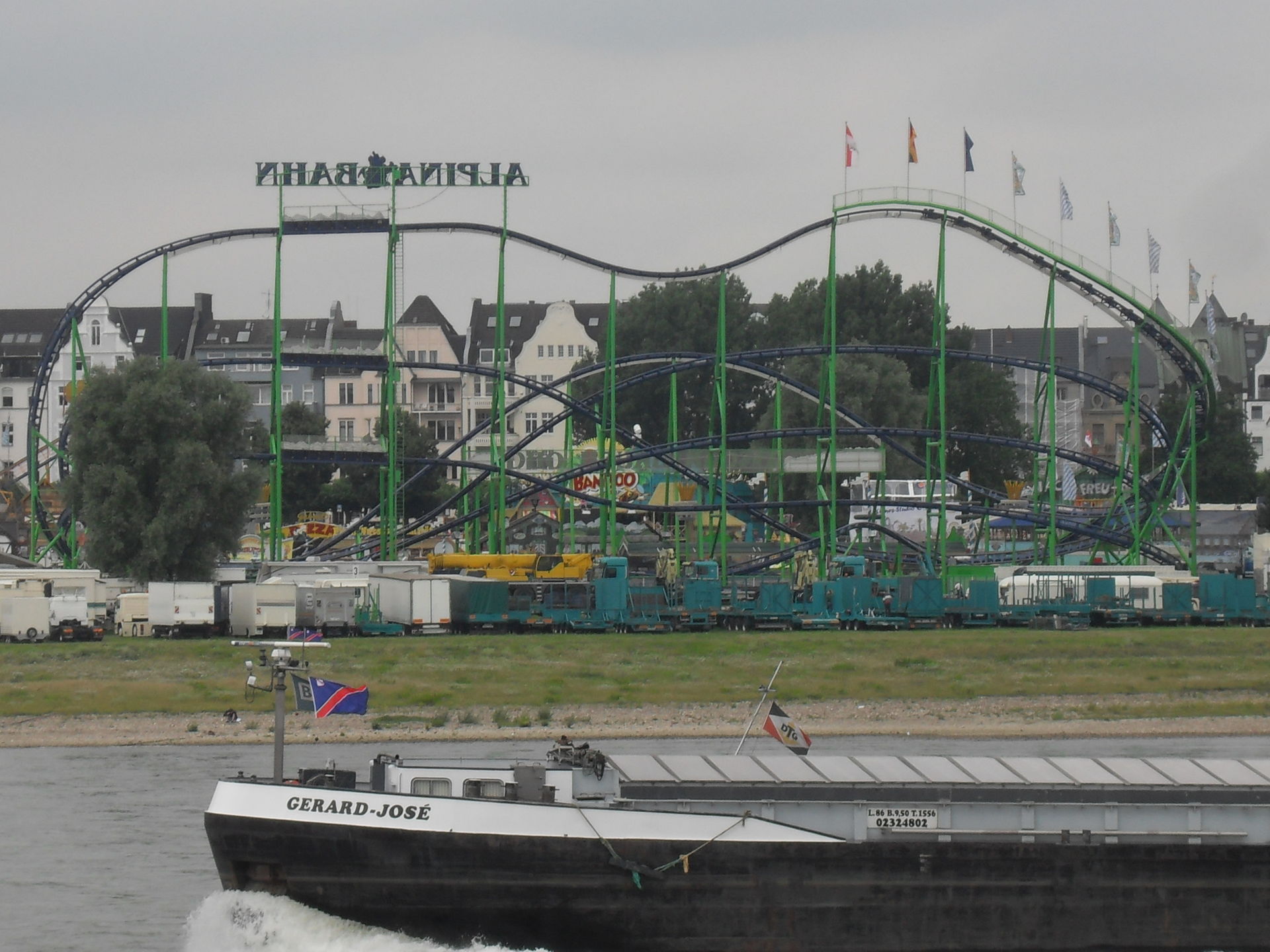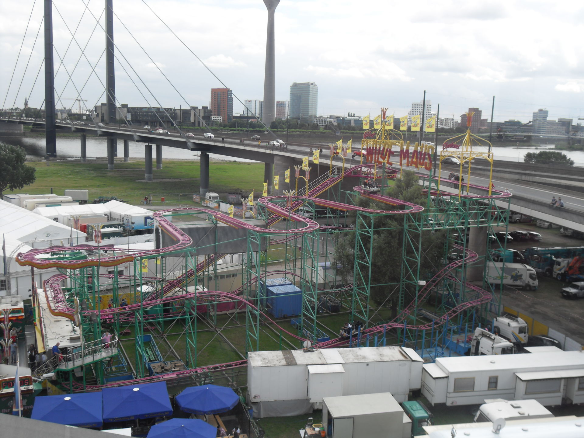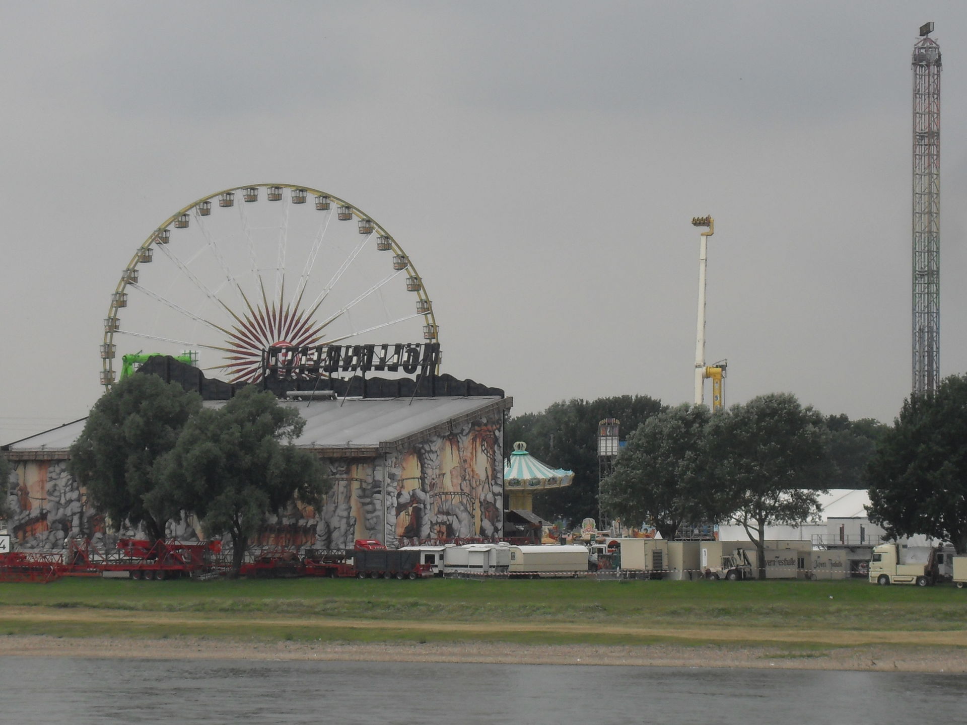 Erste Blicke über den Rhein auf die Kirmes während wir auf die Fähre warten