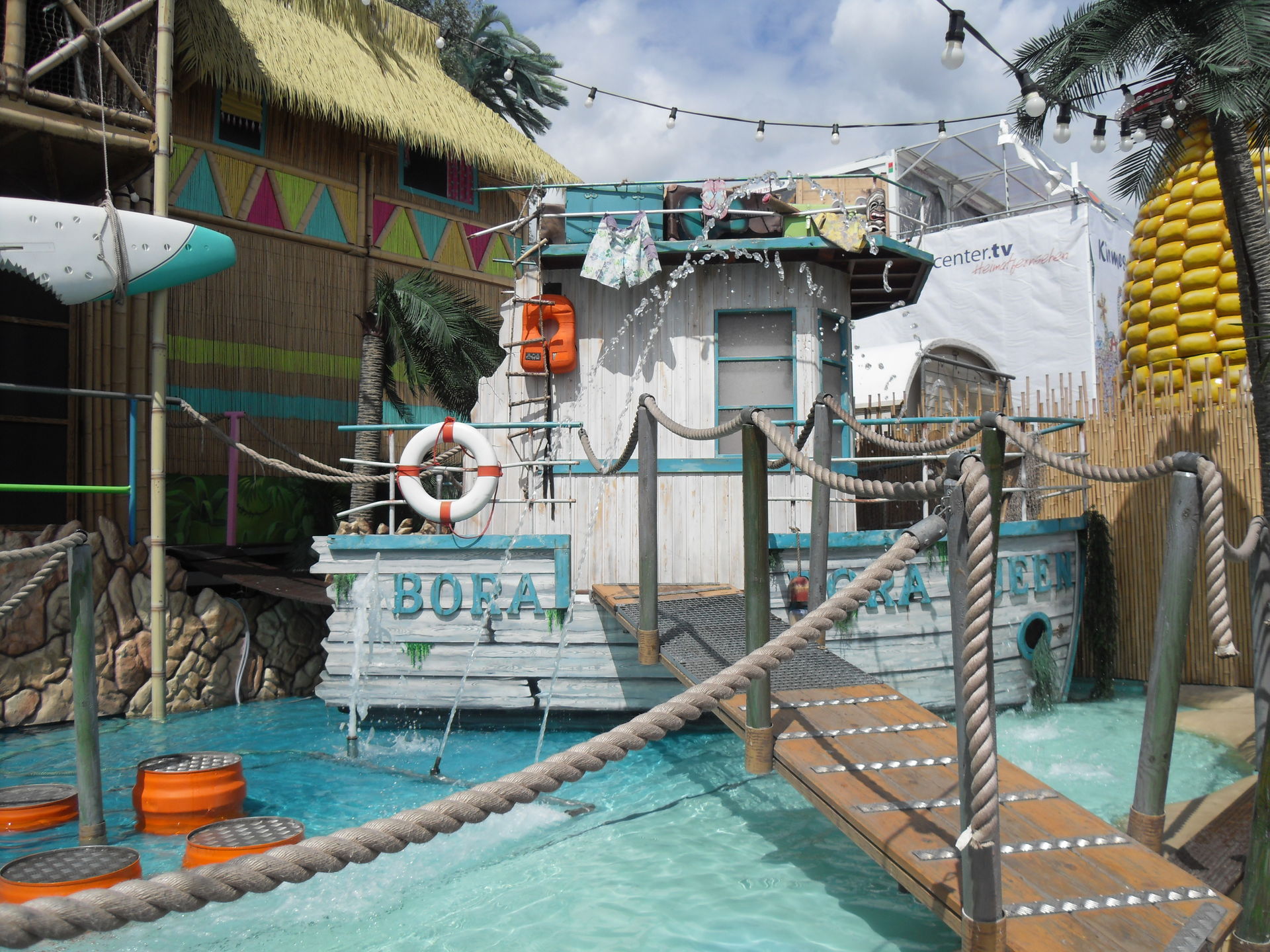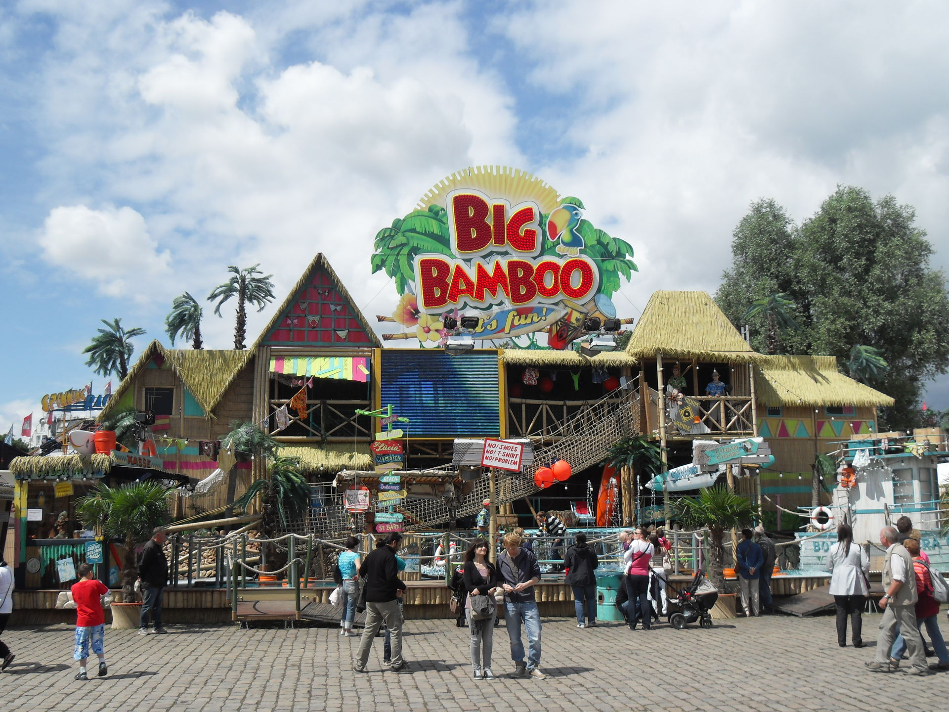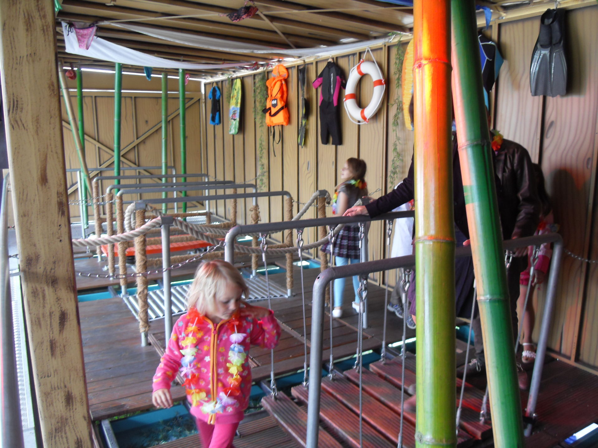 Als nächstes stand der gemeinsame Besuch des Laufgeschäftes "Big Bamboo" auf dem Plan. Es war mein erster Besuch im "Big Bamboo" und ich war schwer begeistert. Alleine schon der Außenaufbau ist ein echter Leckerbissen und wunderbar anzusehen. Man kann die Besucher bei einem Großteil des Hindernisparcours beobachten und hat schon als Zuschauer seinen Spaß. Gerade der Wasserparcour im Außenbereich hat es in sich, einstürzende Brücken, wackelnde Surfbretter und jede Menge ungewollte Begegnungen mit dem kühlen Nass sind vorprogrammiert. Und auch im Inneren bekommt der Besucher einiges geboten. "Big Bamboo" macht einfach nur tierischen Spaß und ist ein absolut tolles Laufgeschäft.
