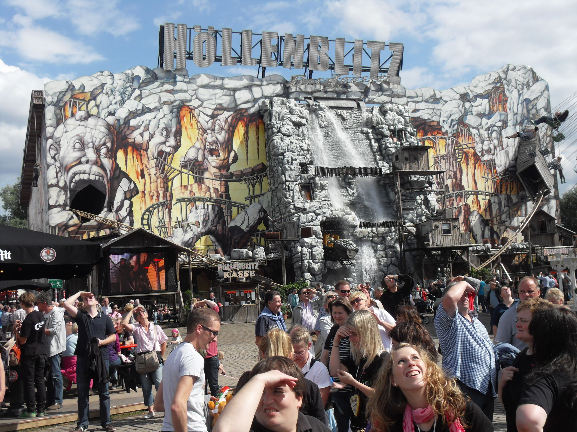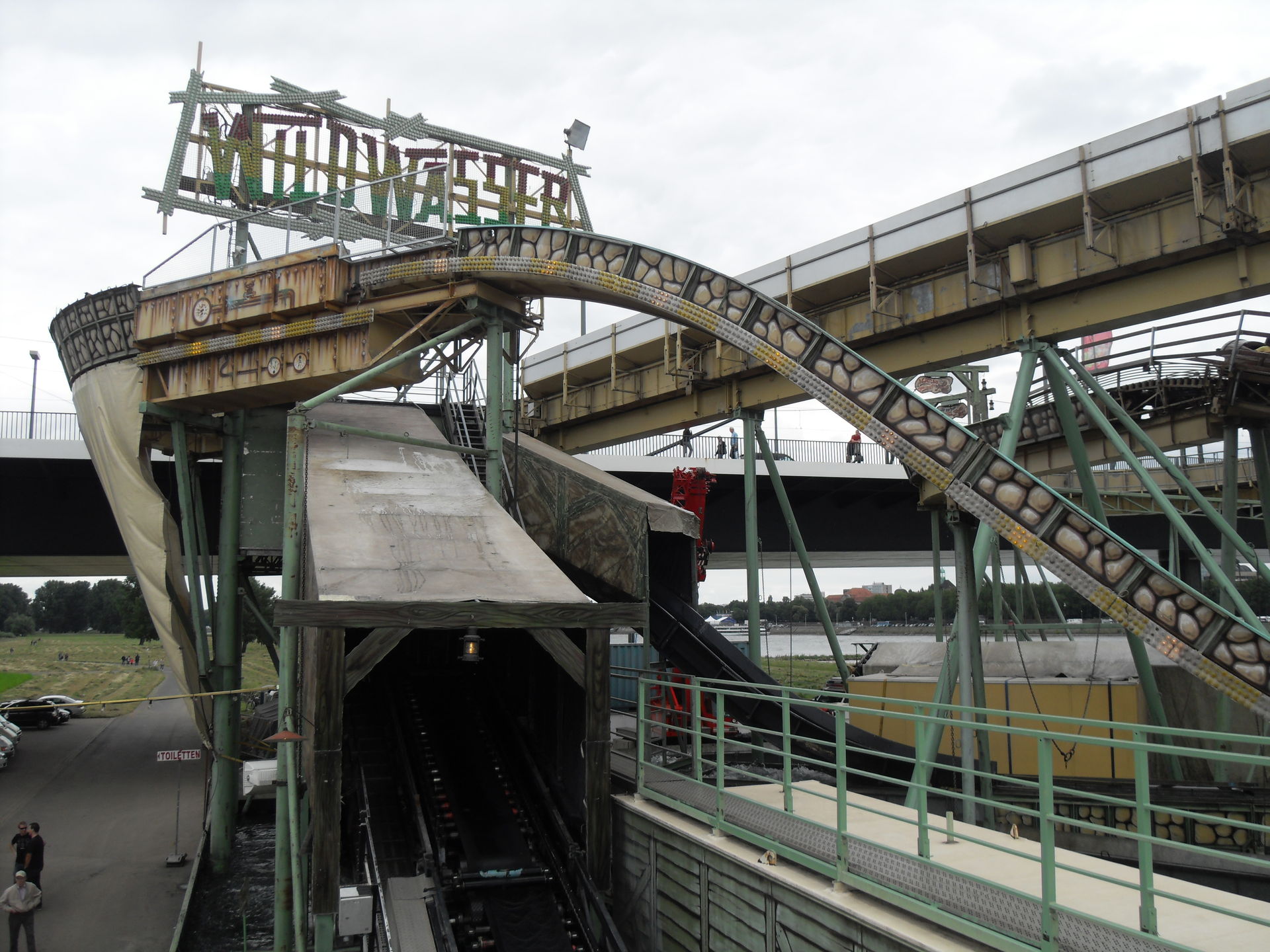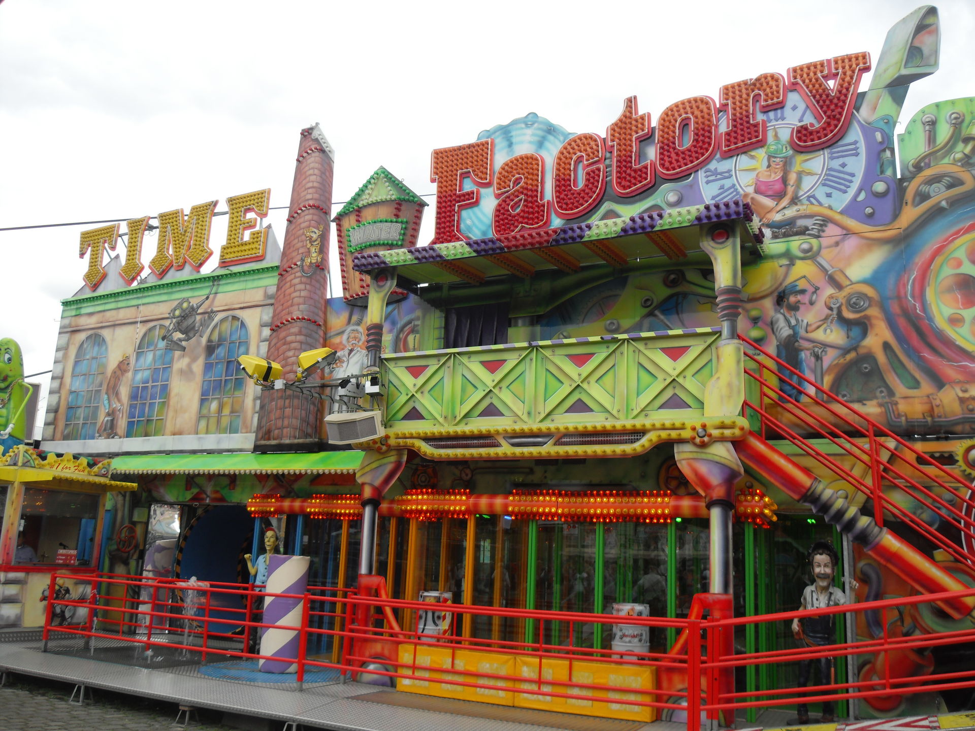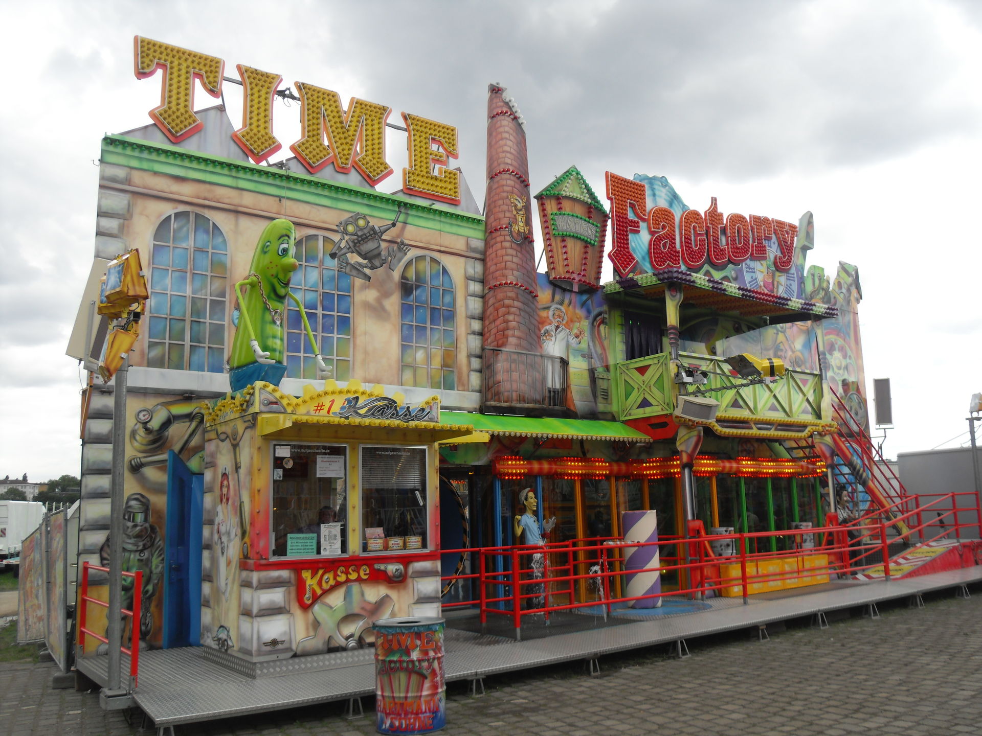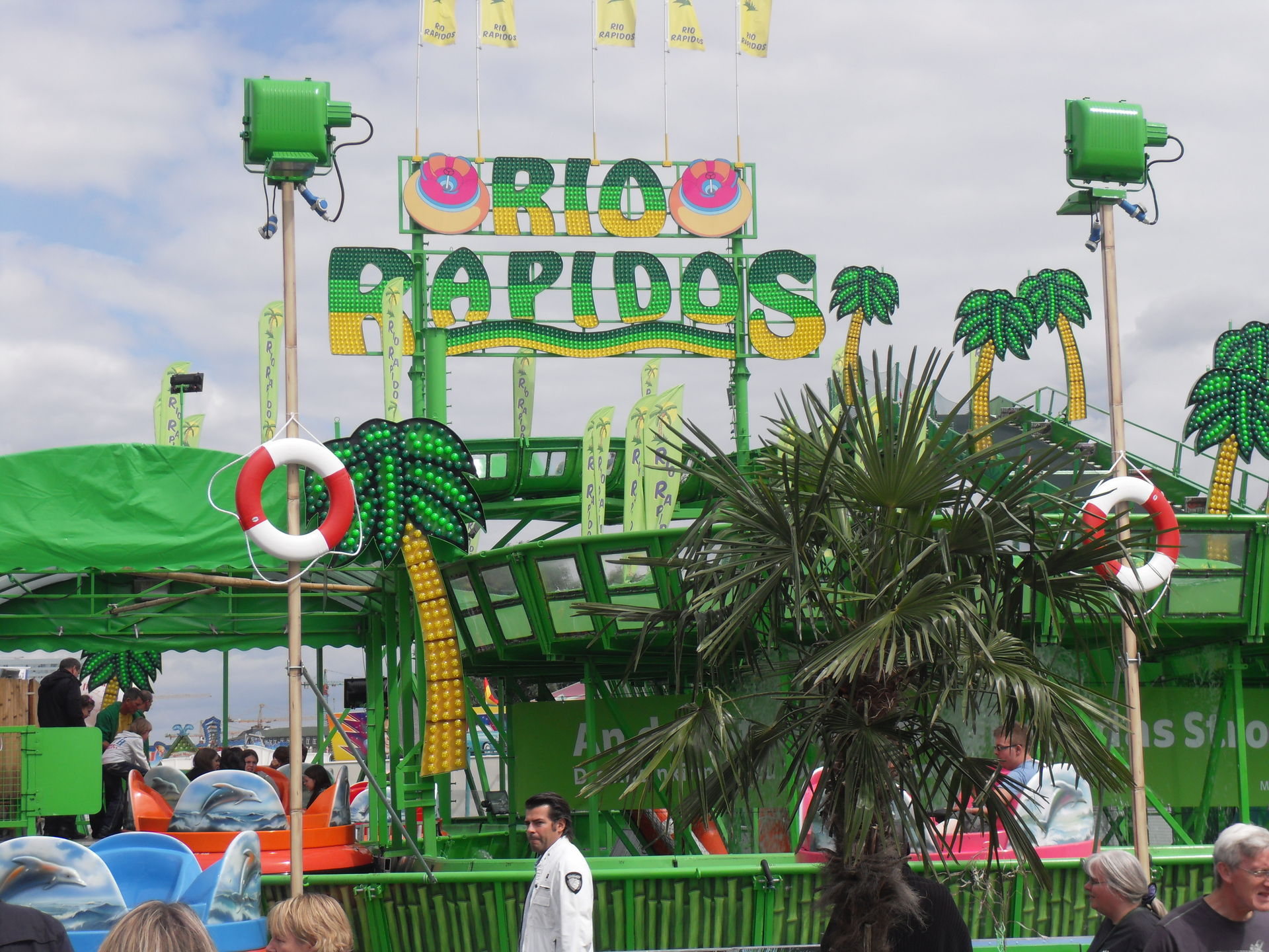 Mittlerweile hatten wir den ersten Wendepunkt, sprich das eine Ende der Kirmes erreicht und waren im Bereich der großen Wildwasserbahn angekommen mit der wir auch eine Runde gedreht haben. Außerdem stand hier als Fahrgeschäft der Skater und die beiden Laufgeschäfte Time Factory und Omni die wir allerdings nicht besuchten. Ersters nicht weil es einfach das Geld nicht wert ist und zweiteres kommt mir mittlerweile aus den Ohren raus.
