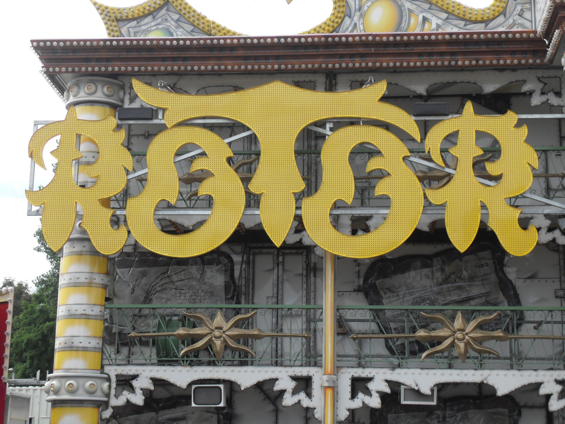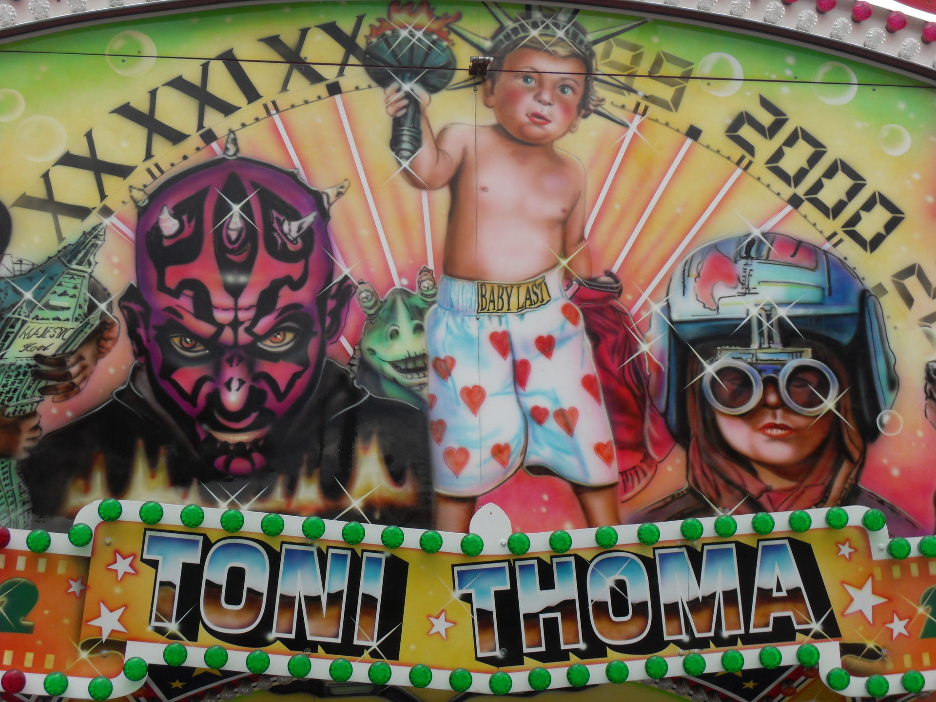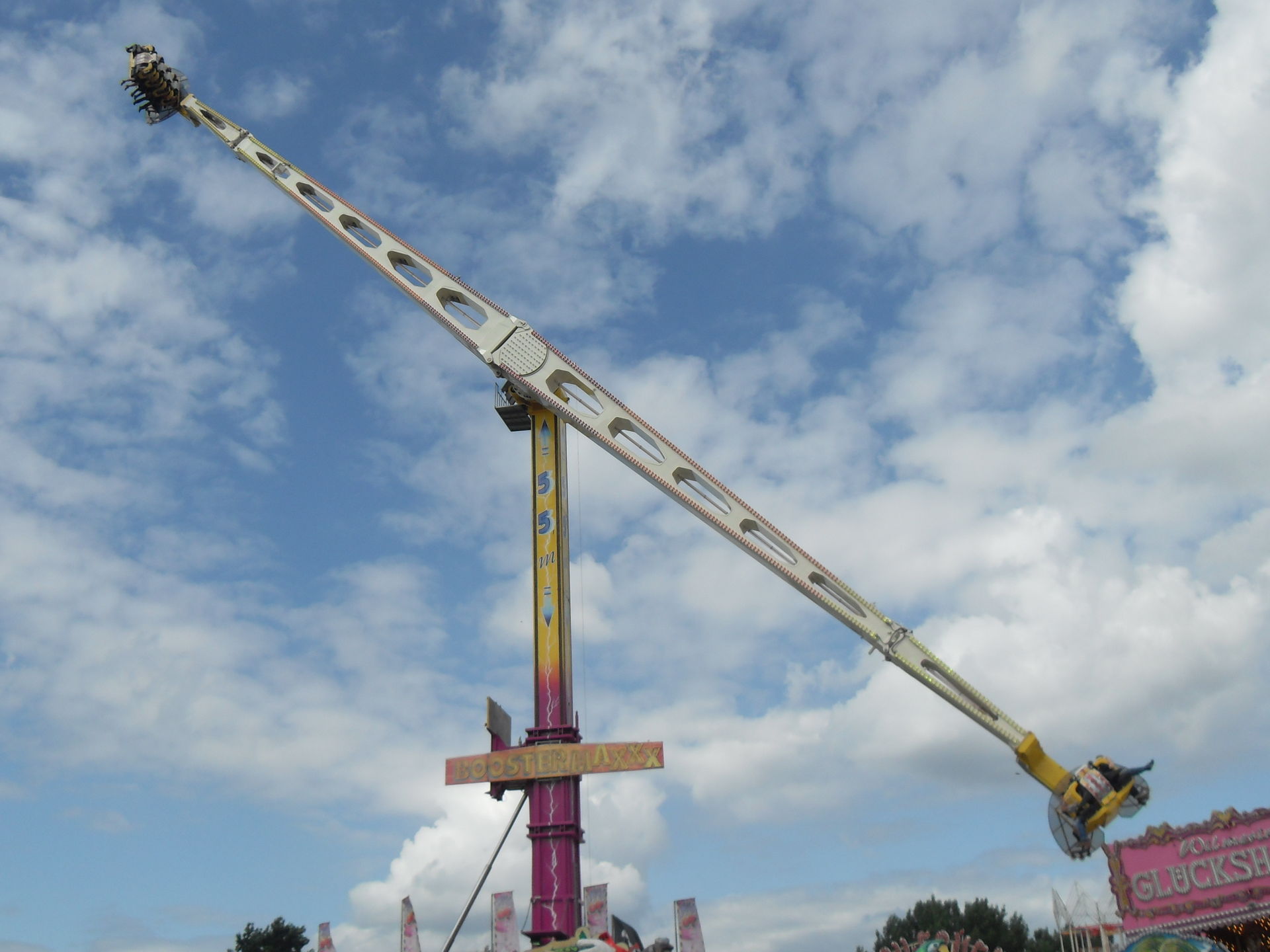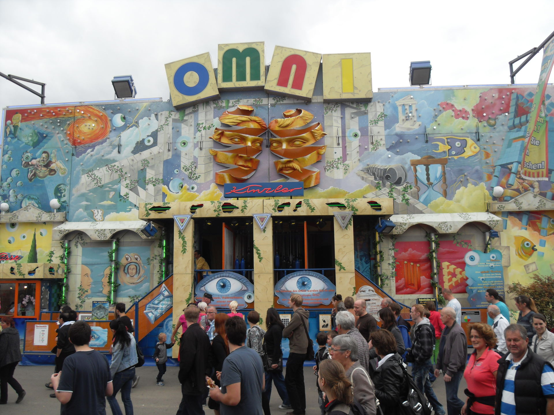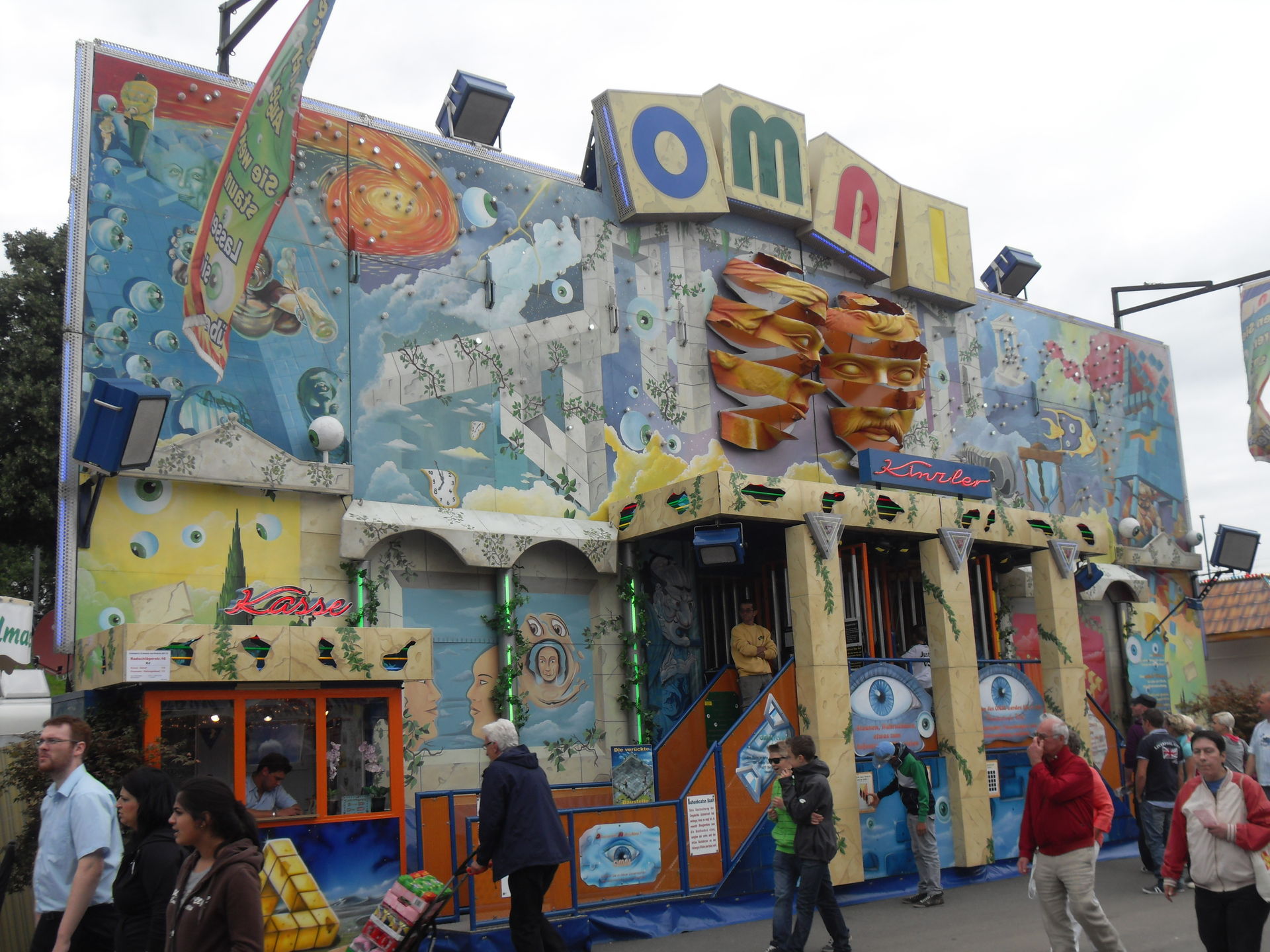 Kurz danach hatten wir auch schon das andere Ende der Kirmes erreicht. Hier im Bereich des Riesenrades, das natürlich auf Fortuna gepimpt war, traf man auf "Big Monster", auf den "Boostermaxx" und auf die interaktive Special Effekt Show "The Game". Ebenfalls war hier auch noch der Glasirrgarten "Kristall Palast" zu finden.