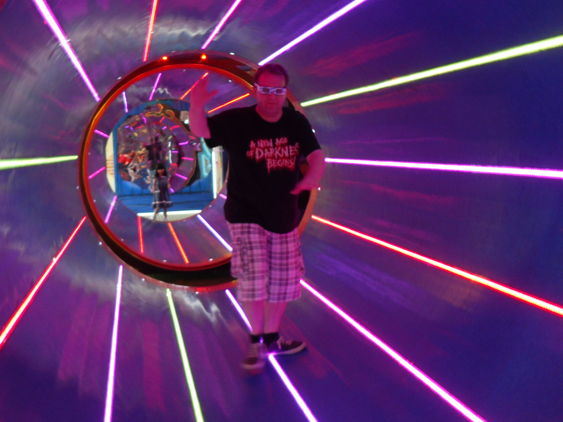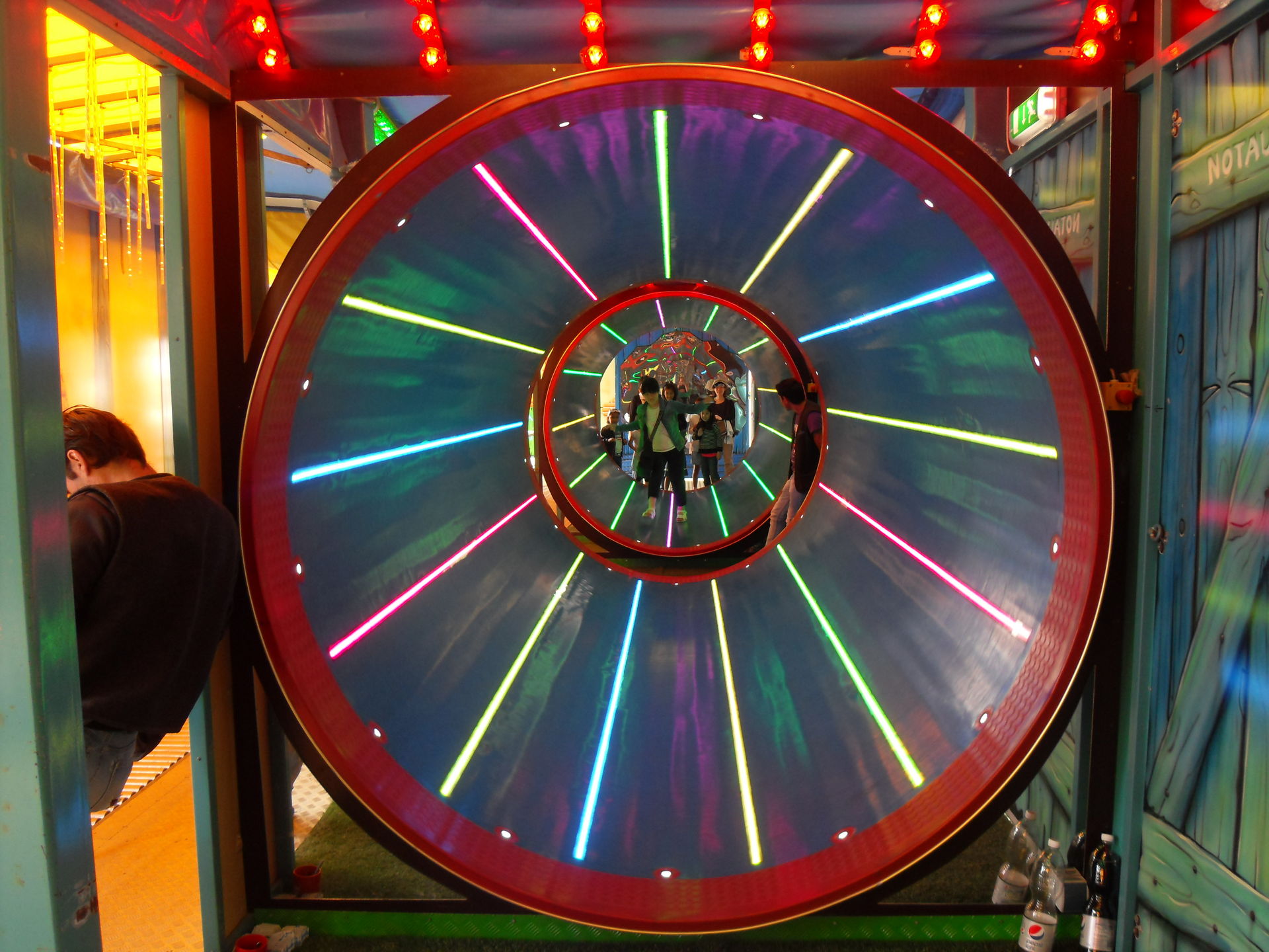 Total verwirrend-mit der Spezialbrille durch die drehenden Tonnen