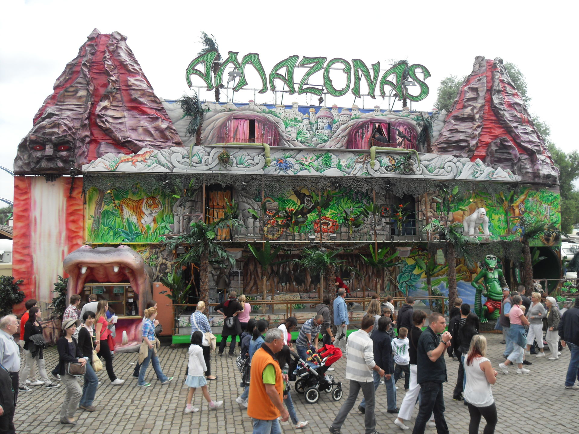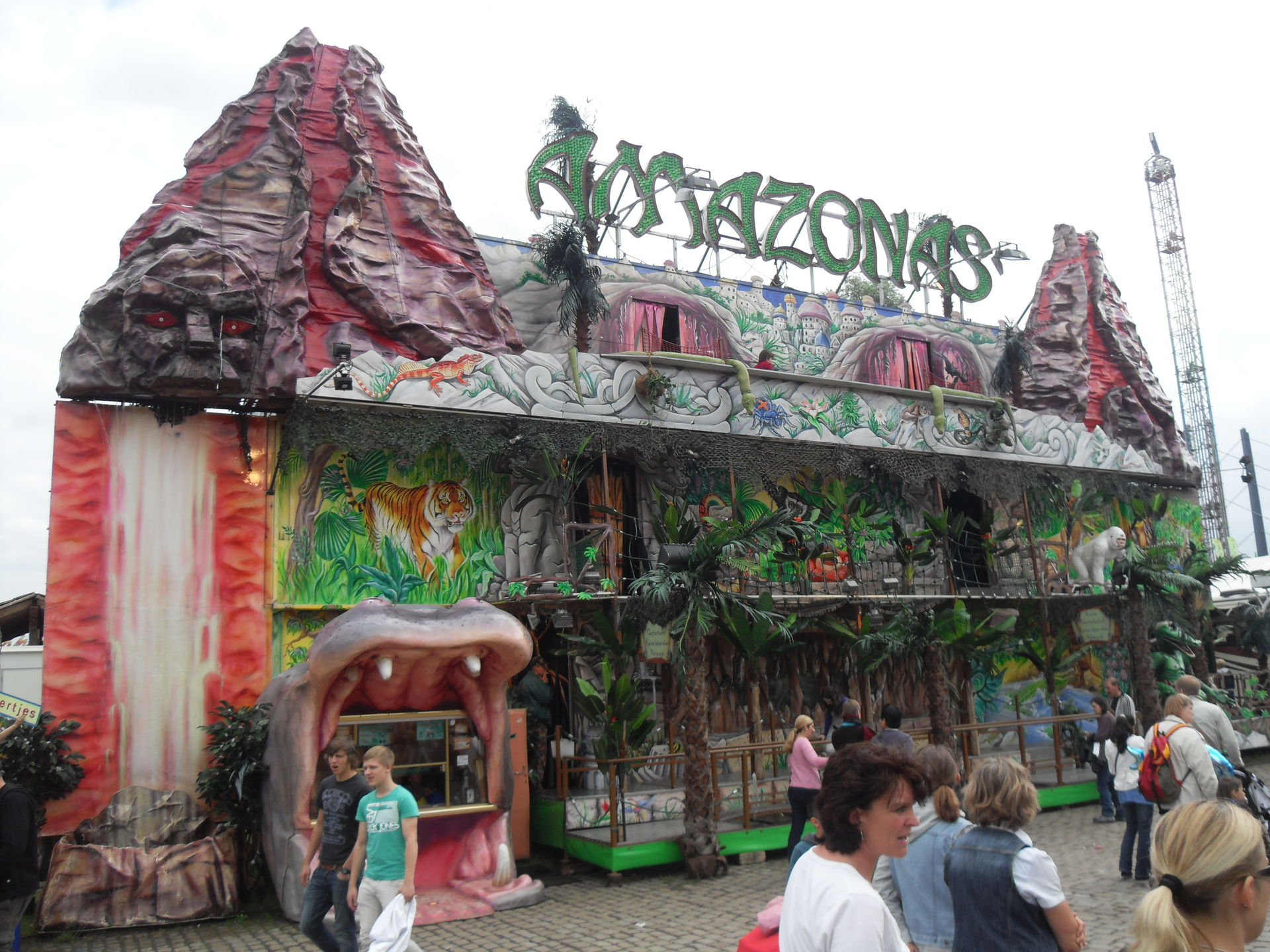 "Amazonas" ist irgendwie eine merkwürdige Mischung aus Spaßhaus, Abenteueranlage und trnasportablen Reptilienzoo. Irgendwie passt da nicht wirklich was so richtig zusammen und wirkt stellenweise auch sehr lieblos. Zwar hat das Laufgeschäft drei Etagen aber richtig gute Unterhaltung will nicht aufkommen. Es gibt ein paar Schockeffekte, ein paar Figuren, einige Spaßelemente und das Thema Wasser spielt hier eine wichtige Suche. Man läuft ständig über Wasser oder dran vorbei. Am Ende gibts dann noch eine kleine Reptilienschau und das wars. Nix halbes und nix ganzes. Kann man sich mal angucken, muss man aber nicht.