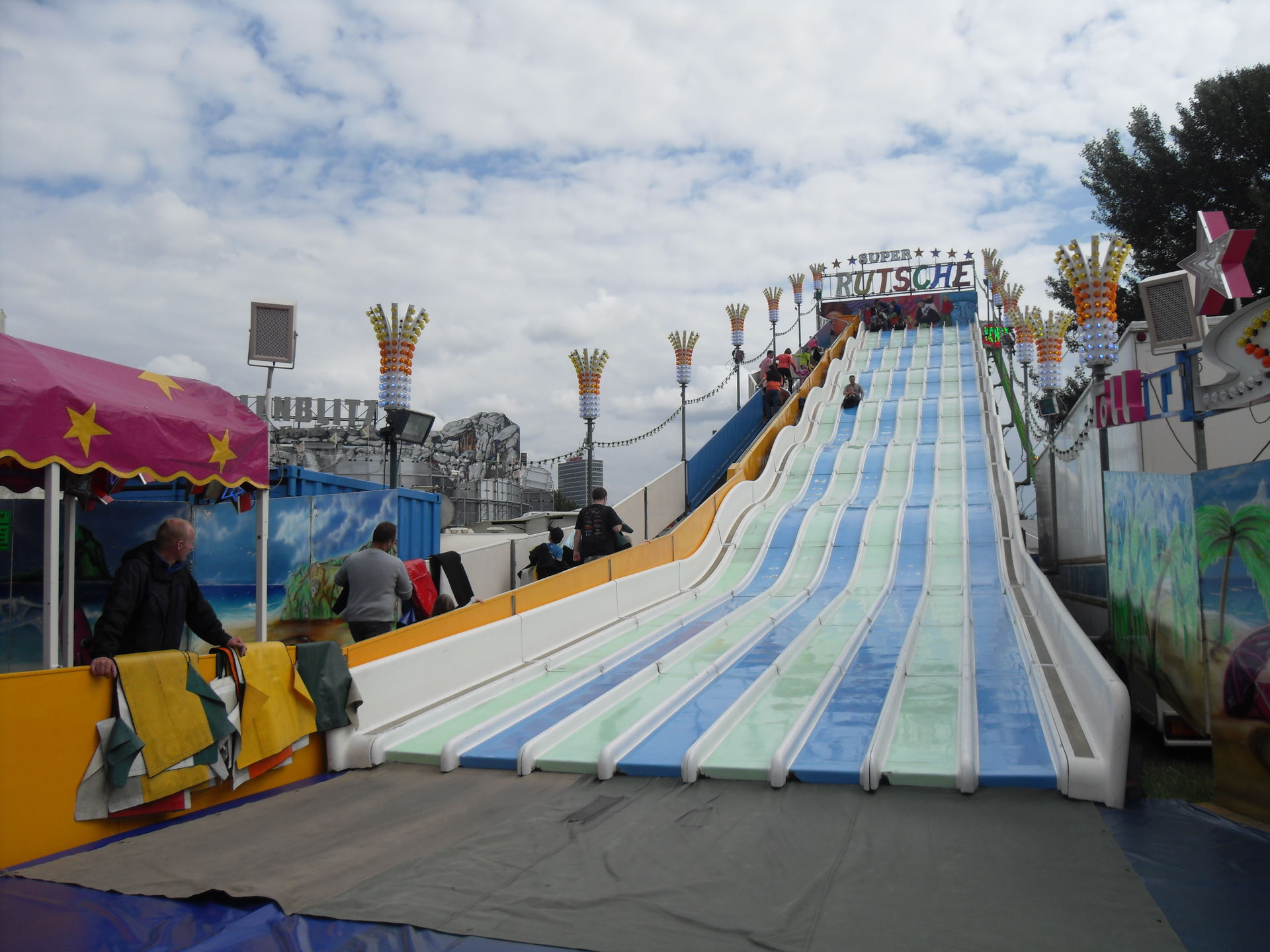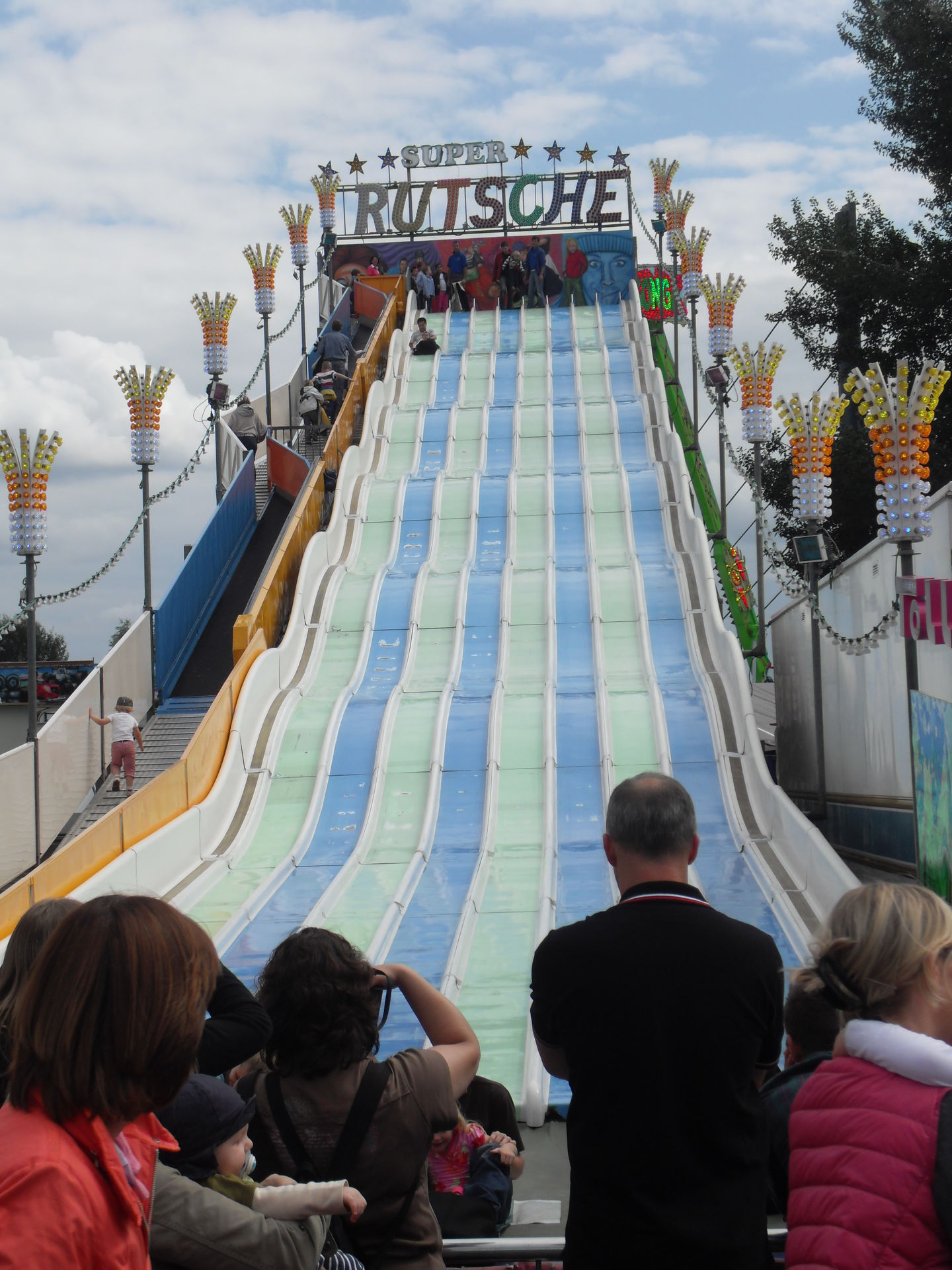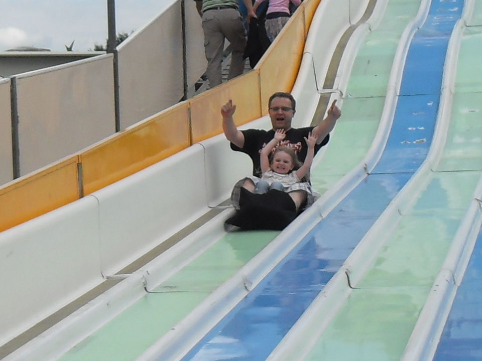 Direkt neben der neuen Wasserbahn stand die Super Rutsche von der wir Mia fast nicht mehr wegbekommen haben, das war definitiv ihr absolutes Highlight des Tages. Spaß ohne Ende für die Kleine. Wenn diese blöden Fließbänder mal funktionieren würden dann wäre auch der Aufstieg um einiges entspannter.