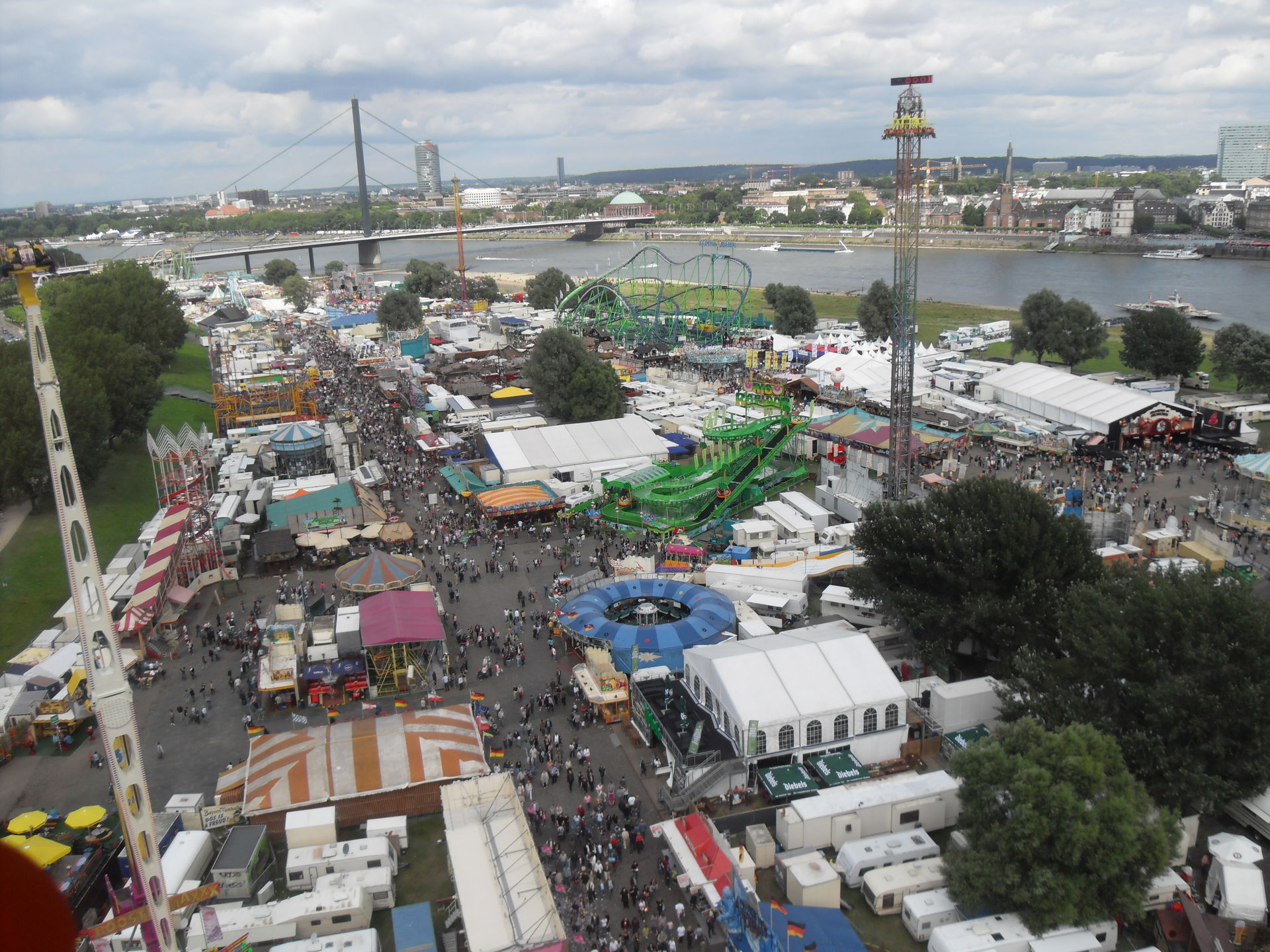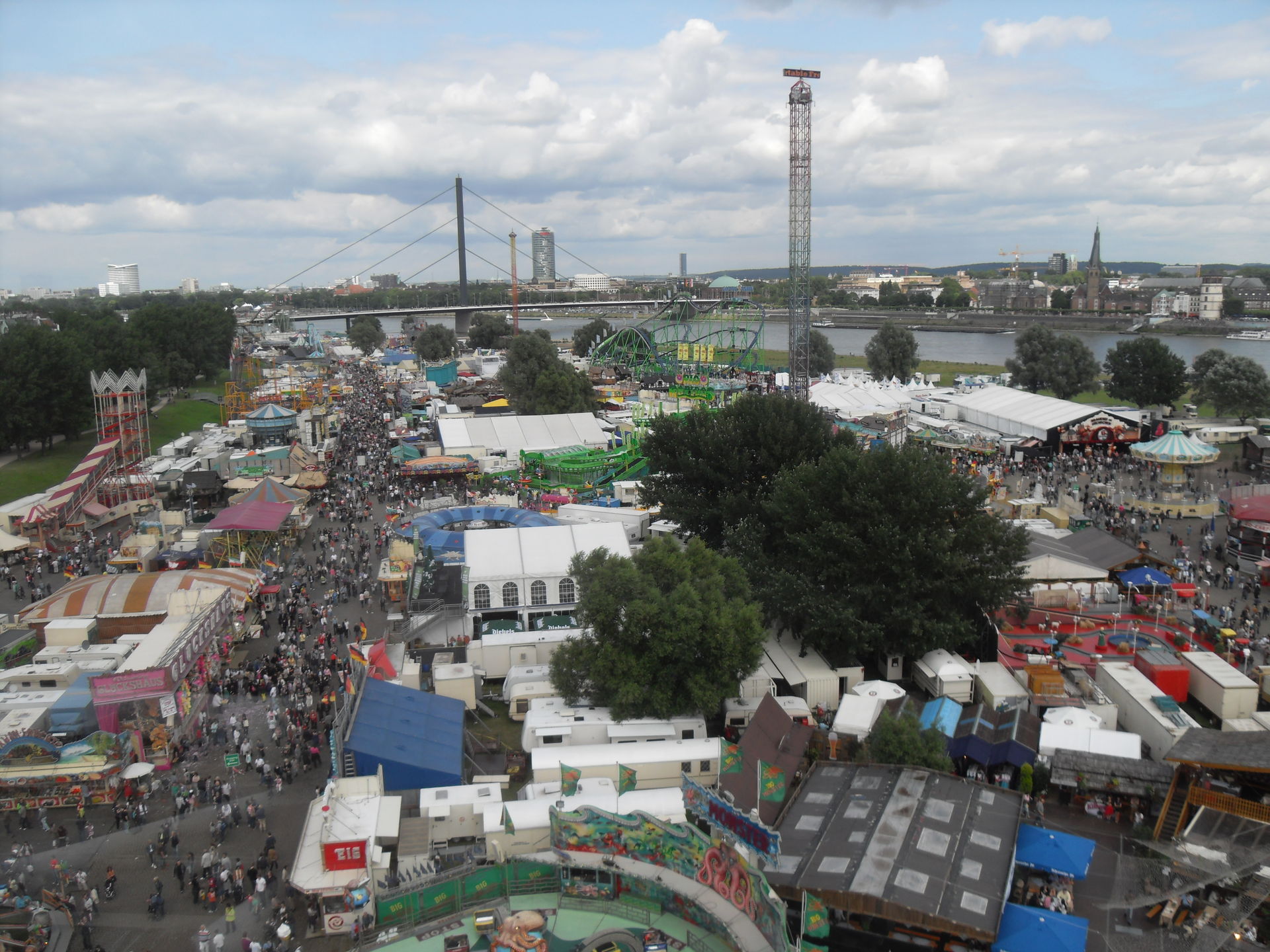 Natürlich ließen wir uns eine Fahrt mit dem großen Riesenrad nicht nehmen um die Düsseldorfer Kirmes mal aus der Vogelperspektive zu betrachten.
