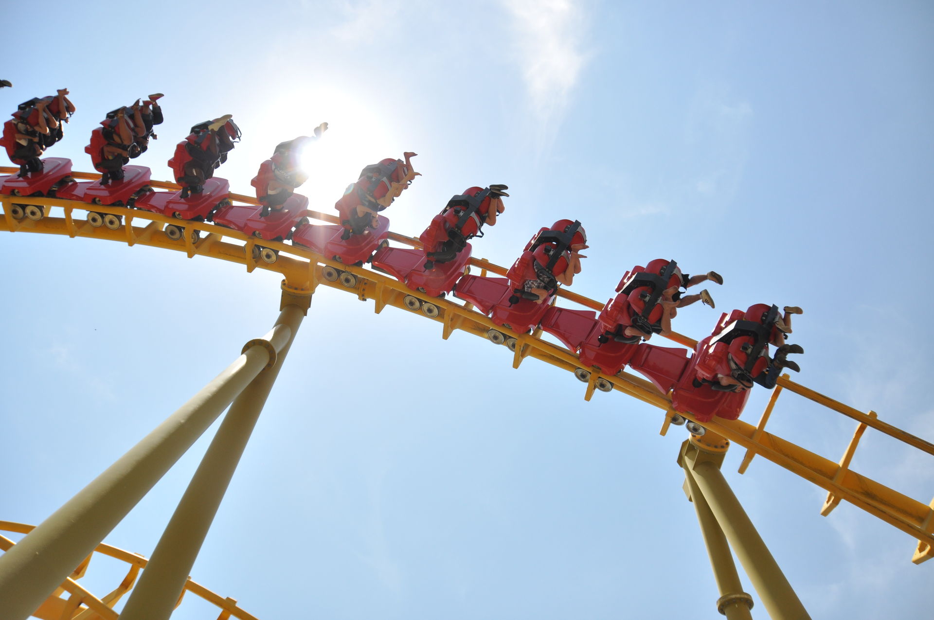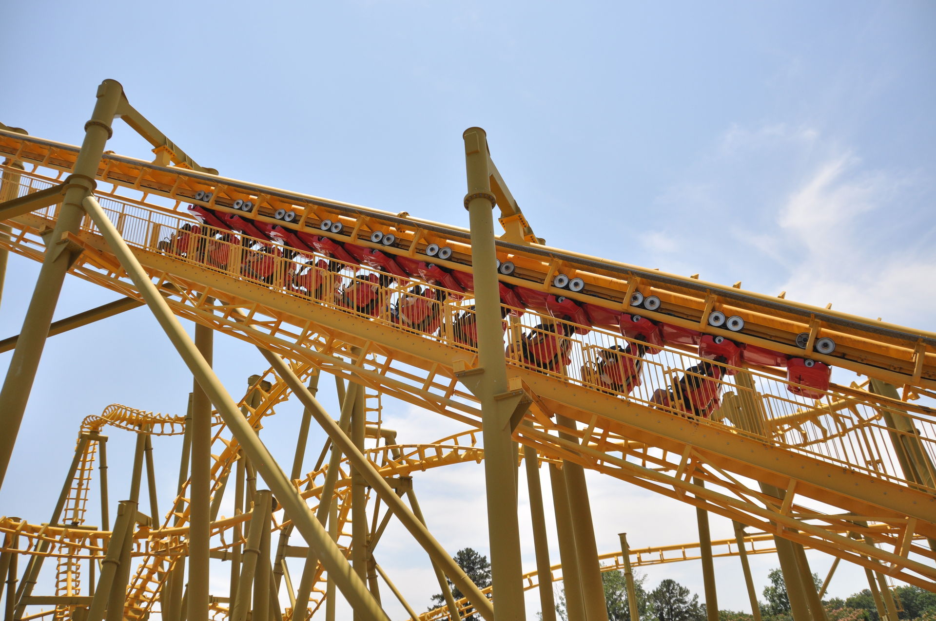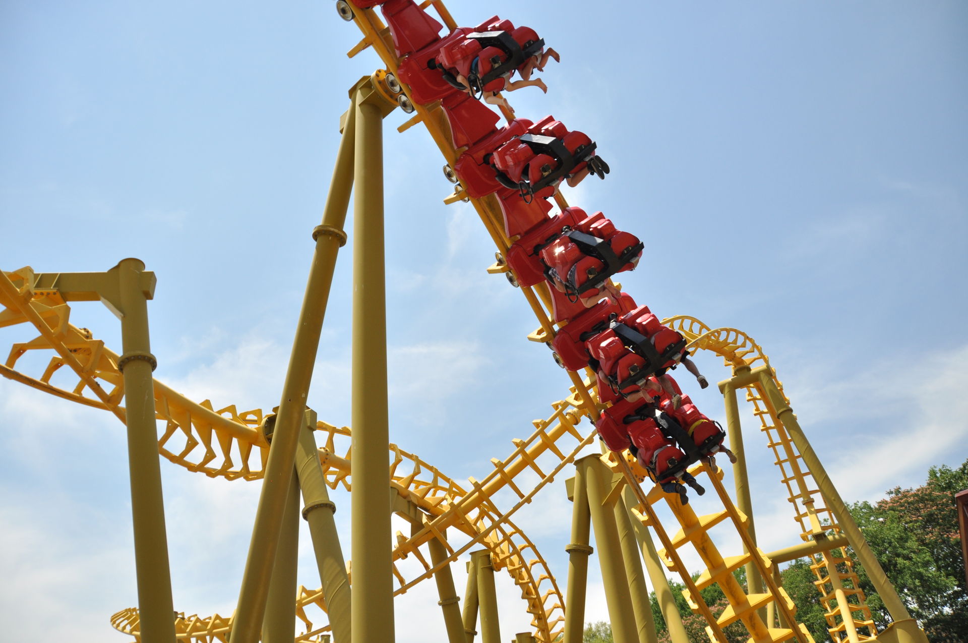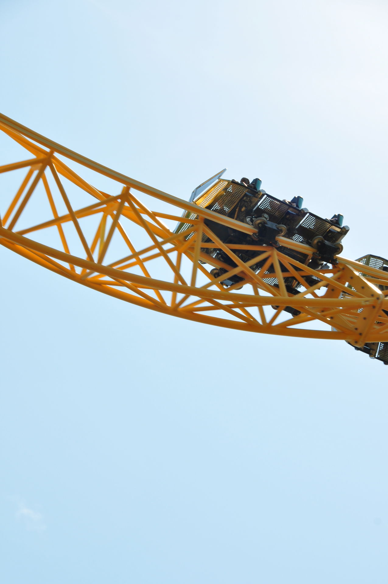 Airtime folgt eine Linkshelix, die uns dann wenige Zentimeter parallel zum Hinweg wieder zurück in Richtung Station bringt.